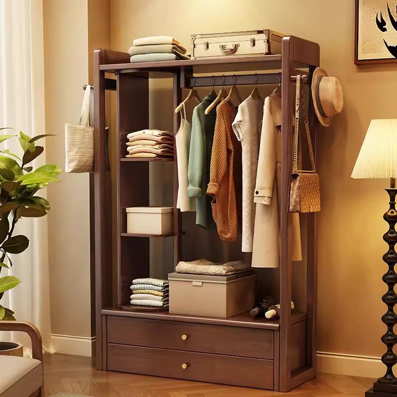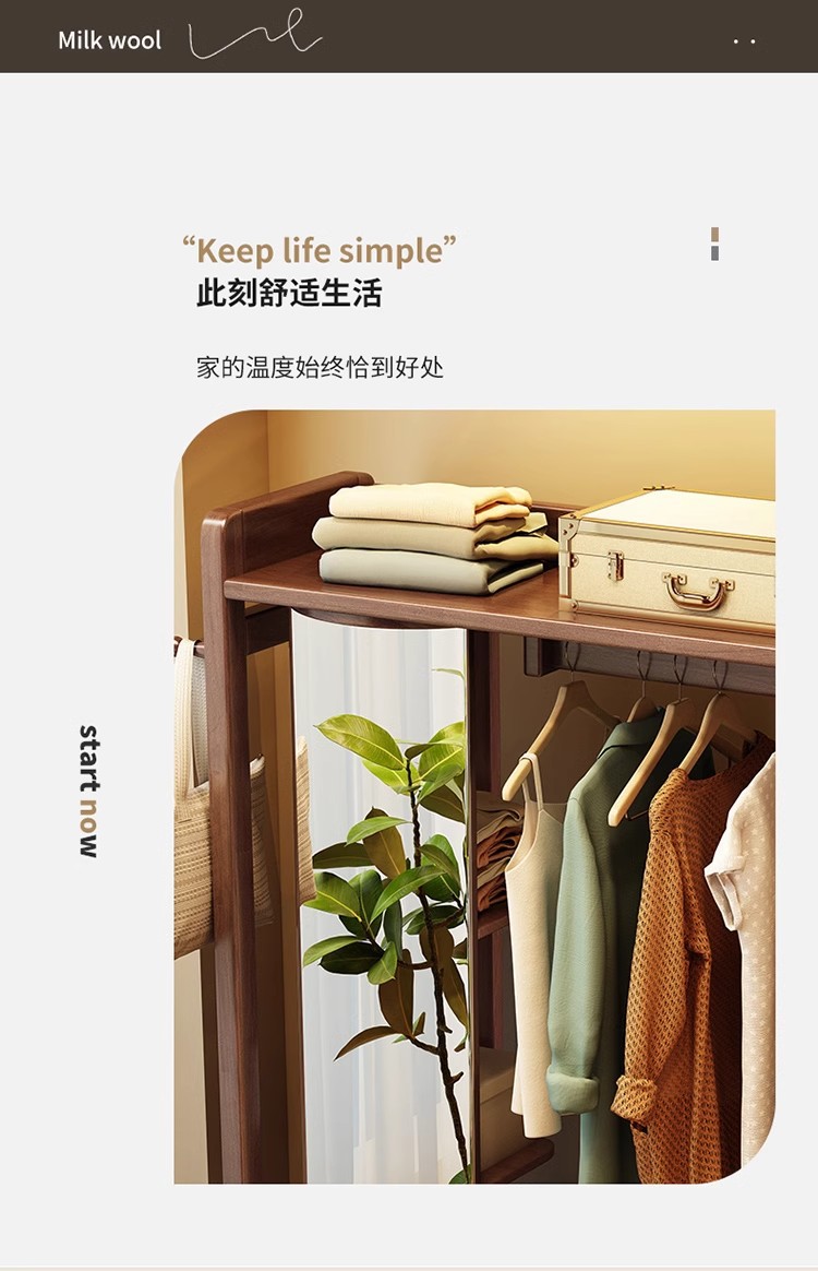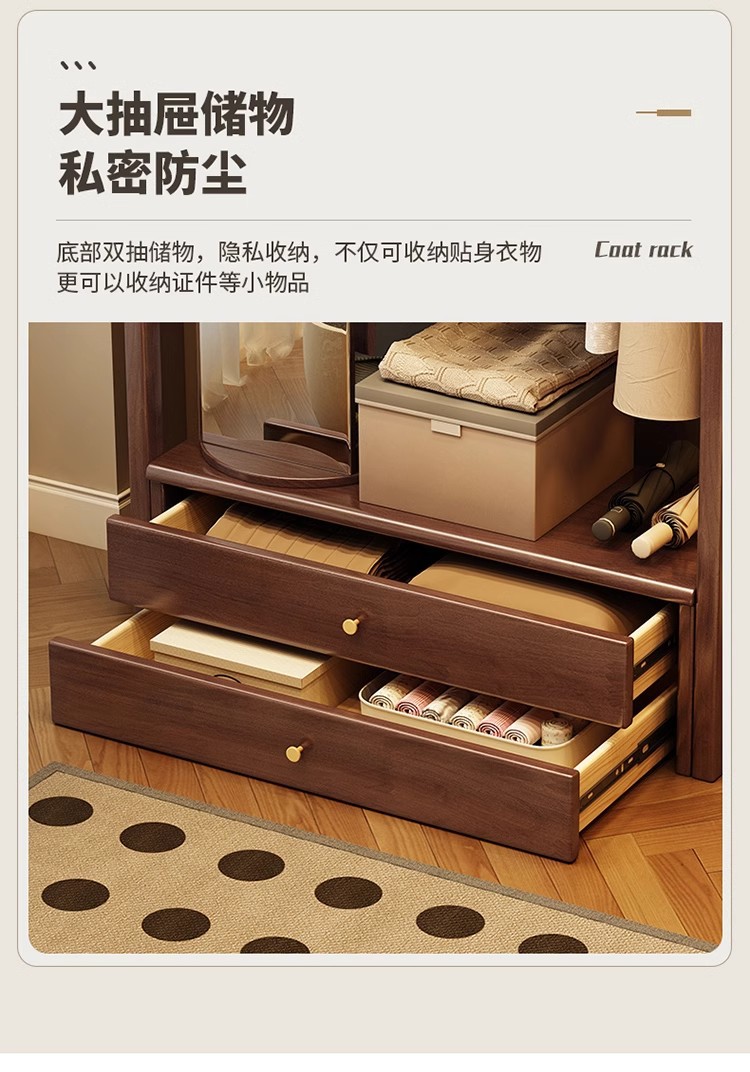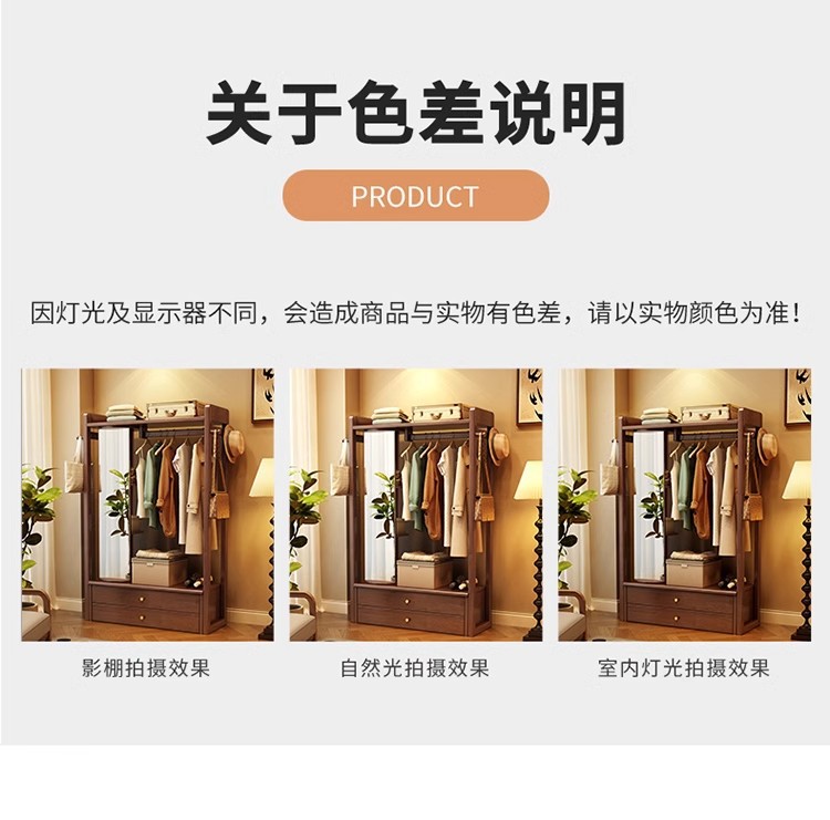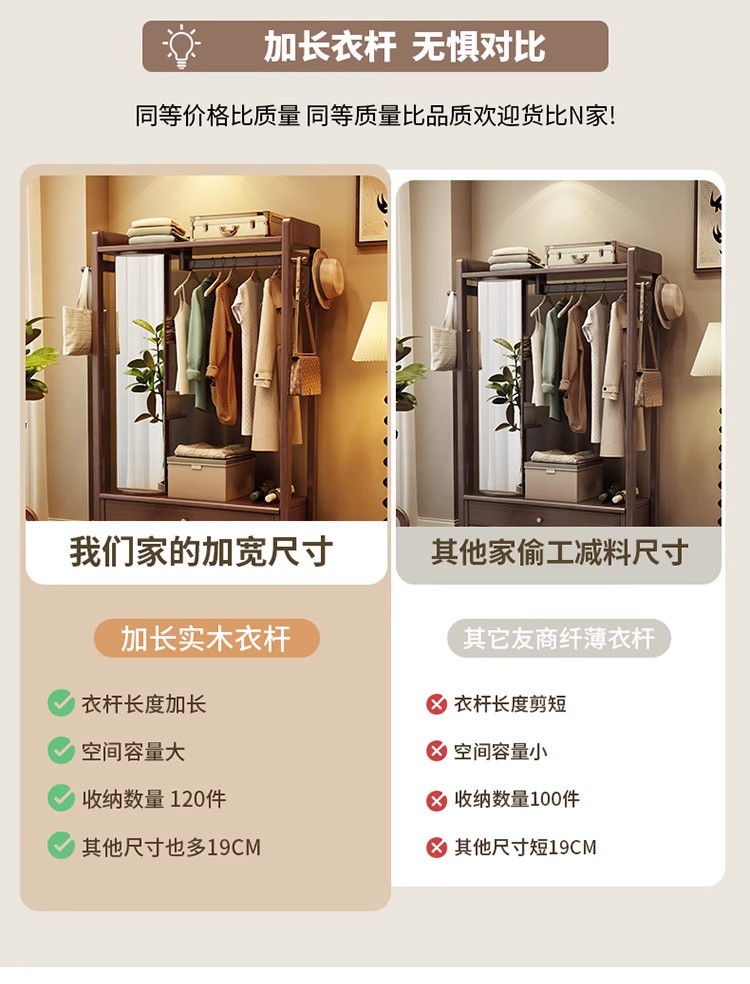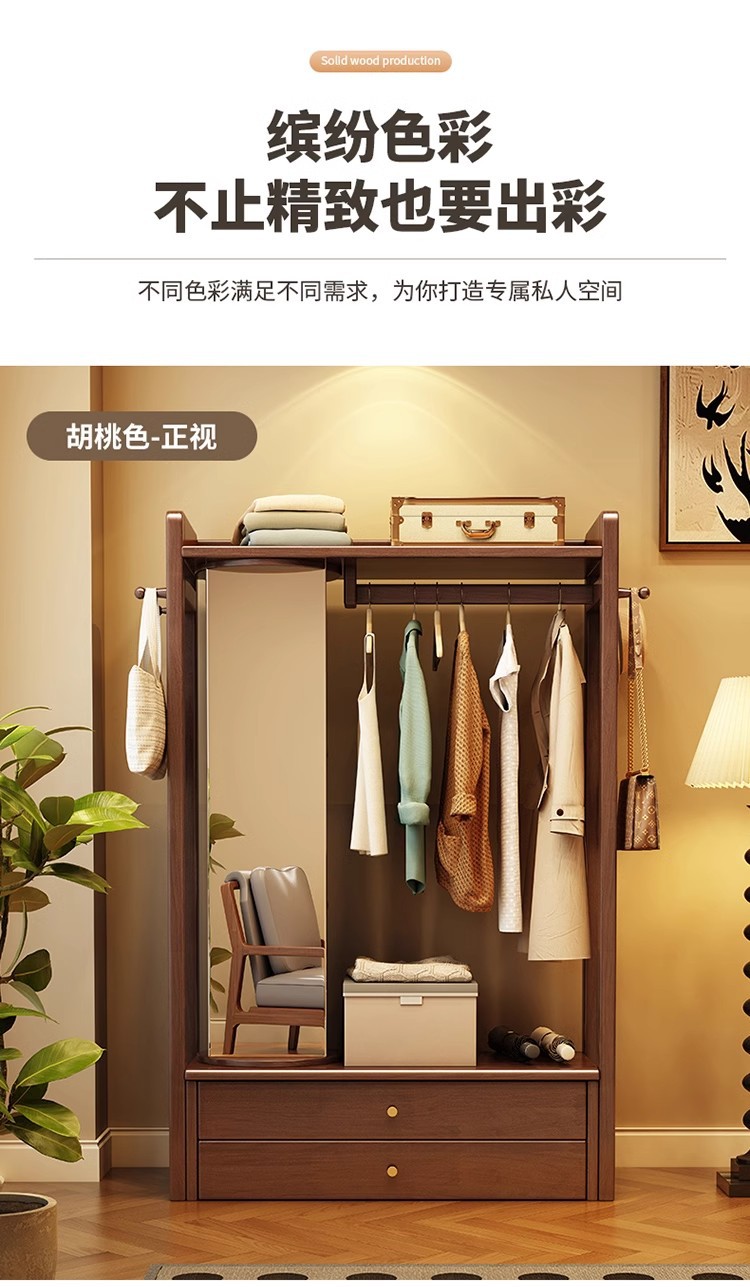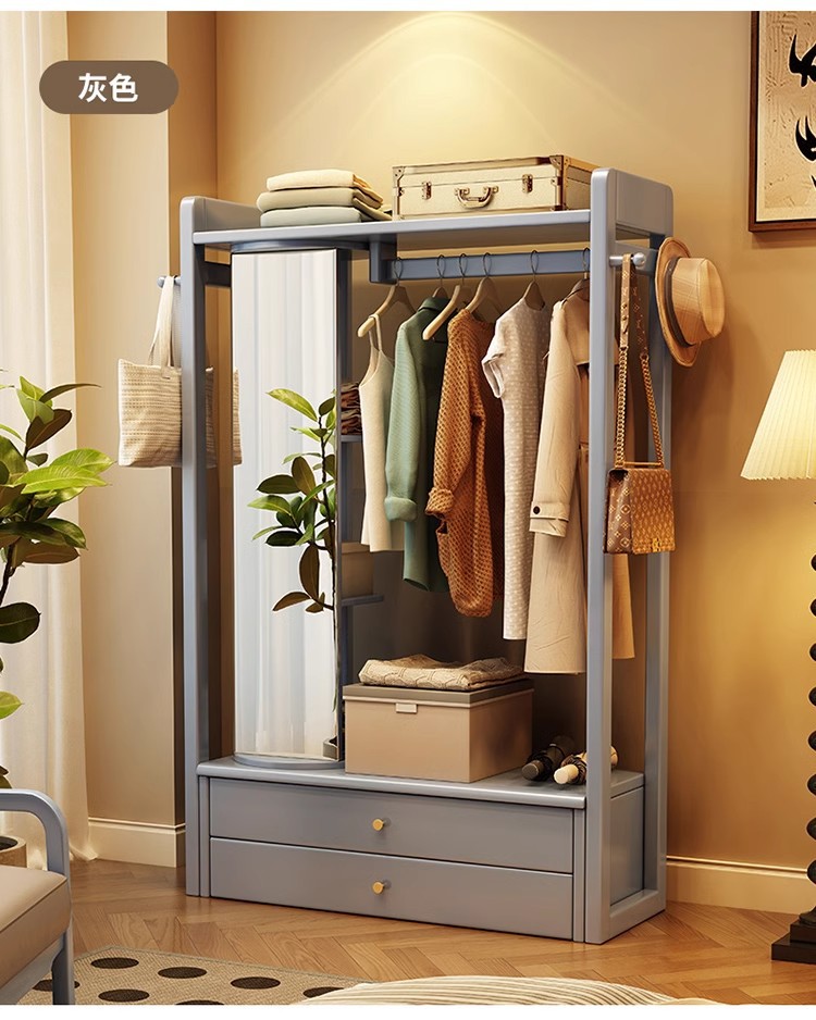 전체 길이 거울 다기능 랙이있는 회전 가능한 전체 길이 거울 옷걸이 통합 바닥 침실 단단한 나무 코트 랙
