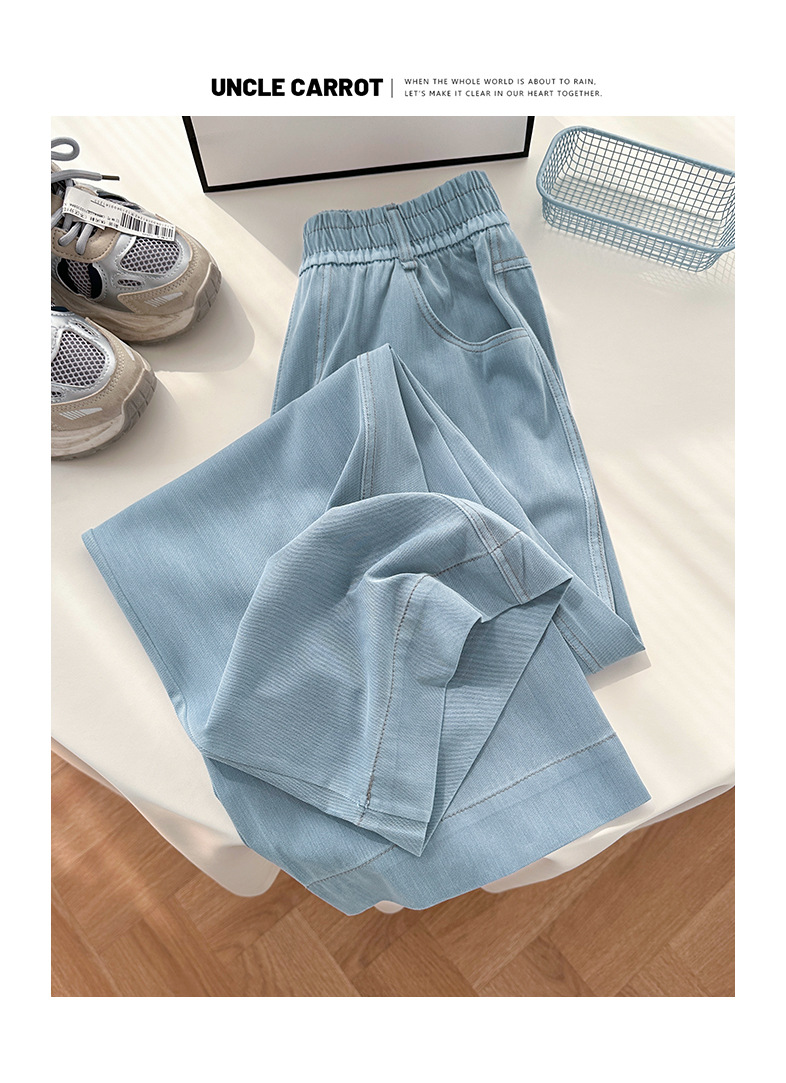 텐셀 청바지 여성용 봄과 여름 얇은 한국 스타일 새로운 높은 허리 슬리밍 스트레이트 레그 와이드 레그 아이스 실크 투약 캐주얼 바지