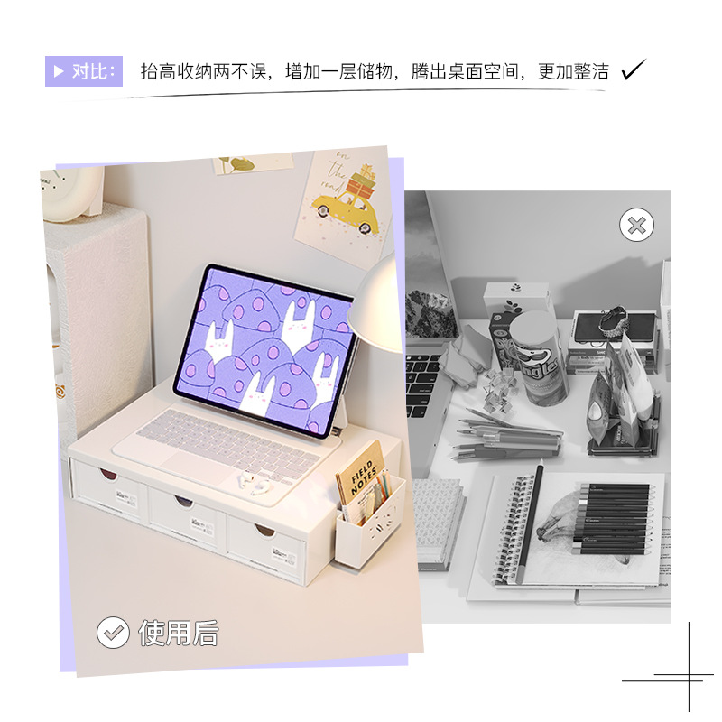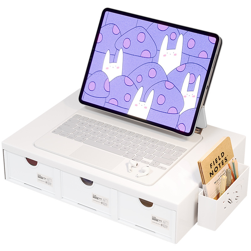 화이트 - 더블 레이어 확장 모델 [서랍 + 무료 펜 홀더 포함]