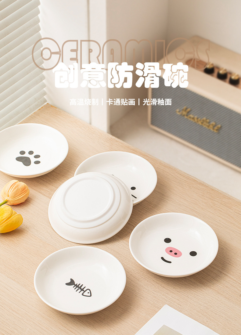 아마존 실리콘 미끄럼 방지 세라믹 고양이 접시 애완 동물 고양이 그릇 고양이 사료 간식 통조림 접시 새끼 고양이 먹이 그릇 애완 동물 용품