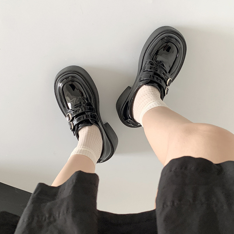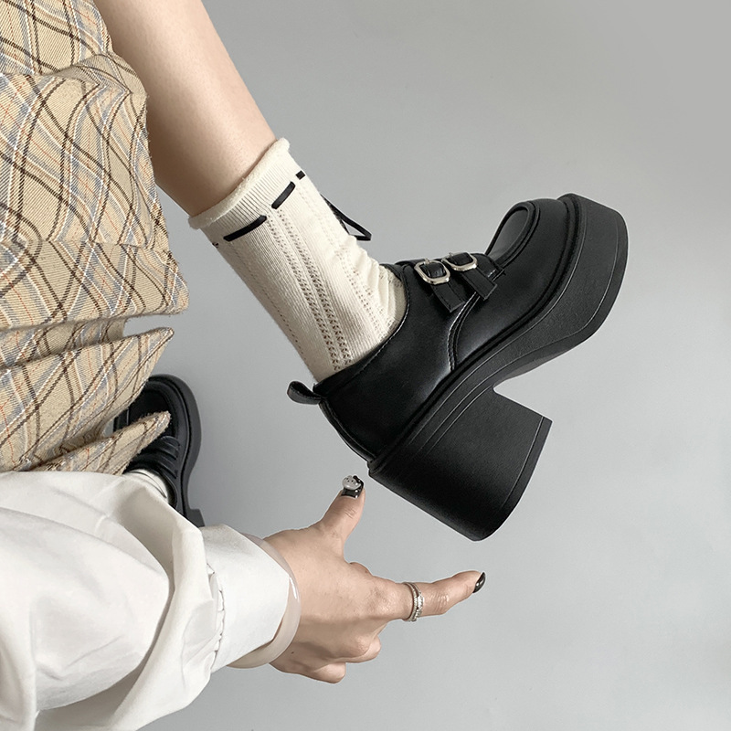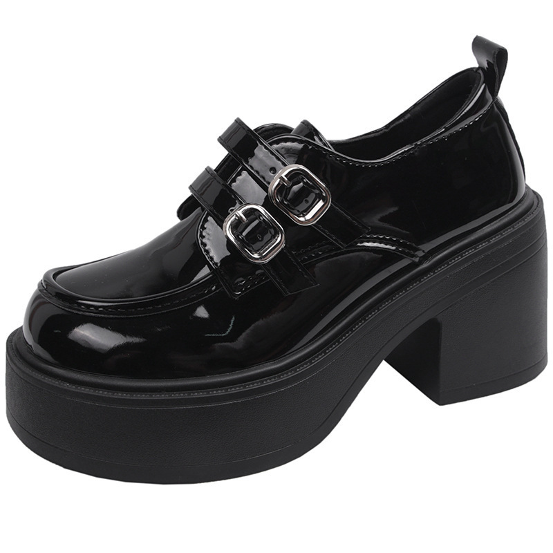 블랙 영국 스타일 하이힐 플랫폼 가죽 신발 여성의 2025 년 새로운 여름 프랑스 스타일 올 매치 레트로 높이 증가 로퍼