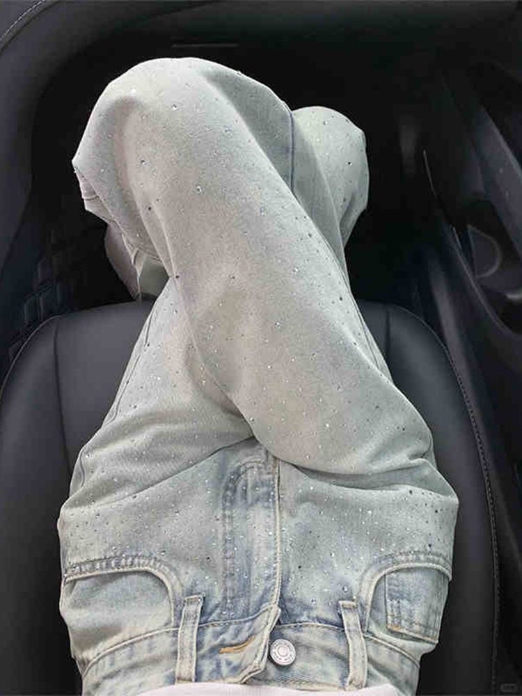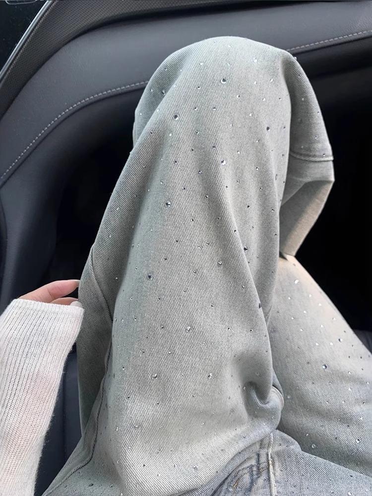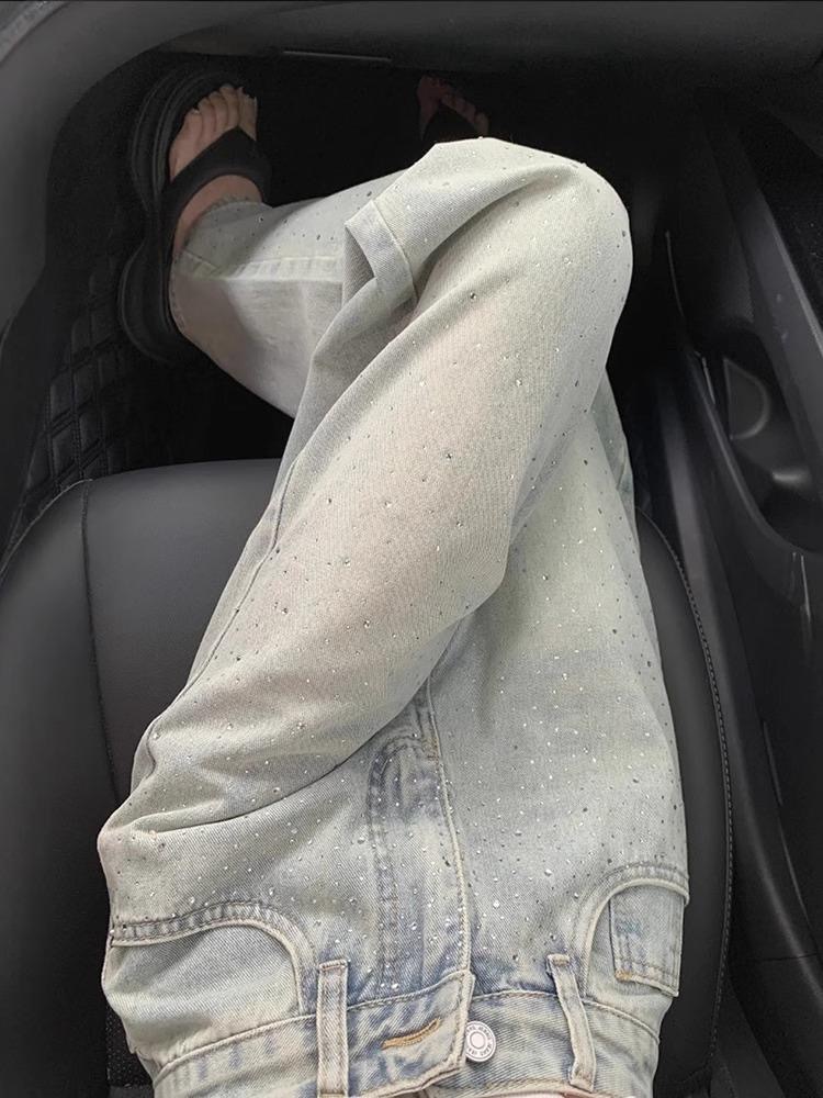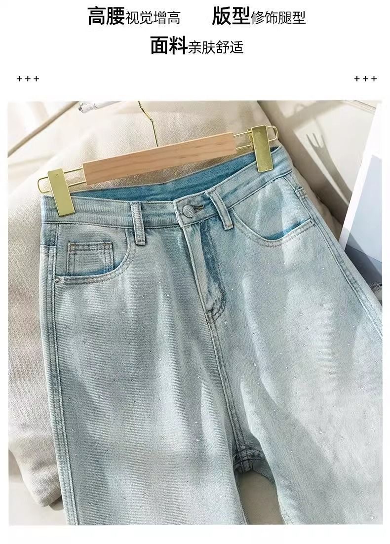 레트로 라이트 컬러 중공업 핫 드릴링 스트레이트 청바지 여성 2025 봄 디자인 센스 높은 허리 슬리밍 캐주얼 와이드 레그 바지