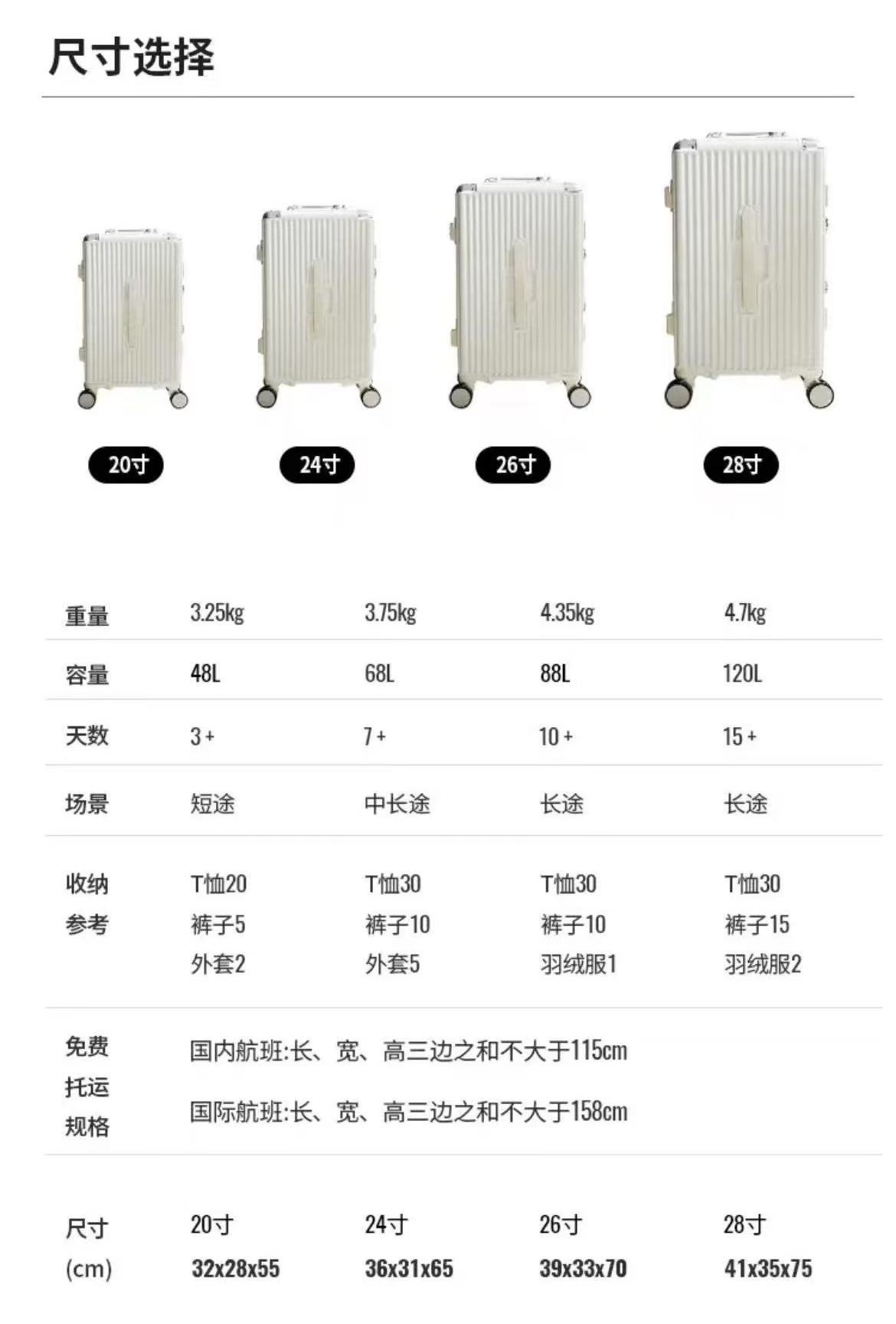 37개 알루미늄 프레임 20inch 기내용 여행가방 24inch 학생 필수품 같은 스타일의 미니멀리스트 경량 여행가방