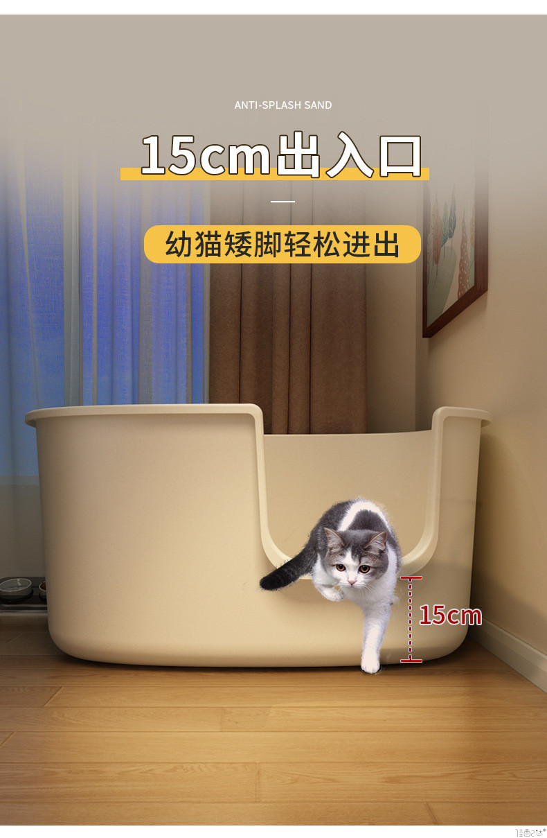 고양이 쓰레기통, 물 튀김 방지 고양이 변기, 반밀폐형, 완전 개방형 고양이 쓰레기통, 초대형 고양이 쓰레기통