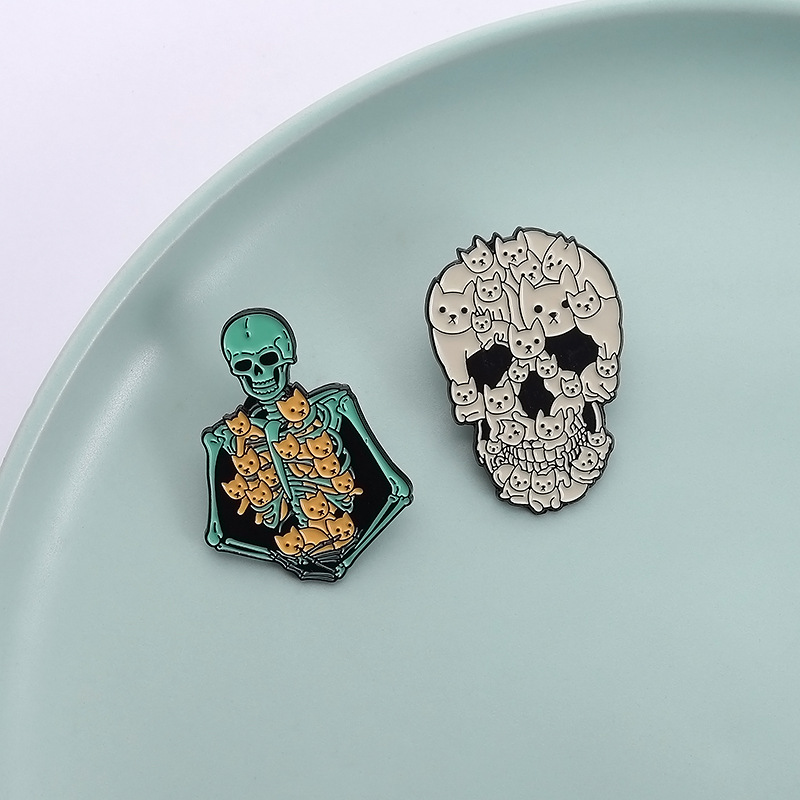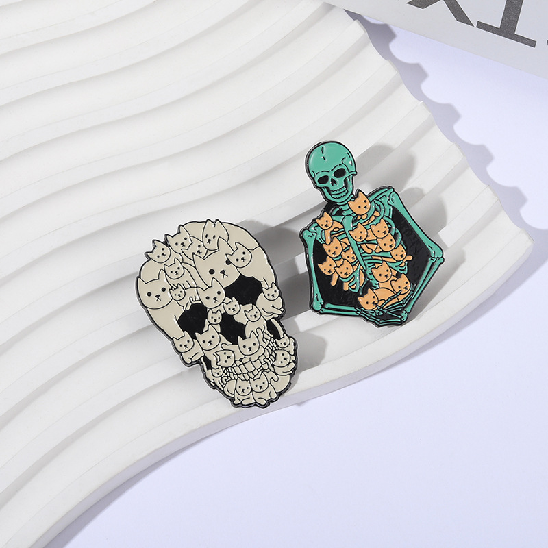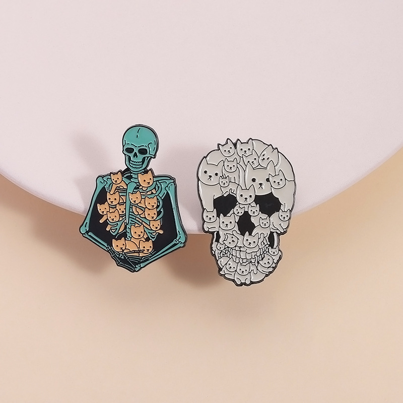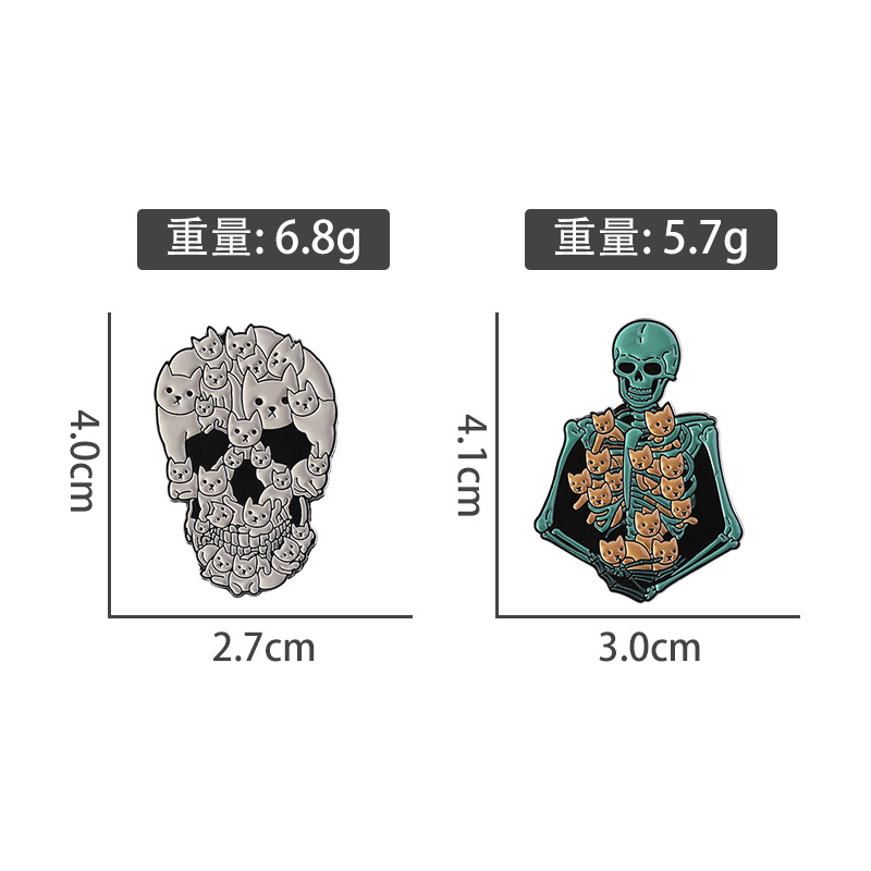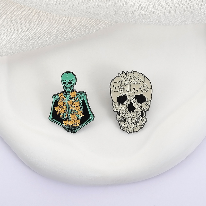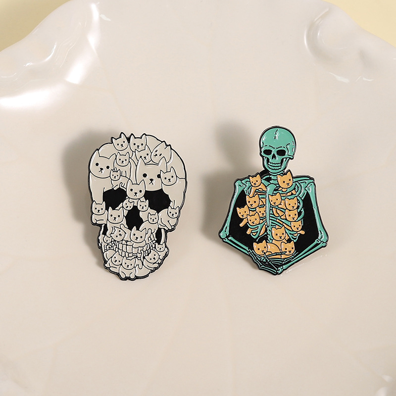 할로윈 귀여운 고양이 두개골 브로치 금속 배지 의상 액세서리 칼라 핀 가방 연필 가방 장식 펜던트