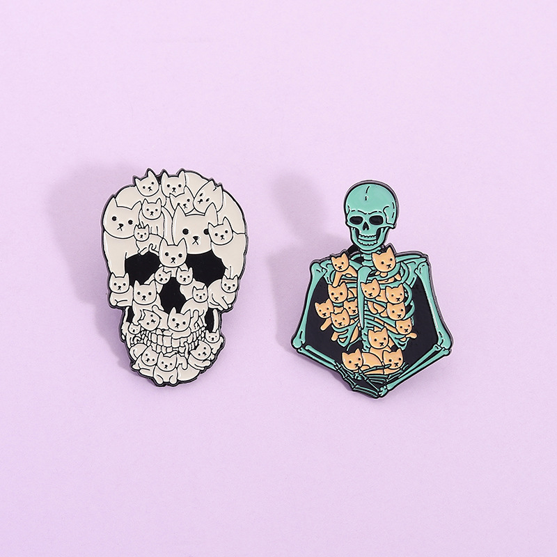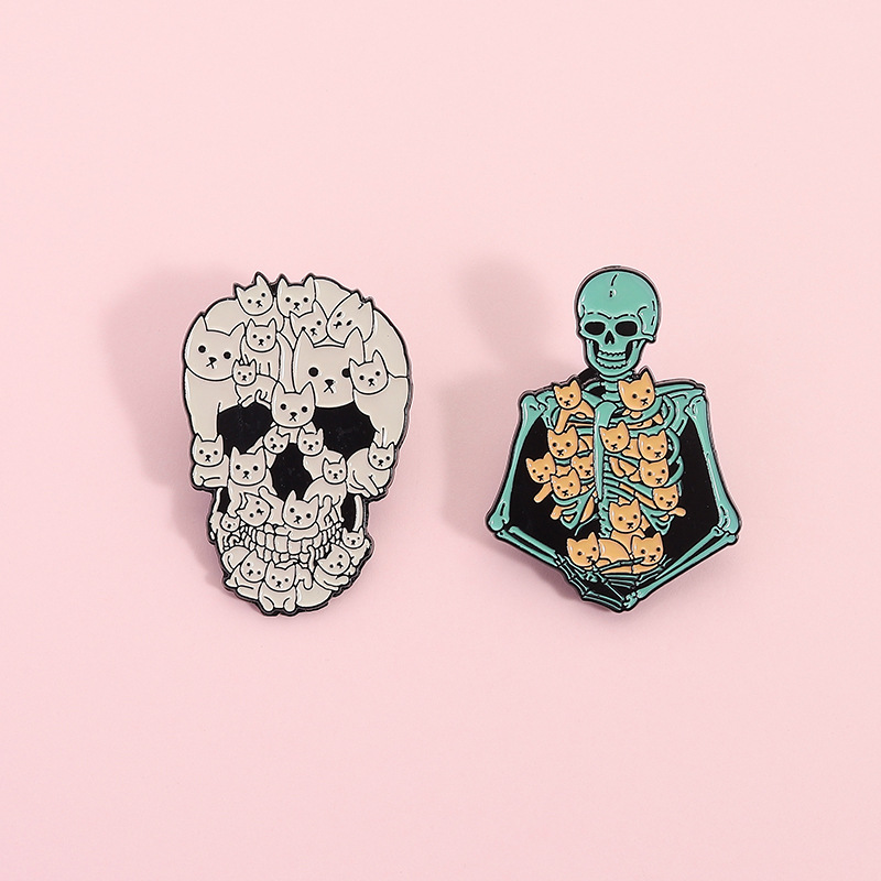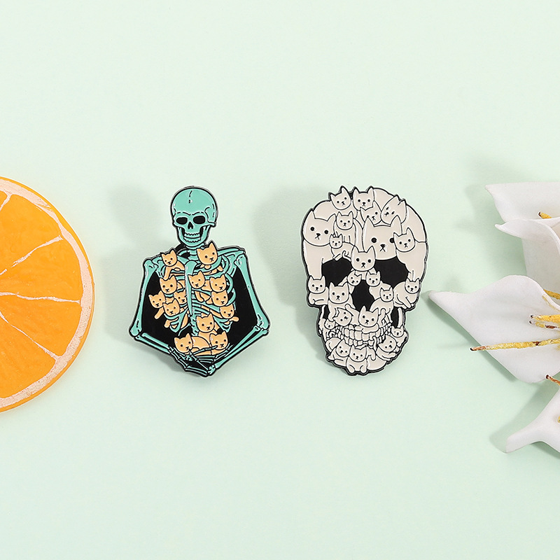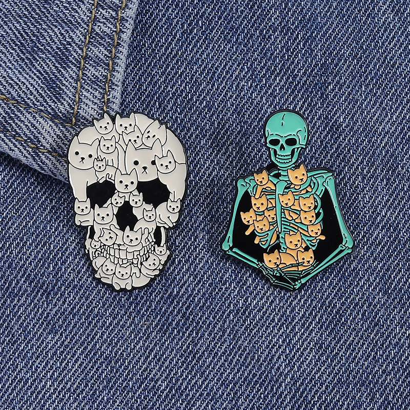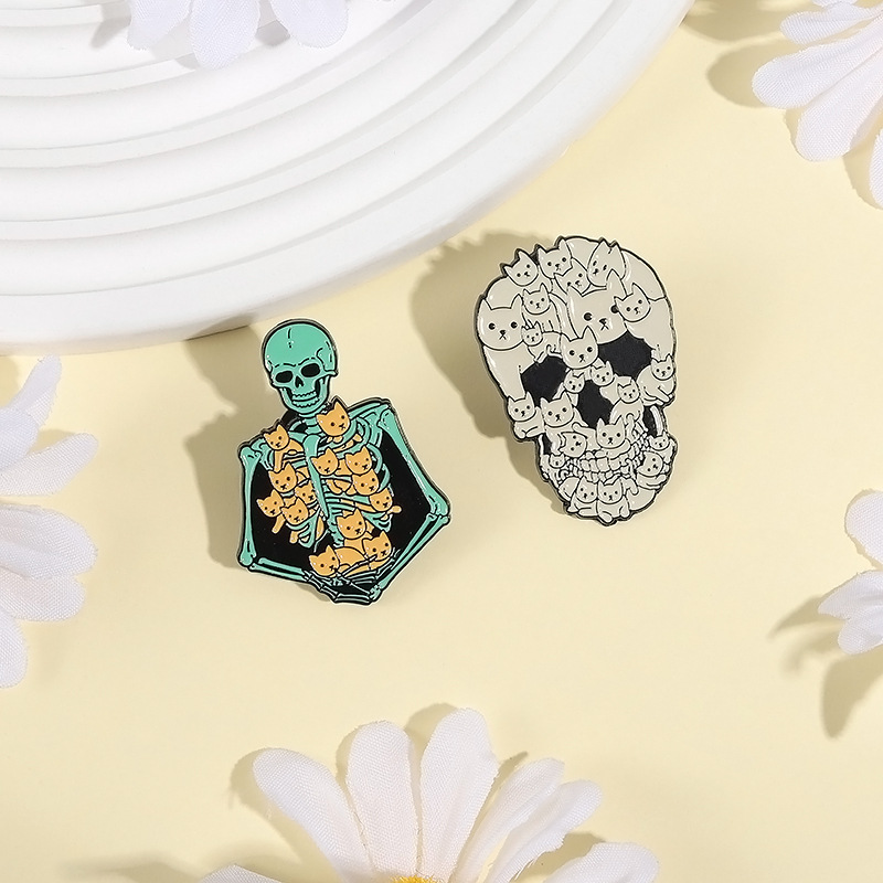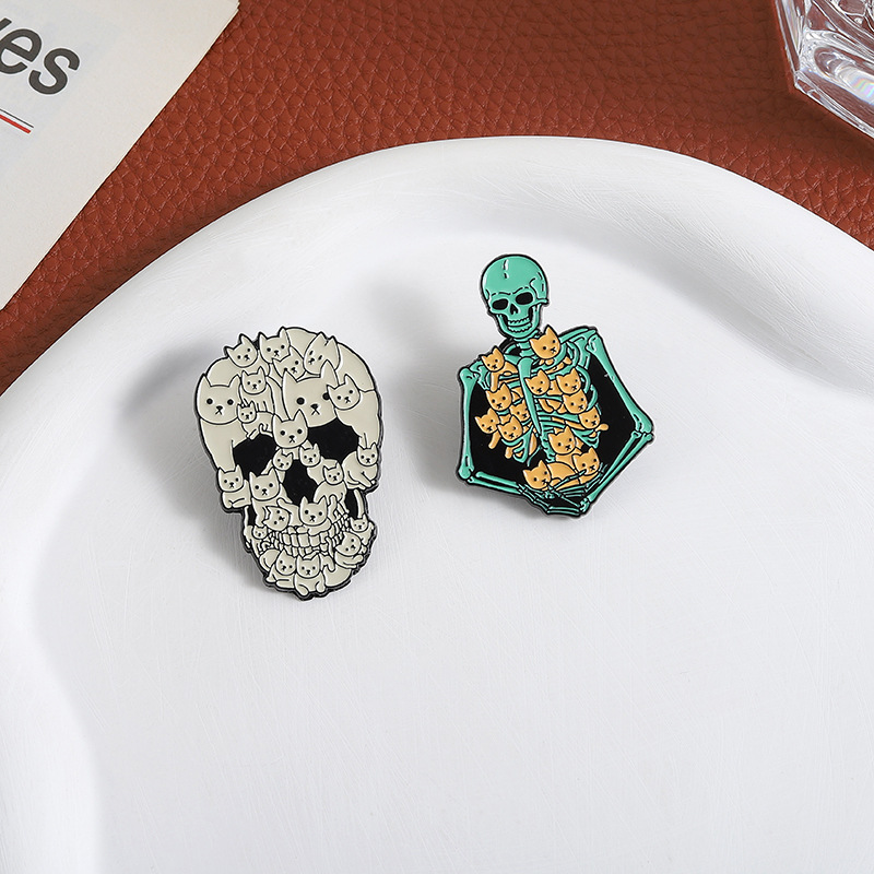 할로윈 귀여운 고양이 두개골 브로치 금속 배지 의상 액세서리 칼라 핀 가방 연필 가방 장식 펜던트