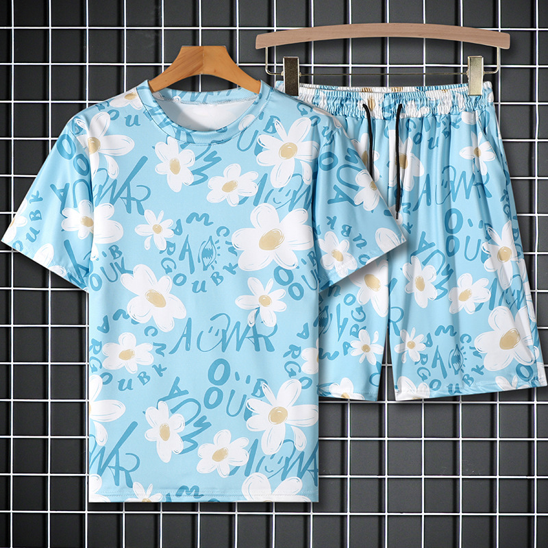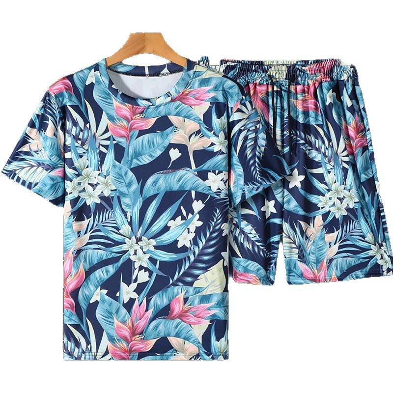 공장 도매 여름 새로운 하와이 셔츠 해변 캐주얼 반바지 유행 남성 홀리데이 스타일 비치 세트