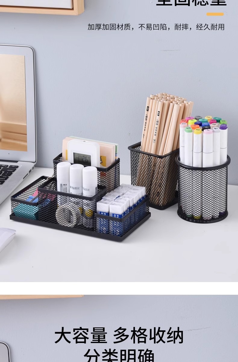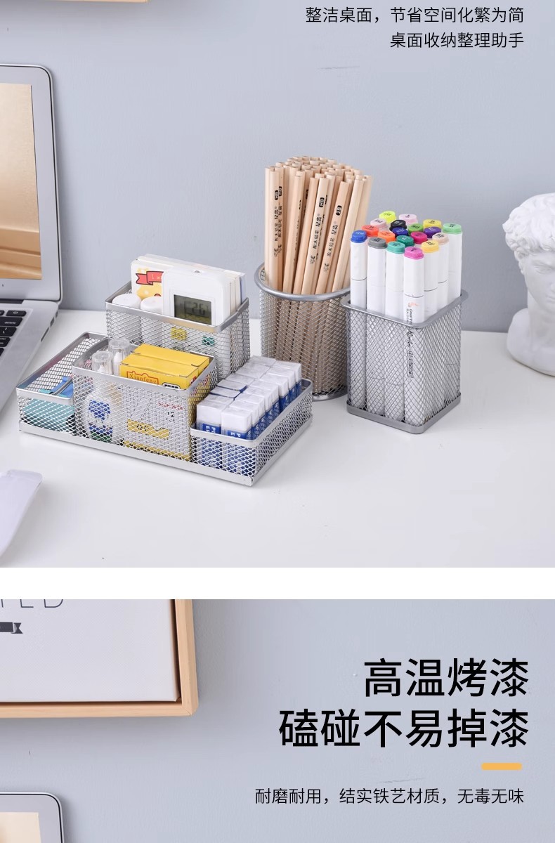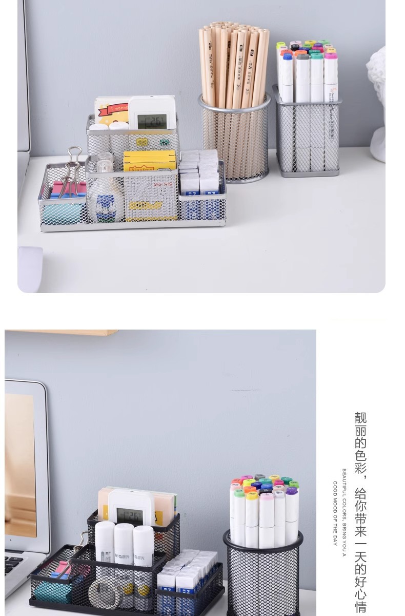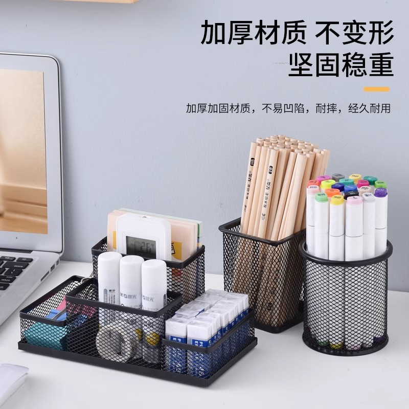 다기능 펜 컨테이너 철 금속 저장 상자 간단한 대용량 학생 사무실 데스크탑 문구 4 칸 펜 배럴