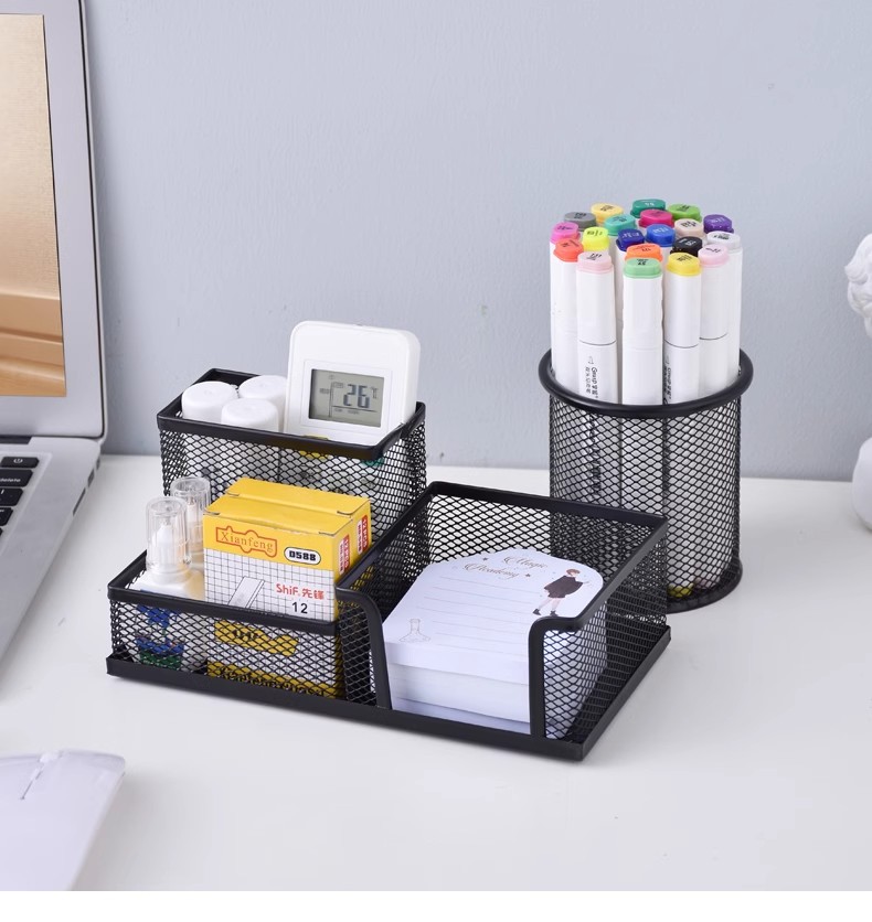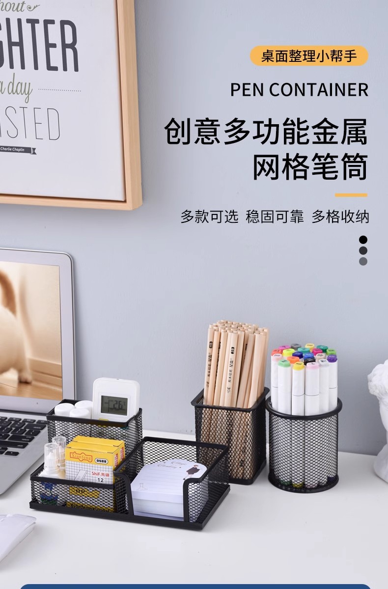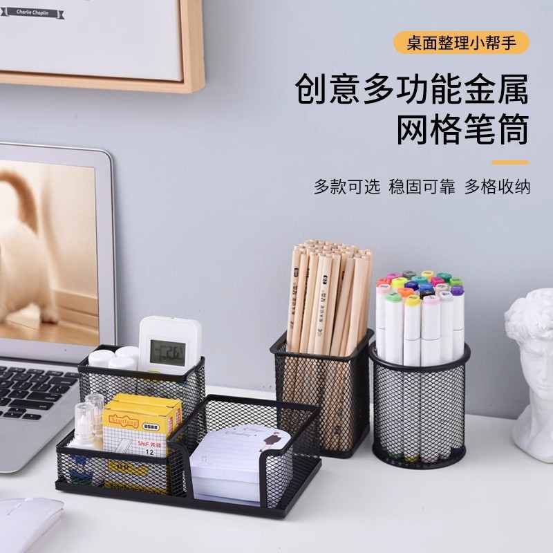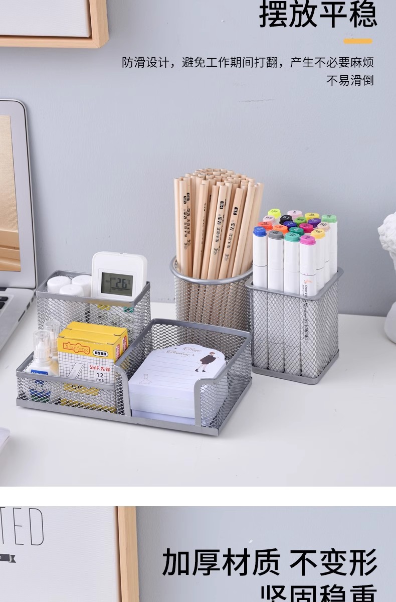 다기능 펜 컨테이너 철 금속 저장 상자 간단한 대용량 학생 사무실 데스크탑 문구 4 칸 펜 배럴