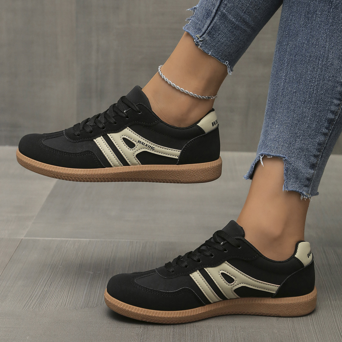 대외 무역 운동화 여성의 2024 새로운 소프트 하단 통기성 단일 레이어 신발 여성 플랫 하단 라운드 헤드 컬러 매칭 얕은 입 신발