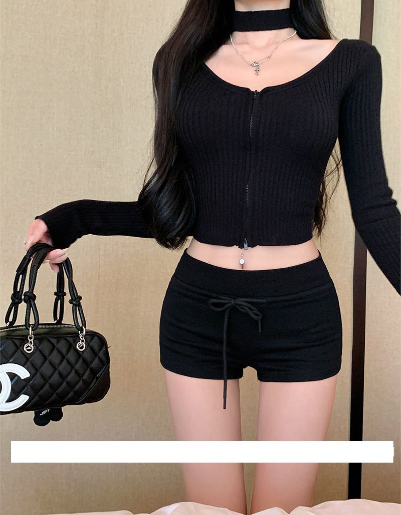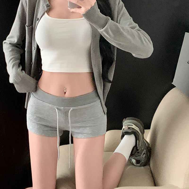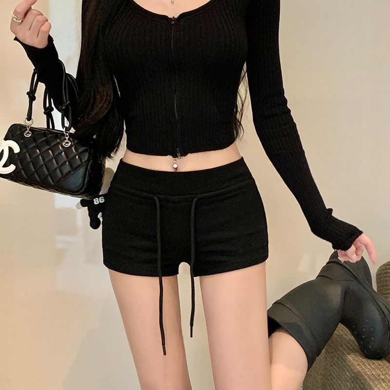 여성용 봄철 크로스보더 도매 로우웨이스트 슬림핏 캐주얼 팬츠, 드로스트링 핫팬츠, 힙업 팬츠, 타이트 팬츠, 블랙 팬츠