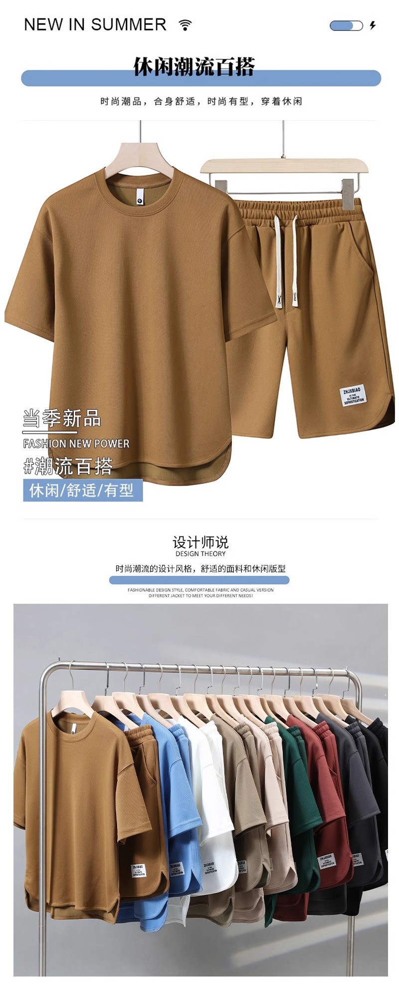 여름 청년 고급 캐주얼 스포츠 세트 남성용, 아크형 밑단 패셔너블 반바지와 반팔 티셔츠 투피스 세트 남성용