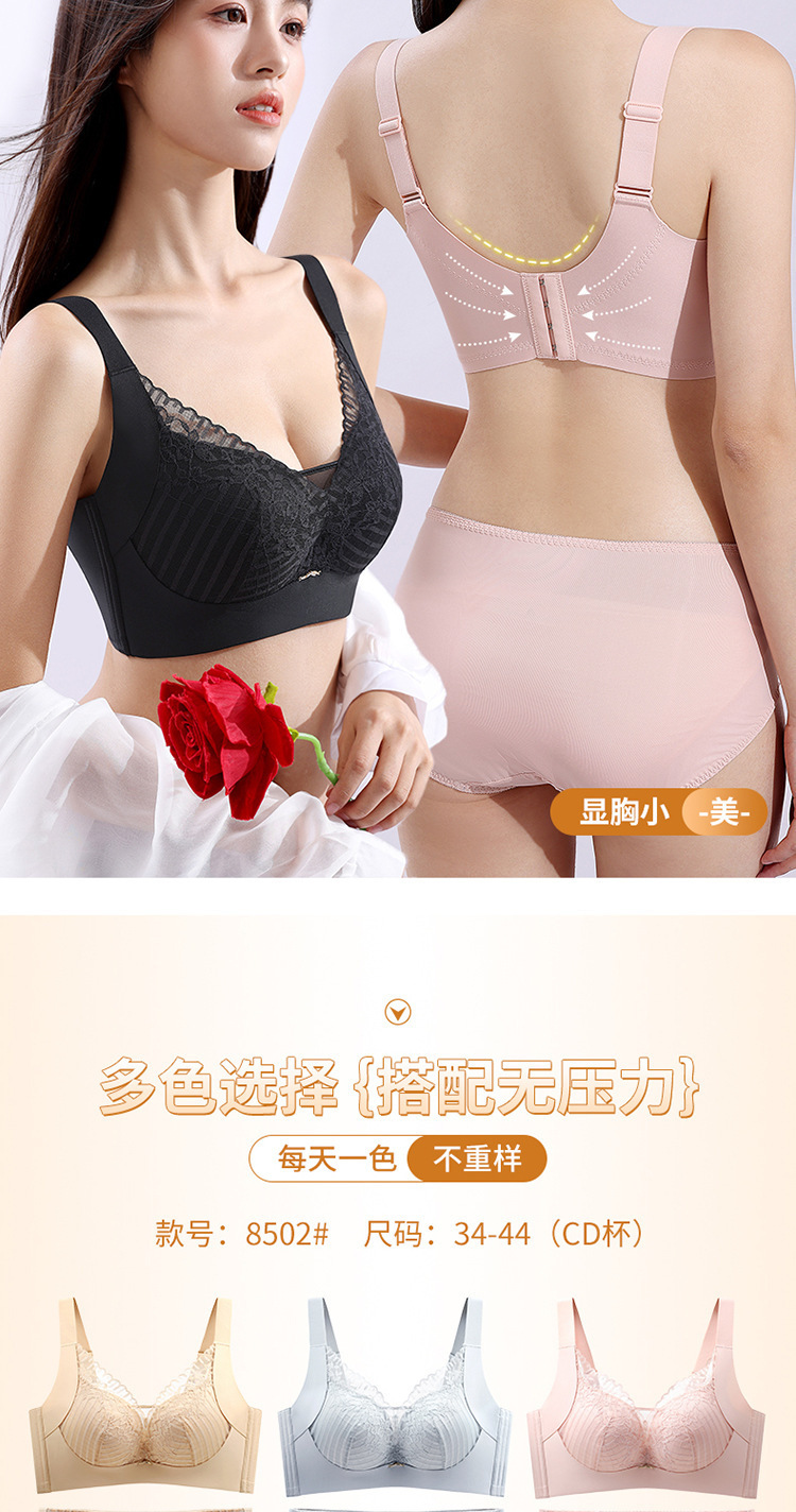 8502 큰 가슴 작은 풀 컵 스틸 링 액세서리 유방 조정 브래지어 여성용 도매없이 원활한 속옷