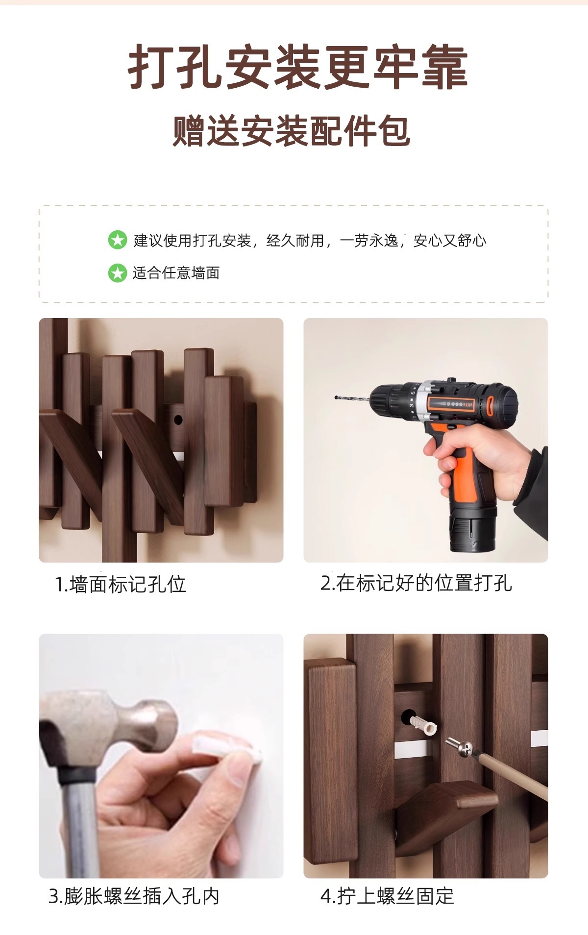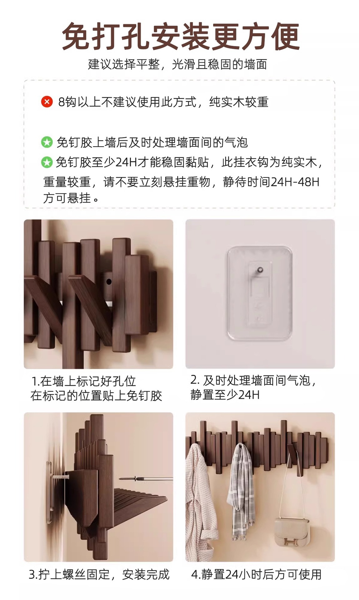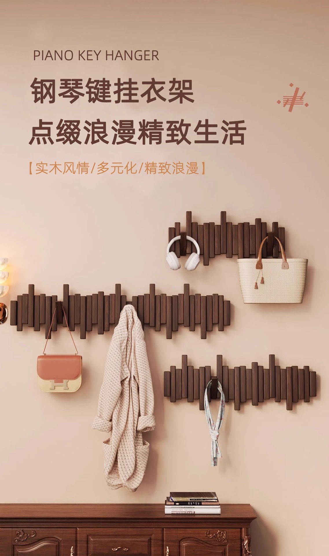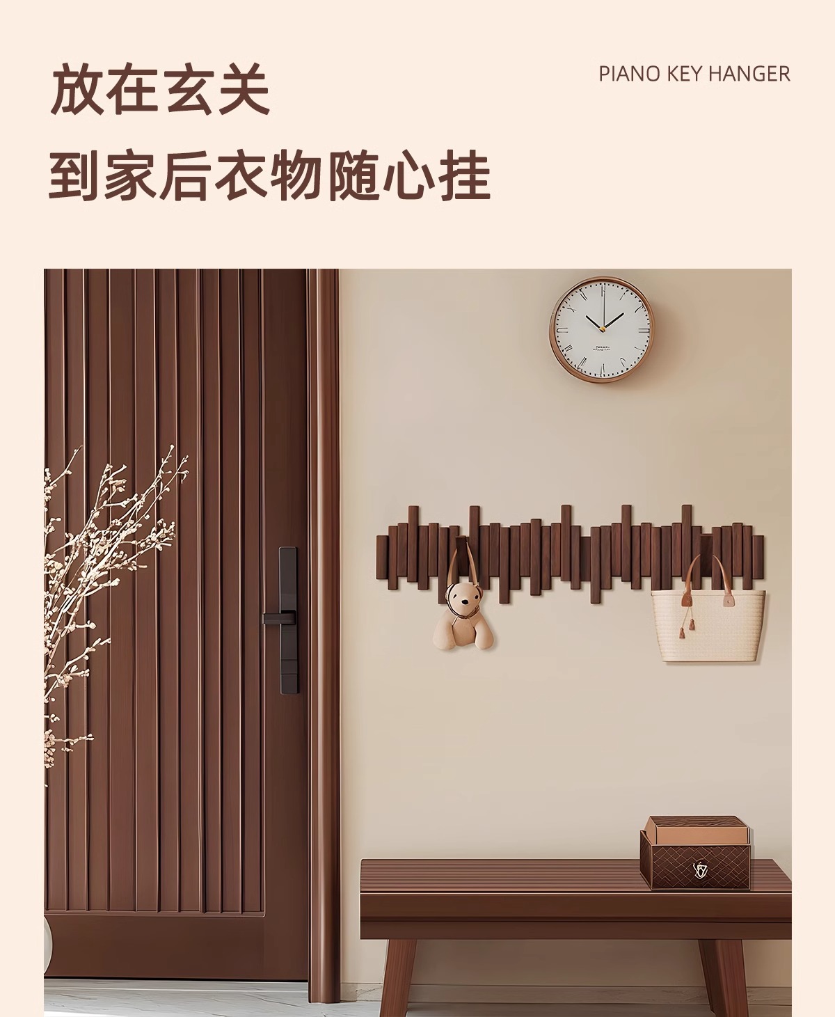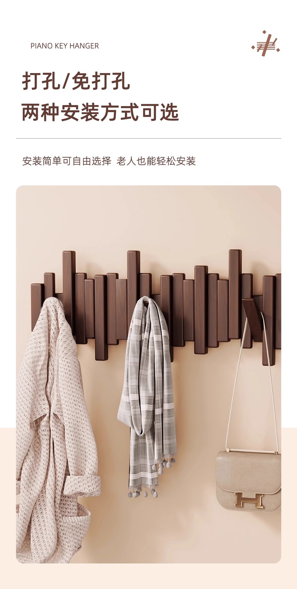 피아노 키 걸이 단단한 나무 벽 후크 침실 입구 문 후면 저장 비 펀치 코트 랙