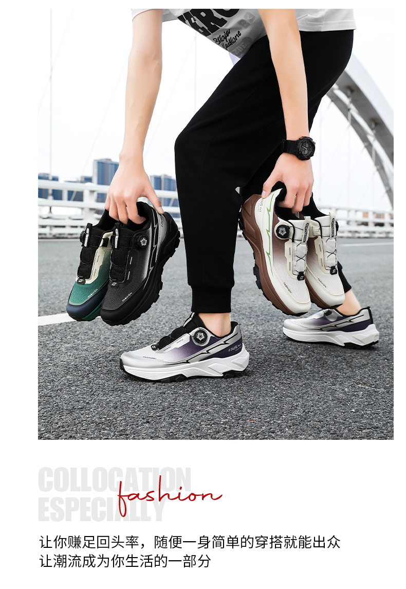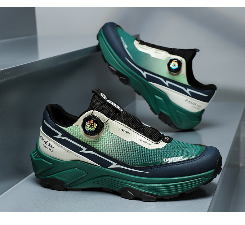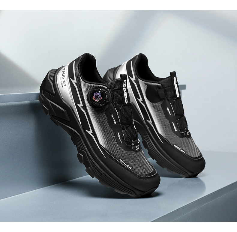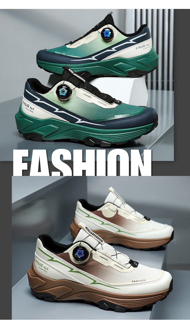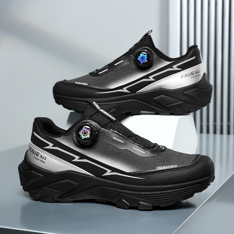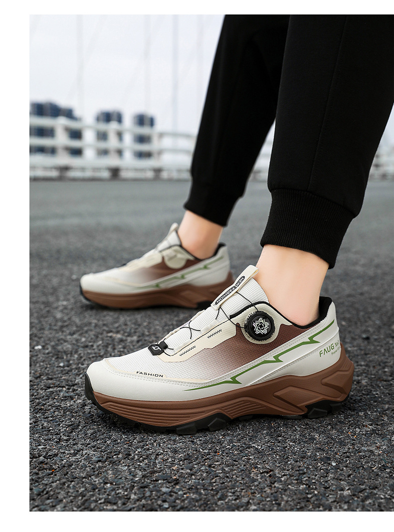 국경 간 남성 신발 2025 사계절 두꺼운 단독 회전 버튼 스포츠 경량 남성 등산 토레 신발 미끄럼 방지 여행 신발