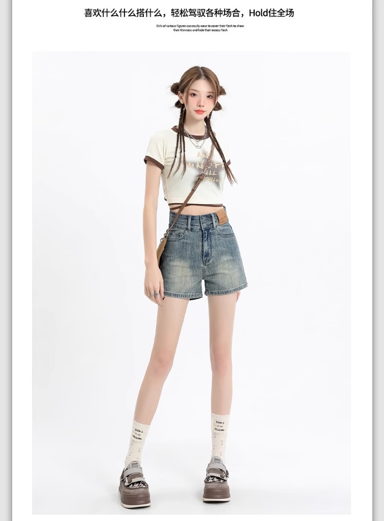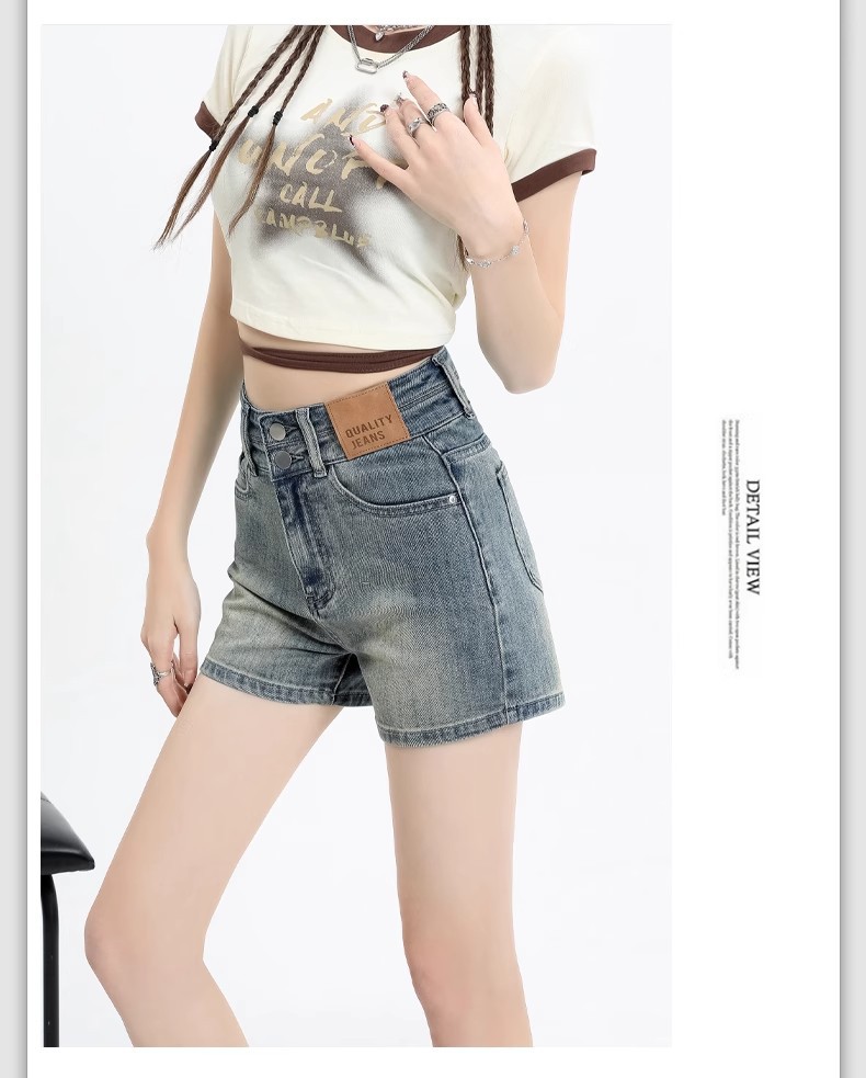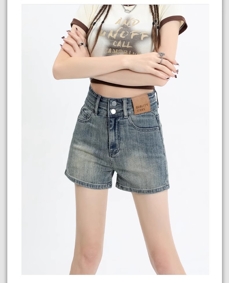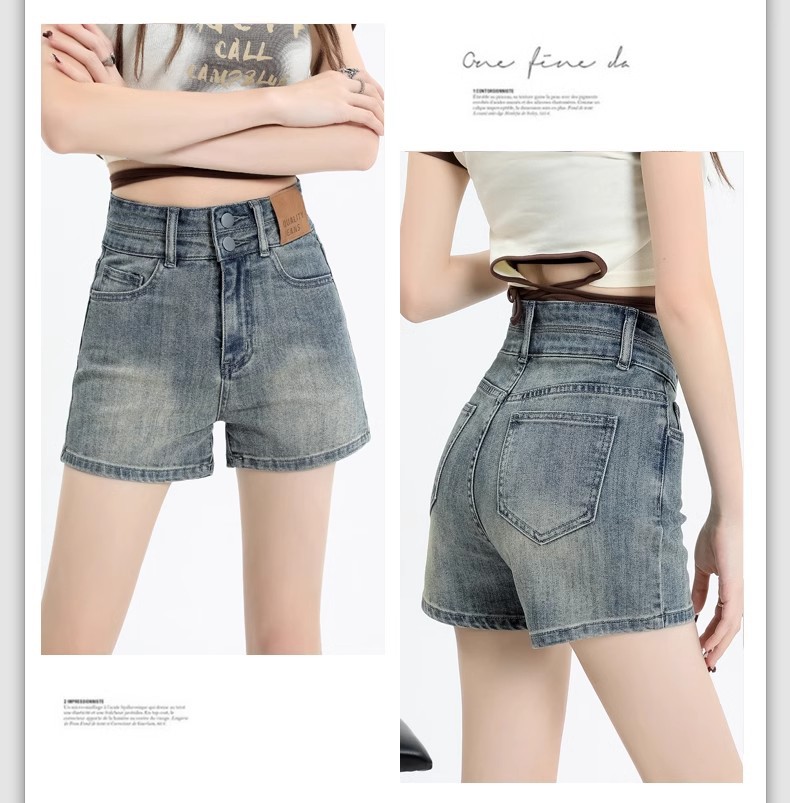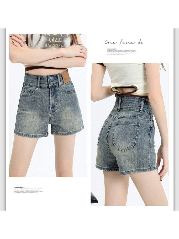 아메리칸 스타일 레트로 데님 반바지 여성 여름 얇은 2025 새로운 도착 플러스 사이즈 높은 허리 슬리밍 스트레치 A-워드 핫 팬츠 트렌디