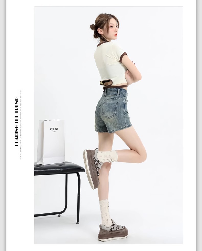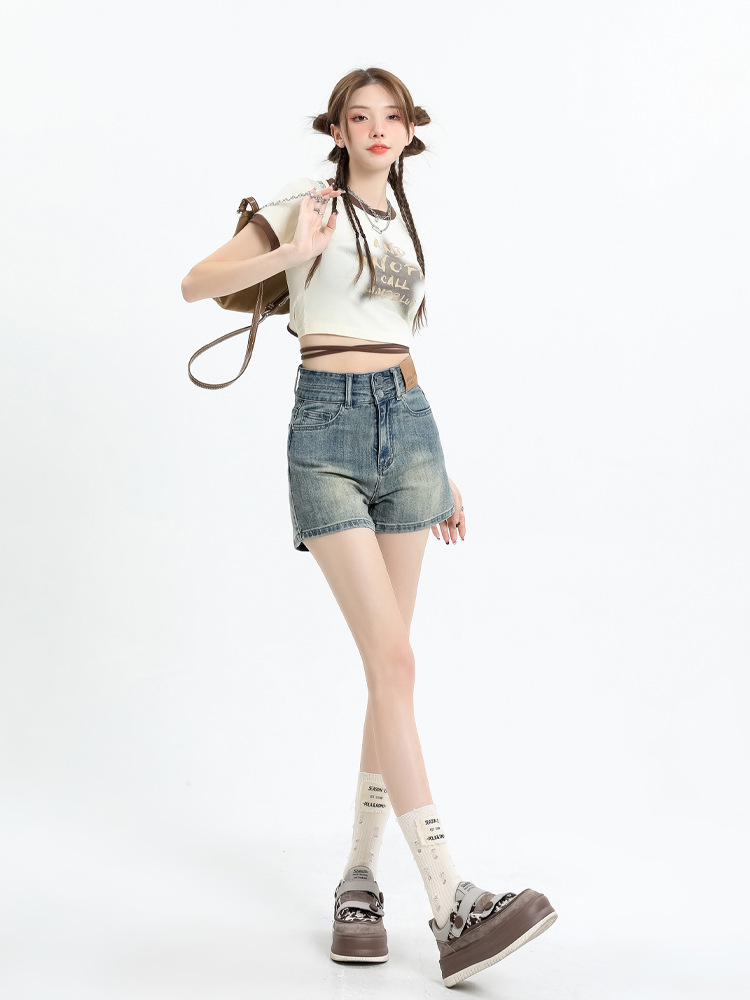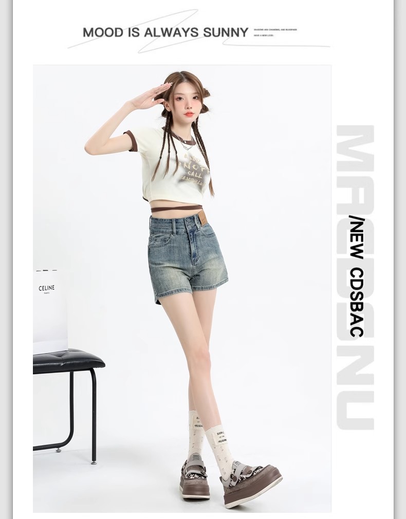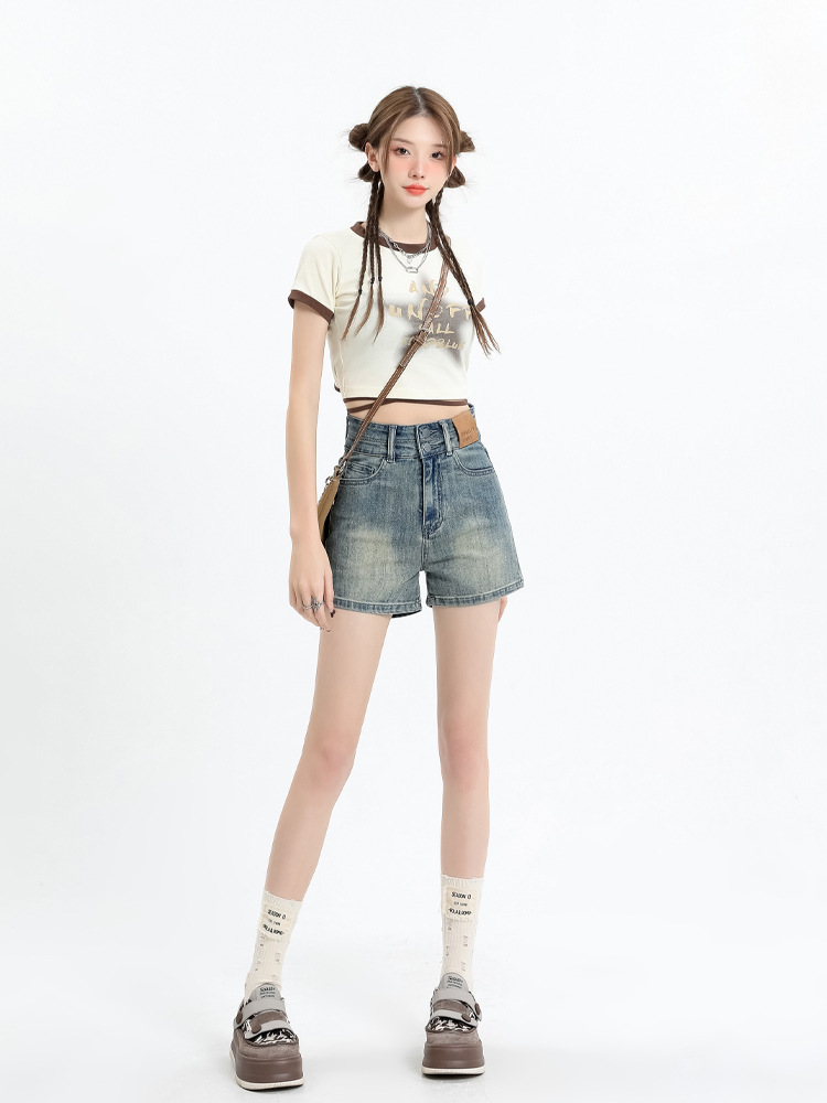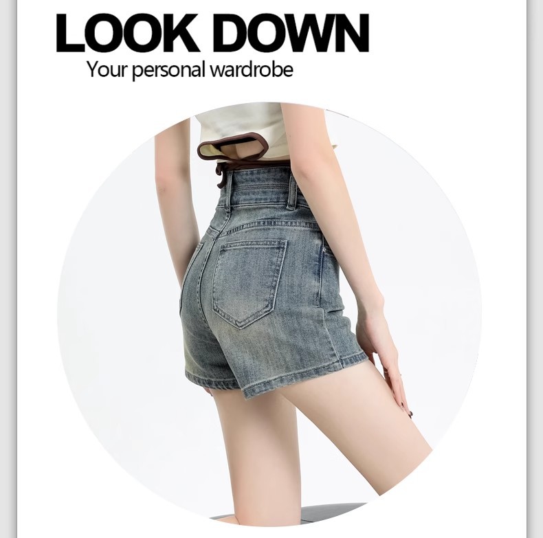 아메리칸 스타일 레트로 데님 반바지 여성 여름 얇은 2025 새로운 도착 플러스 사이즈 높은 허리 슬리밍 스트레치 A-워드 핫 팬츠 트렌디