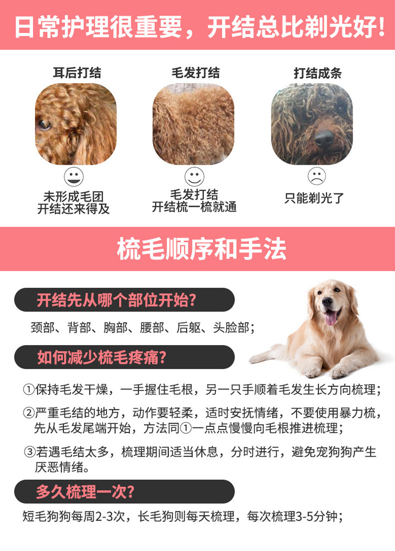 애완 동물 빗 양면 오픈 매듭 빗 개 고양이 빗 청소 아름다움 고양이 빗 애완 동물 용품 도매