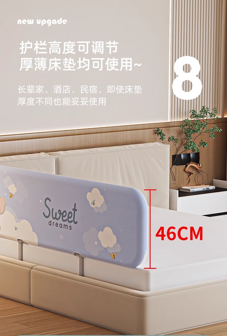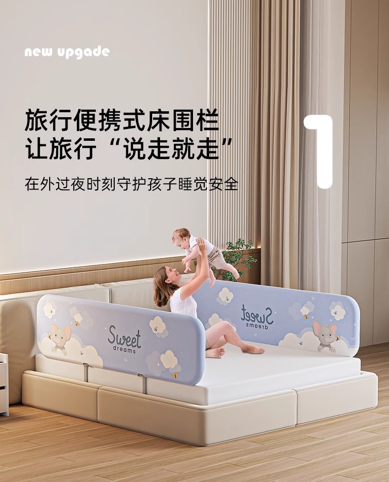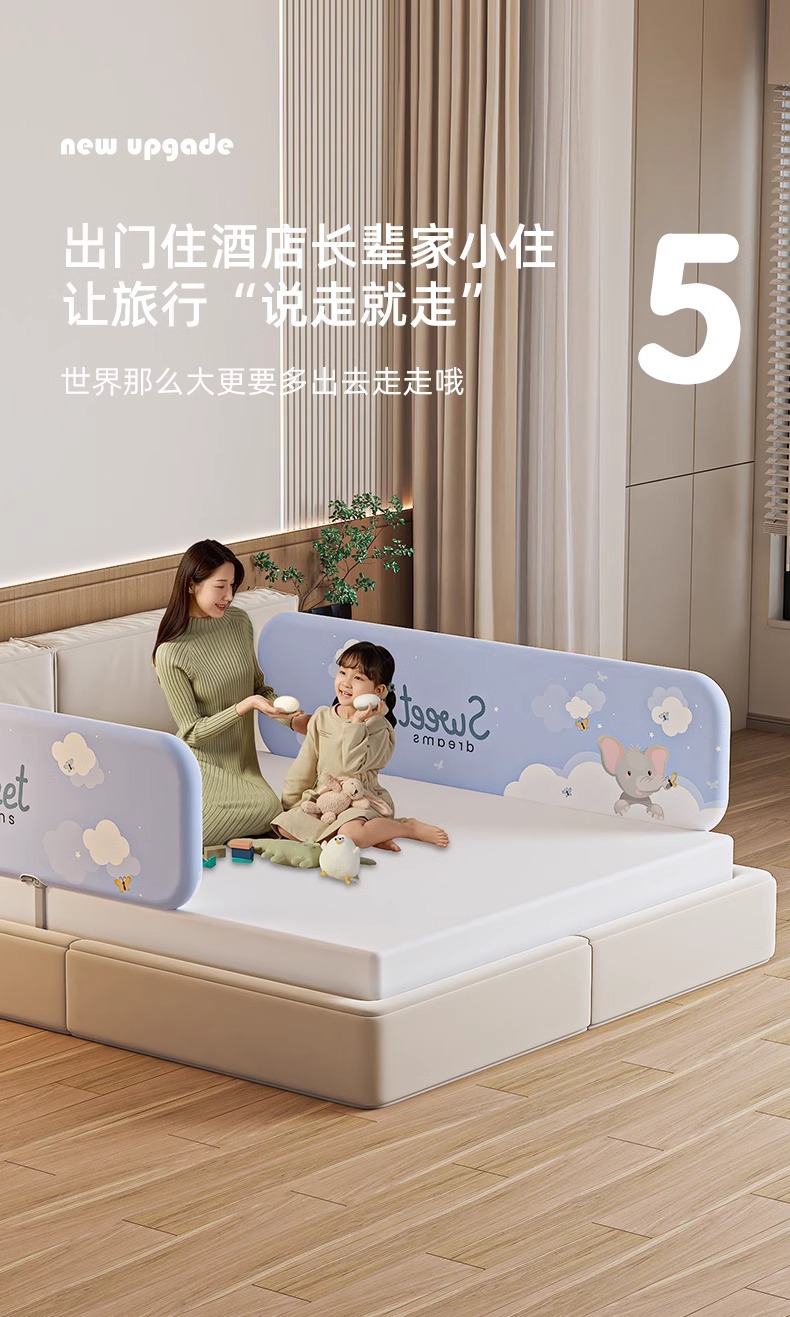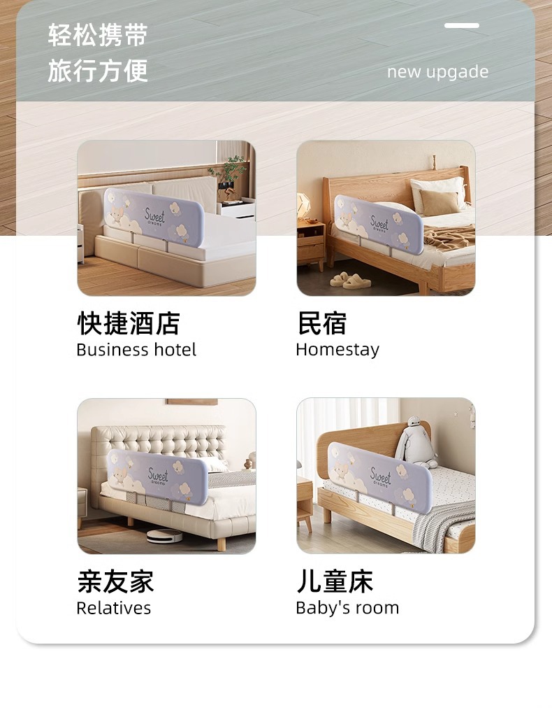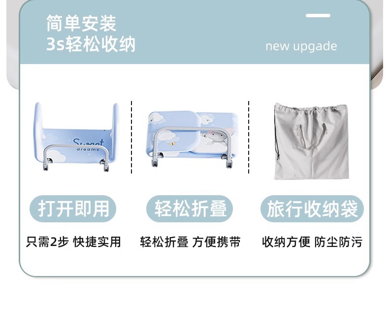 설치가 필요 없는 침대 울타리, 아기 낙하 방지 울타리, 휴대용 접이식 여행용 울타리, 아기 및 어린이 안전 베젤