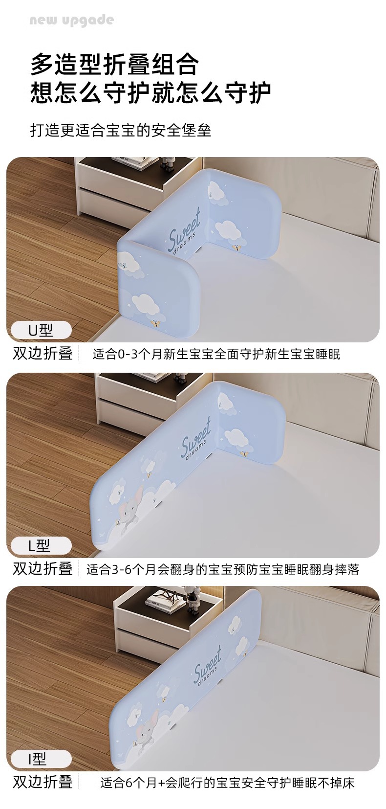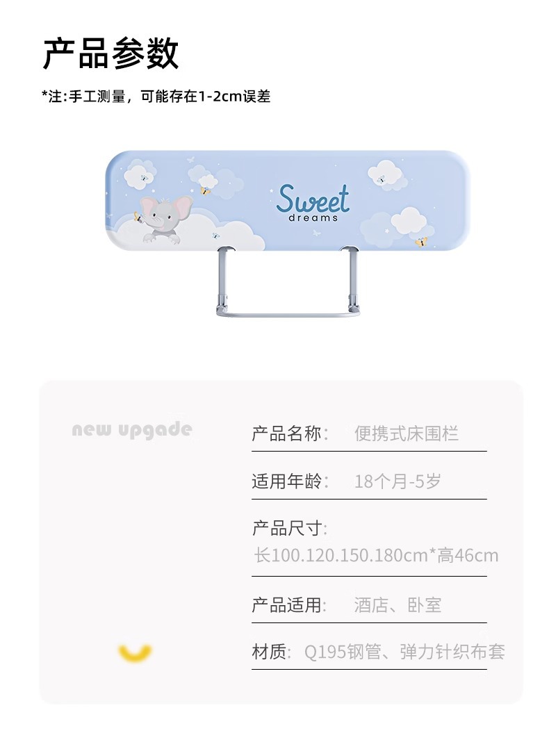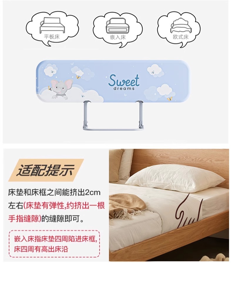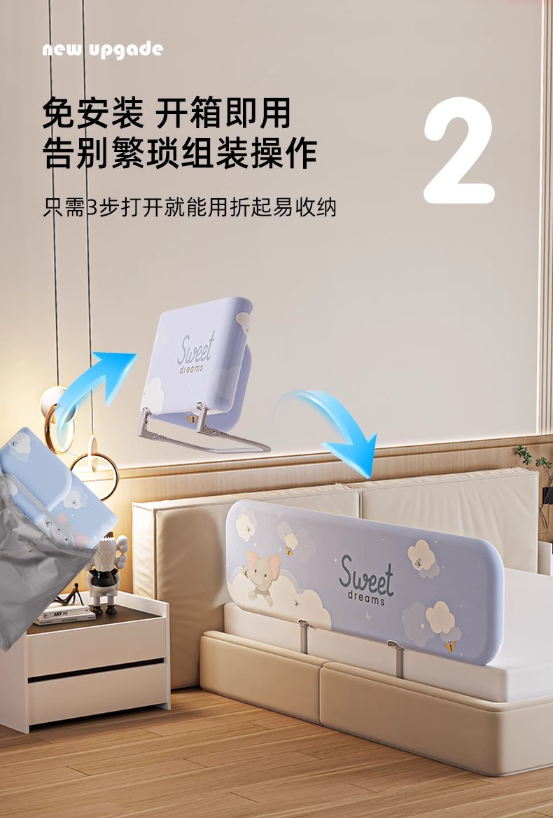 설치가 필요 없는 침대 울타리, 아기 낙하 방지 울타리, 휴대용 접이식 여행용 울타리, 아기 및 어린이 안전 베젤