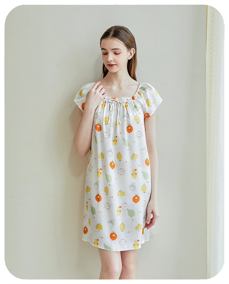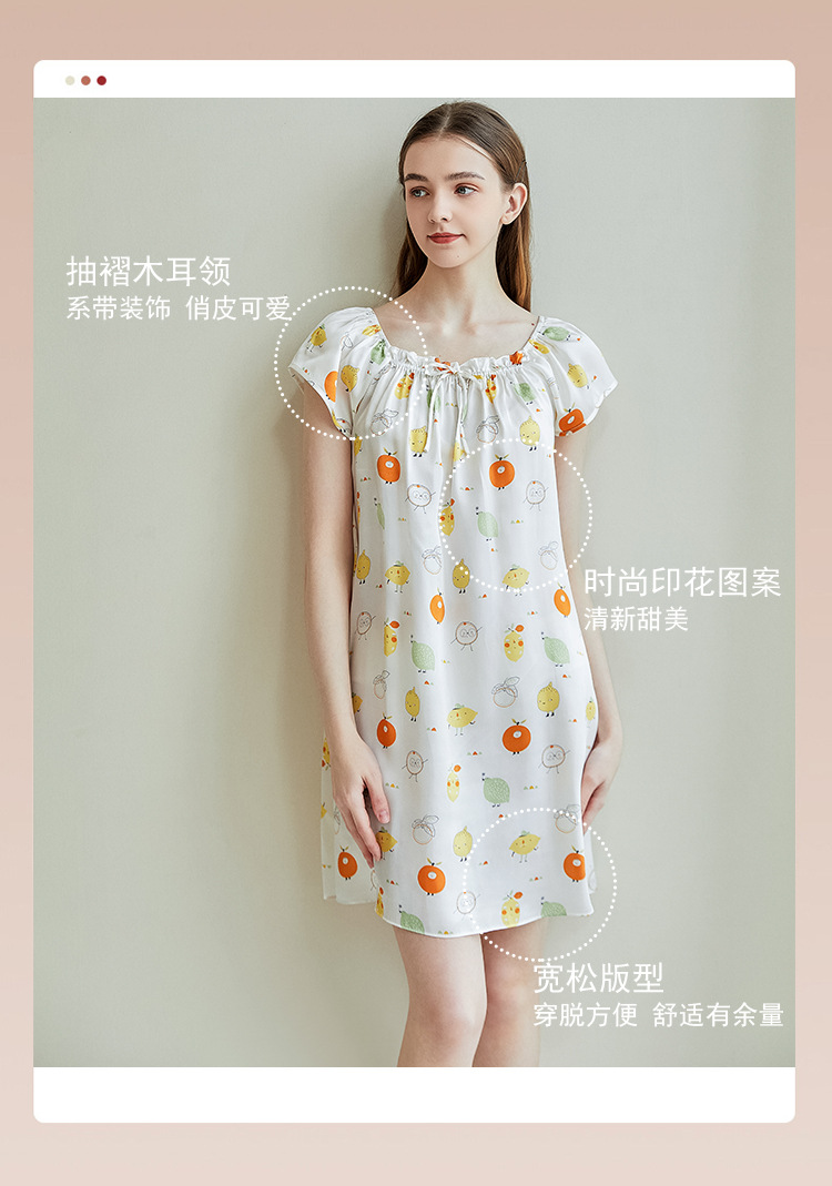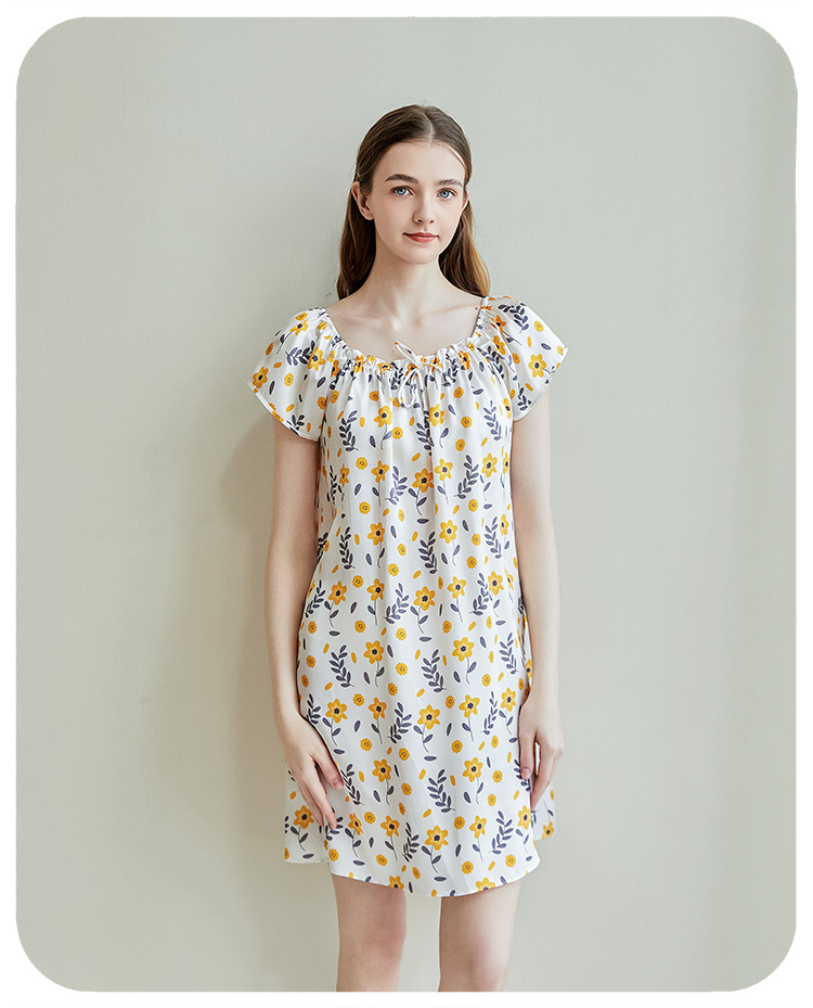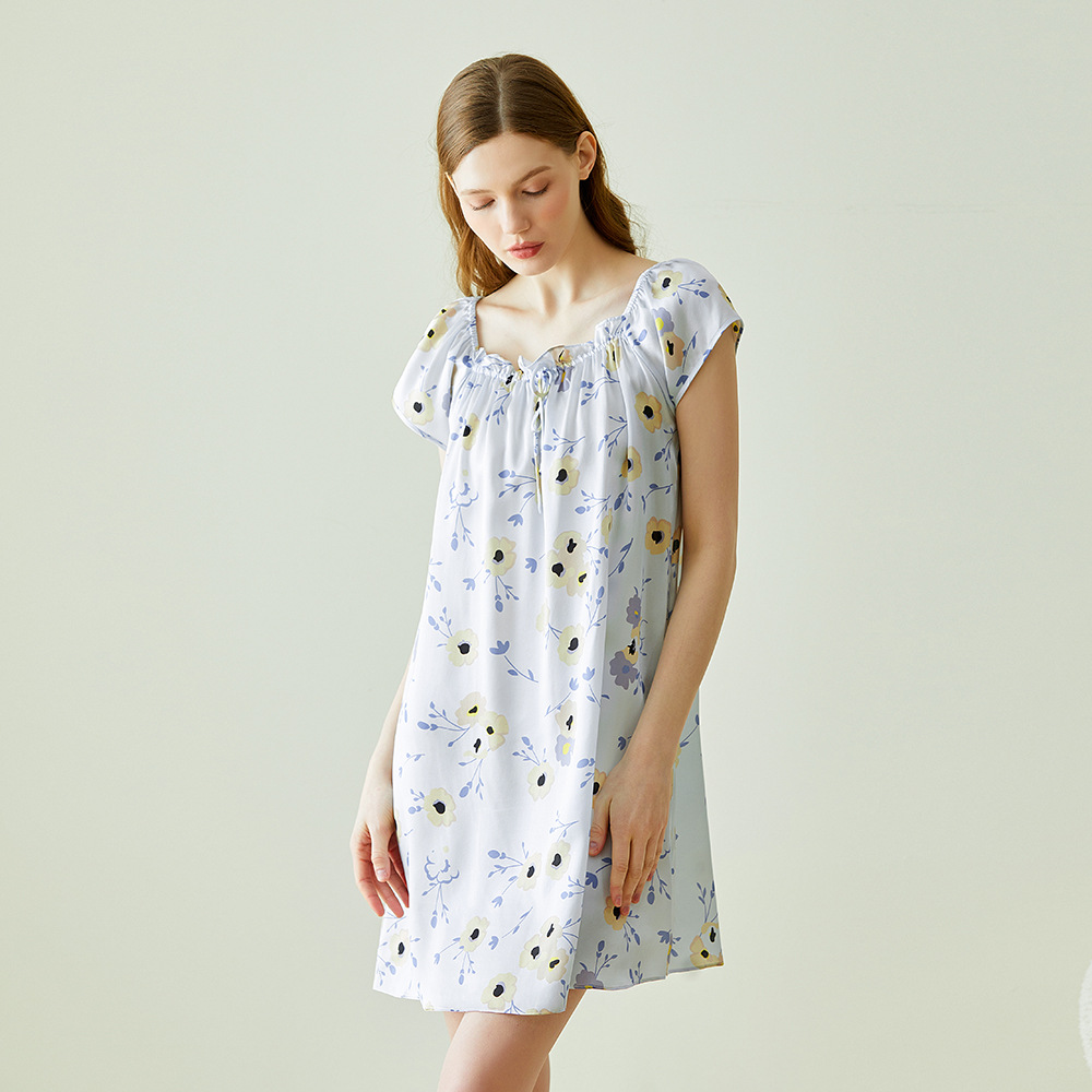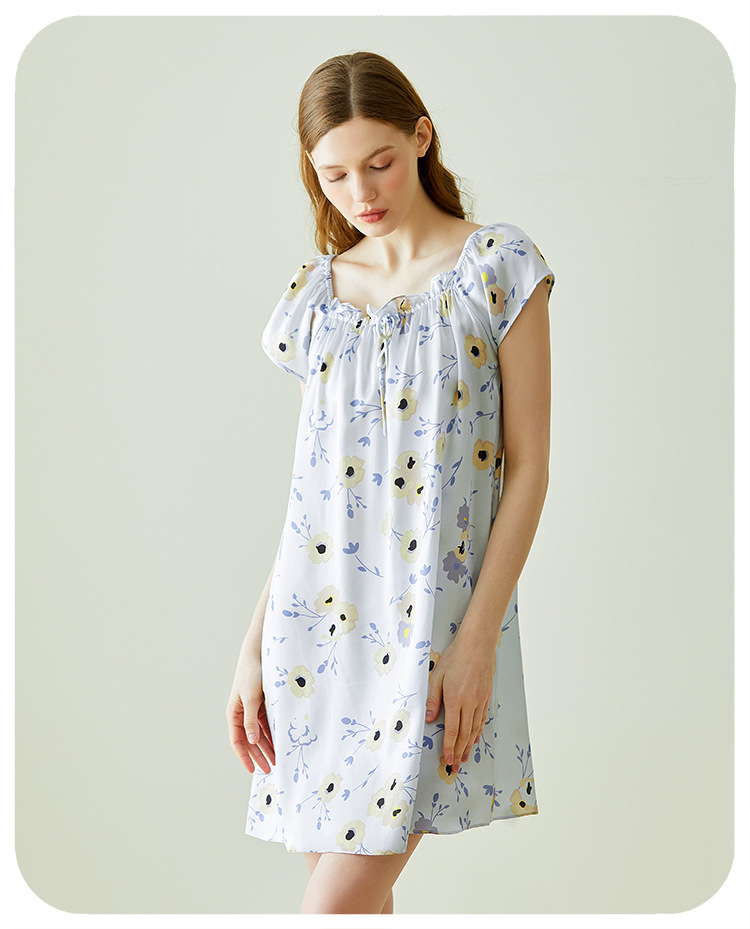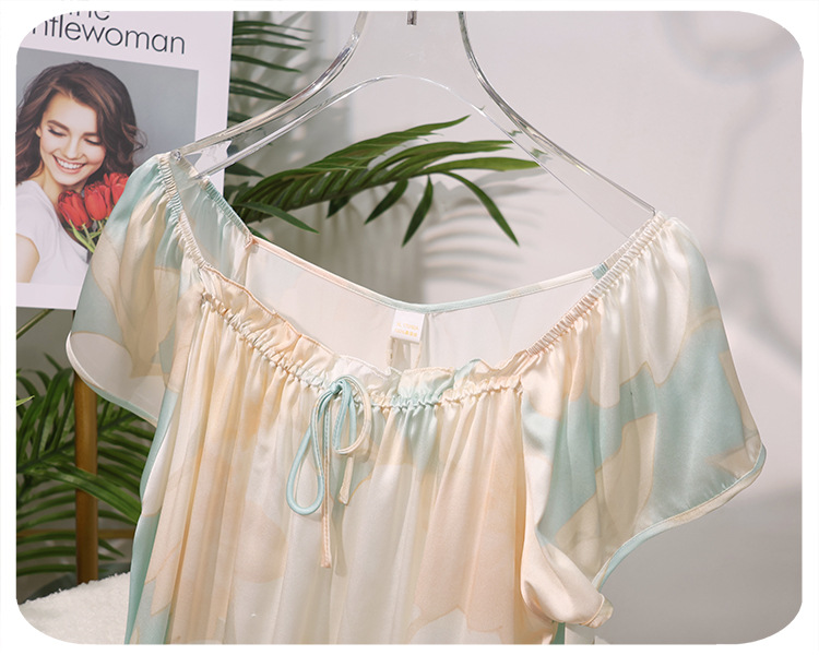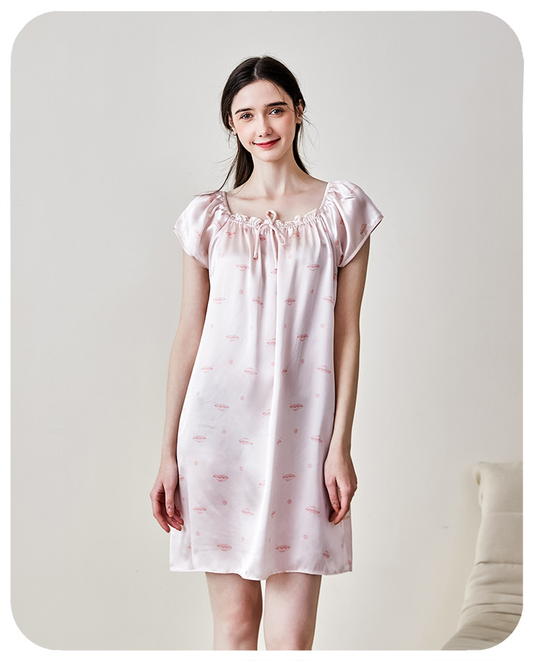 2025夏季新款时尚印花碎花花色真丝睡裙,100%桑蚕丝,16姆米真丝素绉缎,夏天凉爽薄款短袖宽松大码连衣裙娃娃裙公主裙,厂家直销一件代发电商爆款