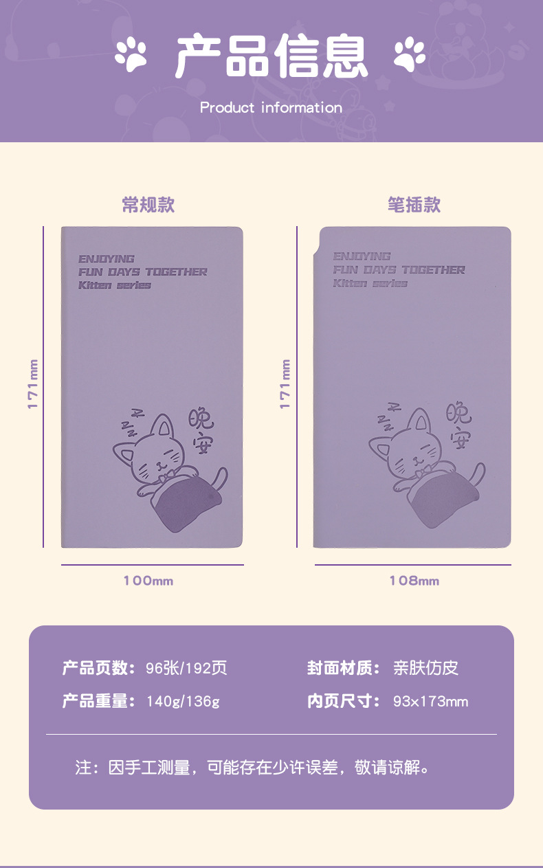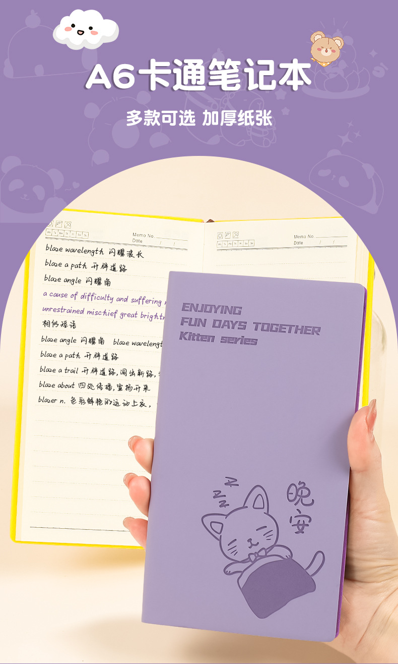 만화 고양이 수평 라인 노트북 A6 문구 작은 신선한 대학생 학습 일기 사무실 노트북