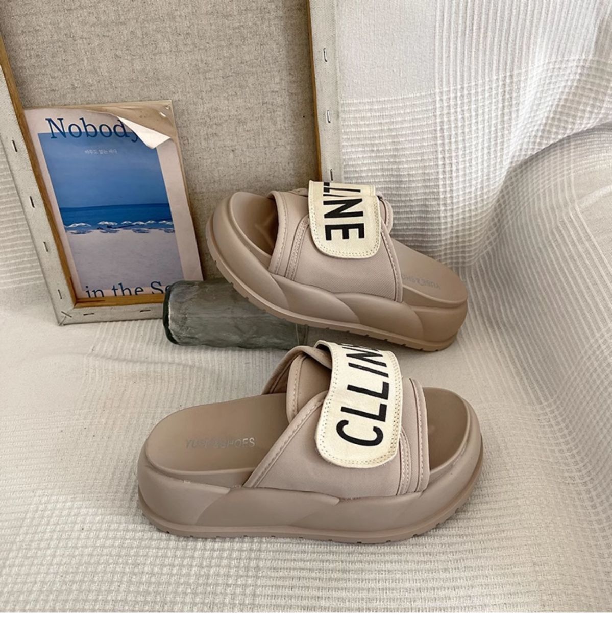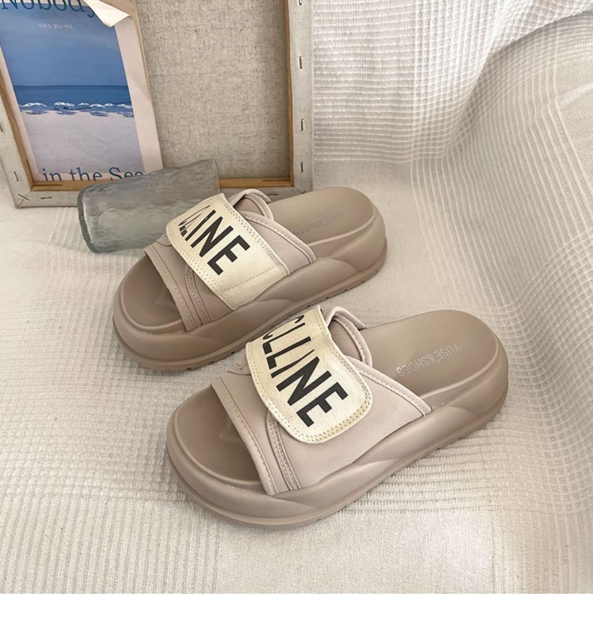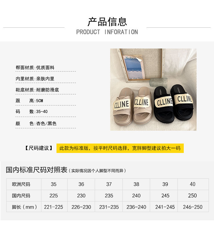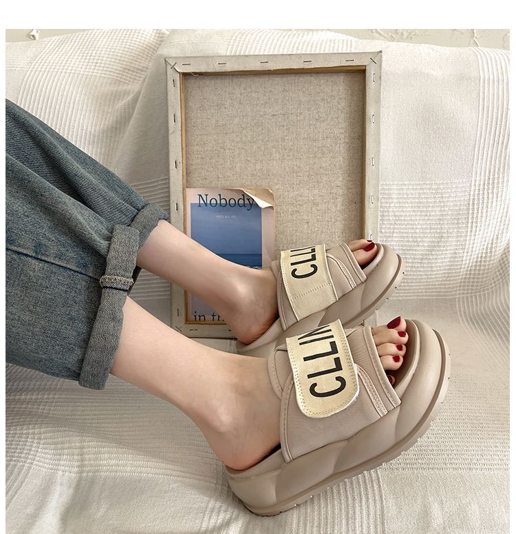2024 봄과 가을 슬리퍼 두꺼운 밑창 미끄럼 방지 샌들 여성 여름 패션 신발 거리 상점 인기