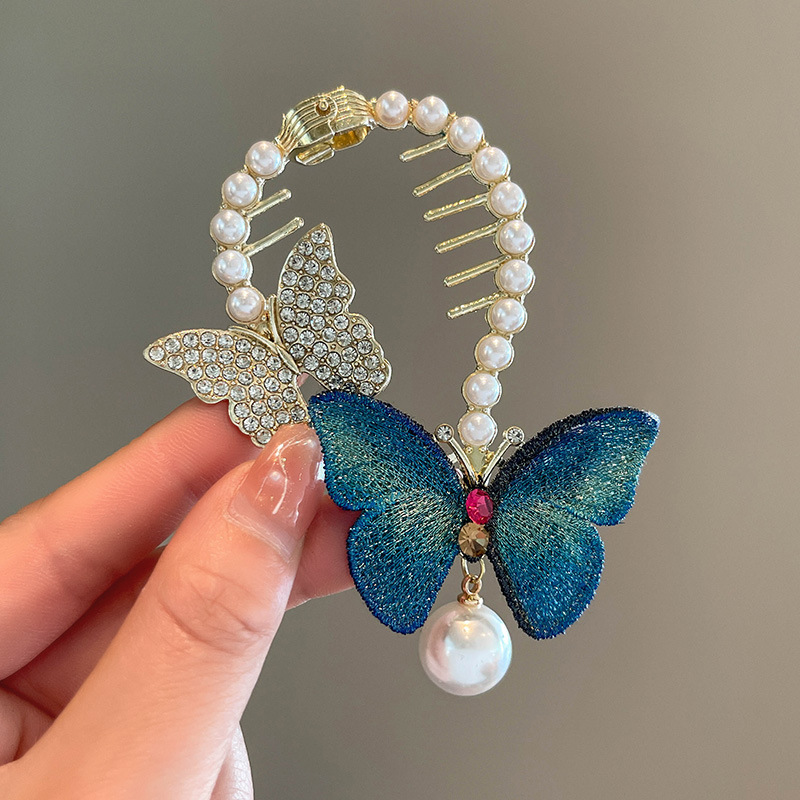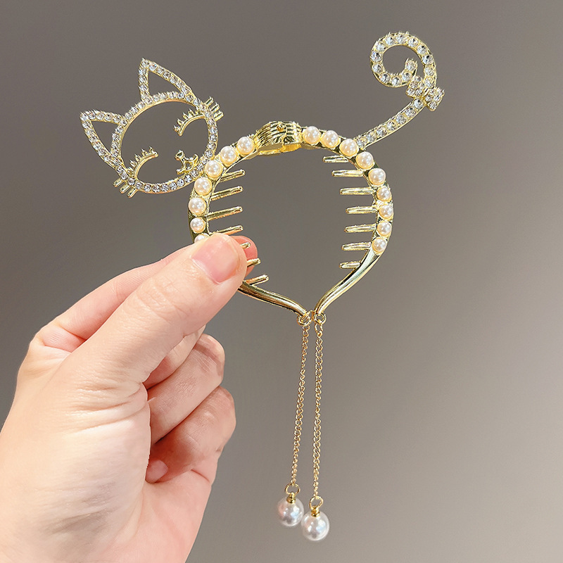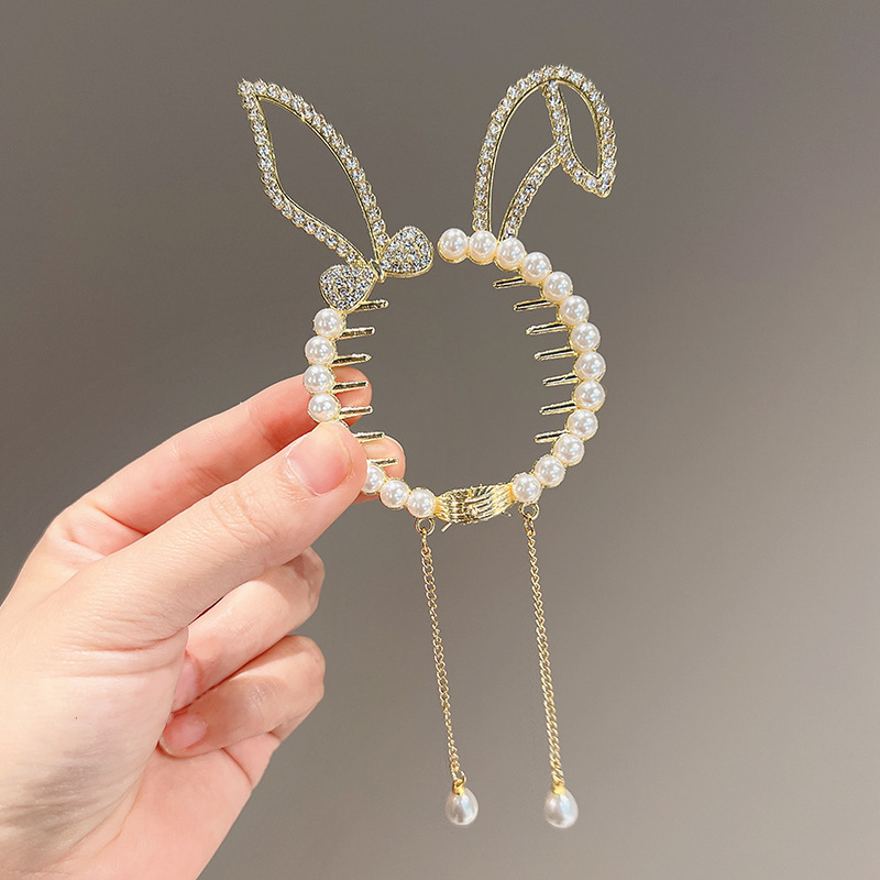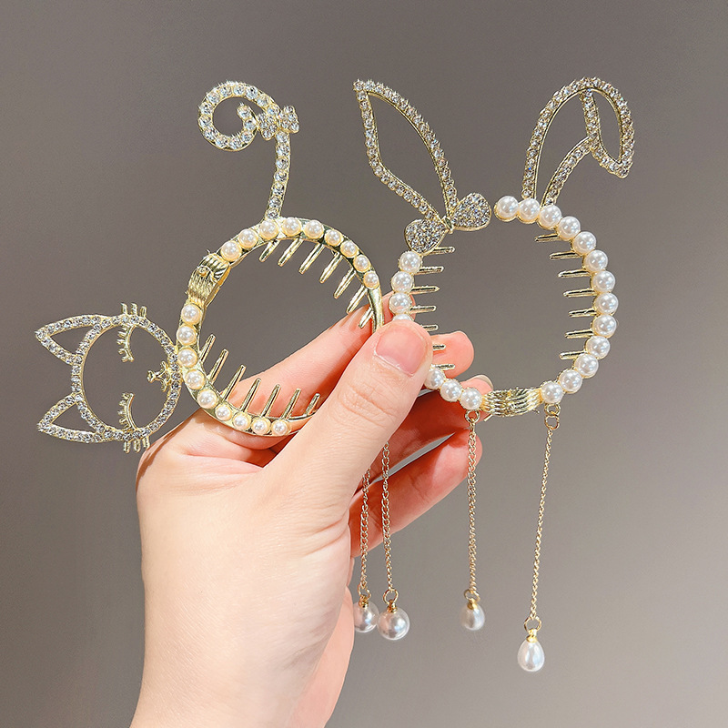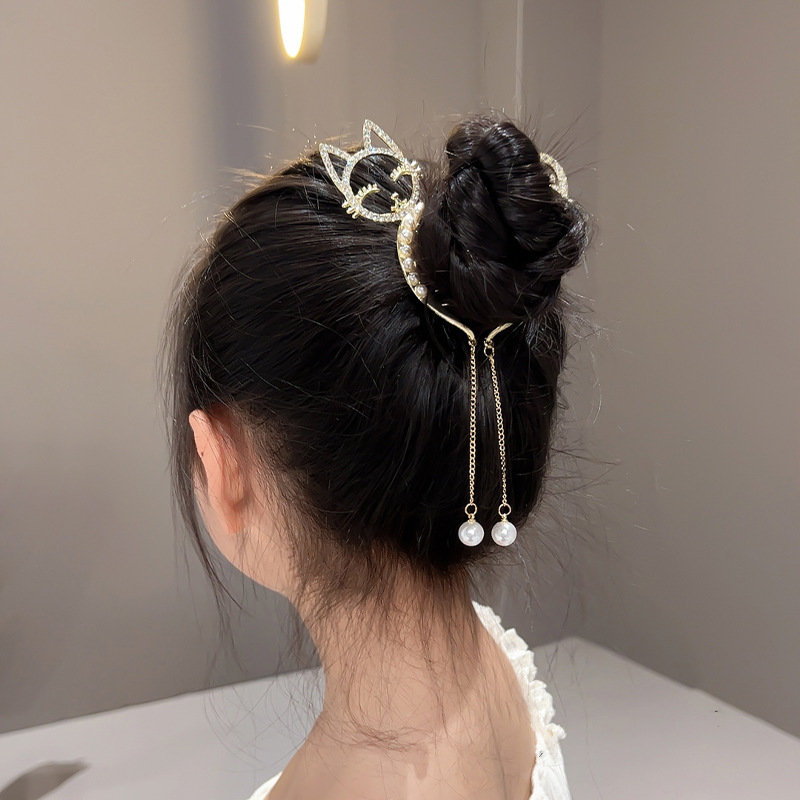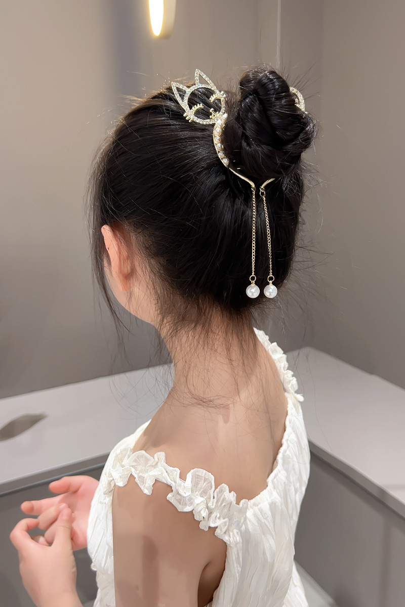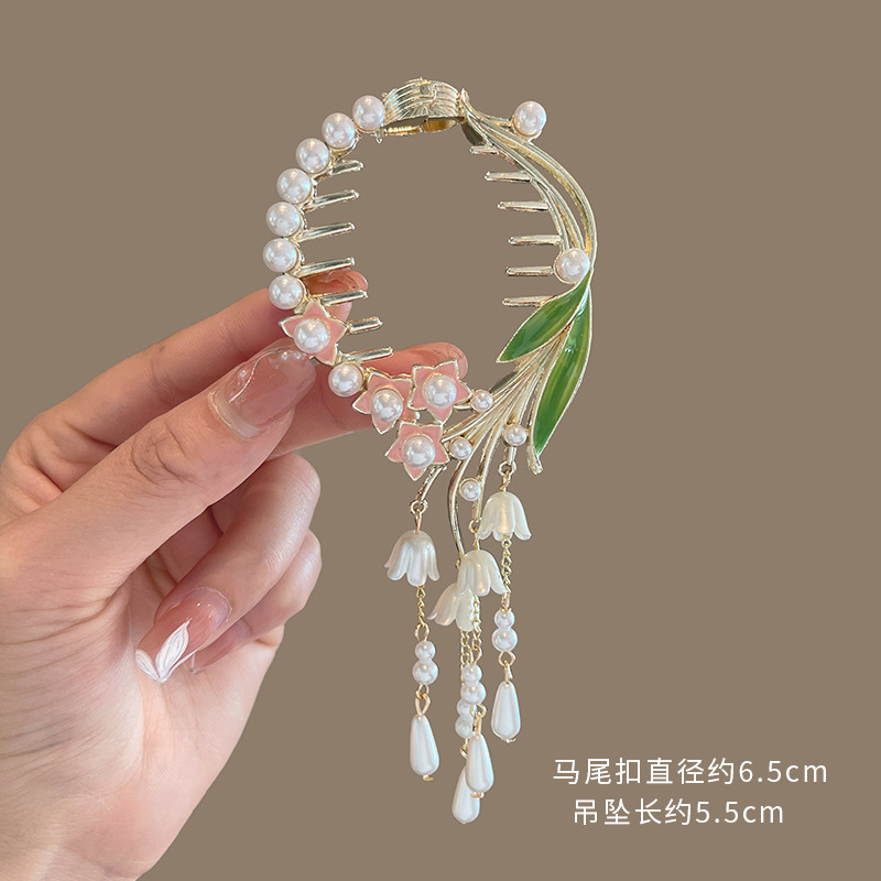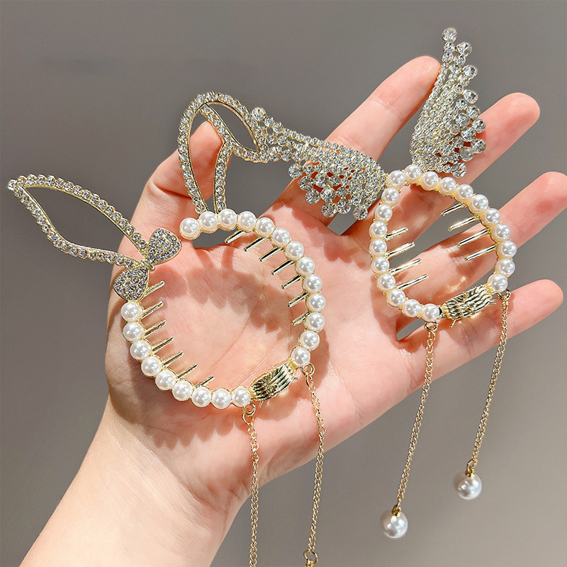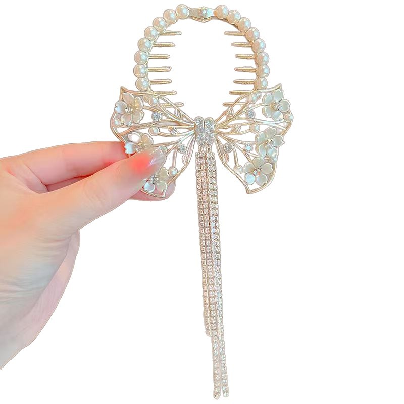 반짝이는 다이아몬드 플라워 태슬 헤어 클립