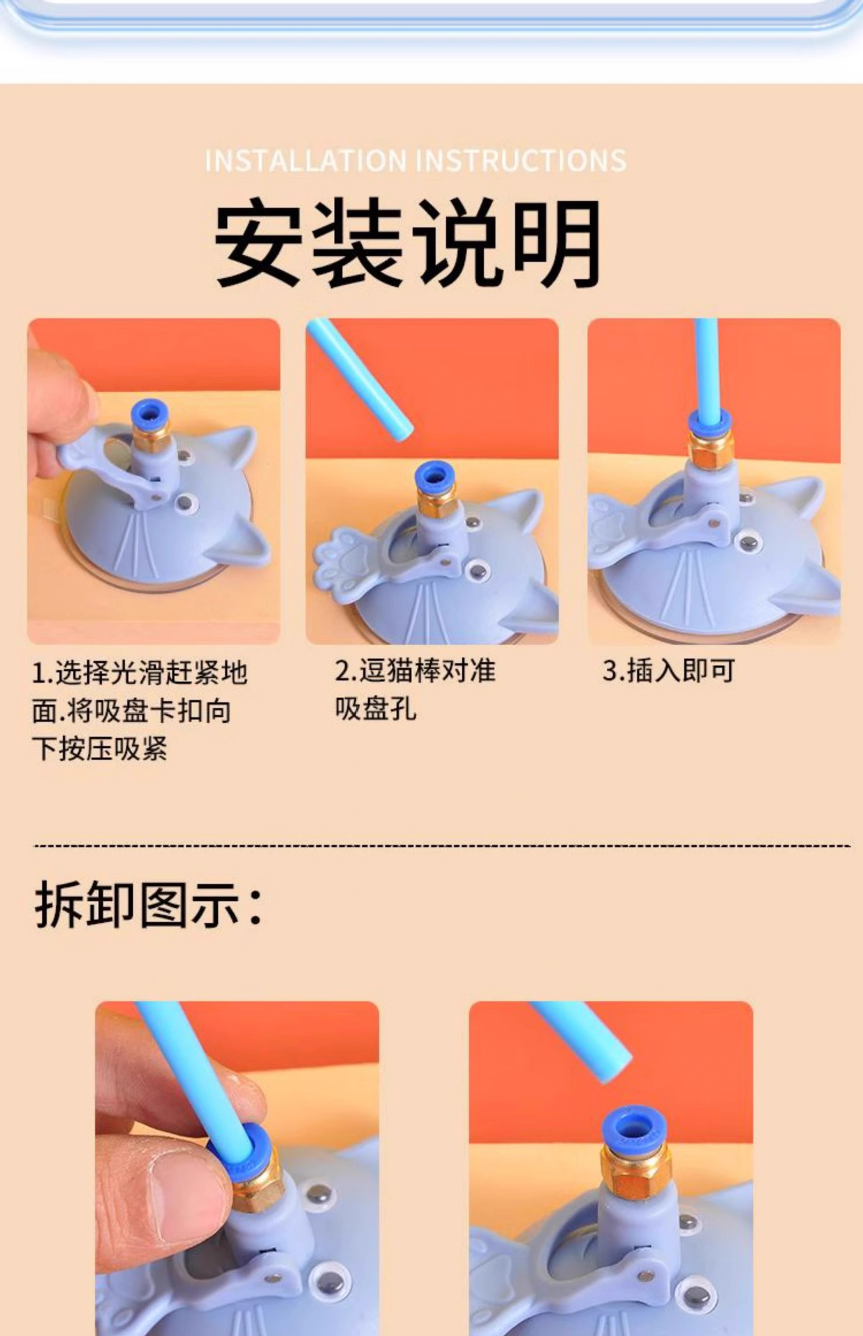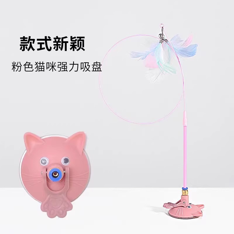 초강력 흡착컵 고양이 놀리는 막대 [핑크색 깃털 포함]