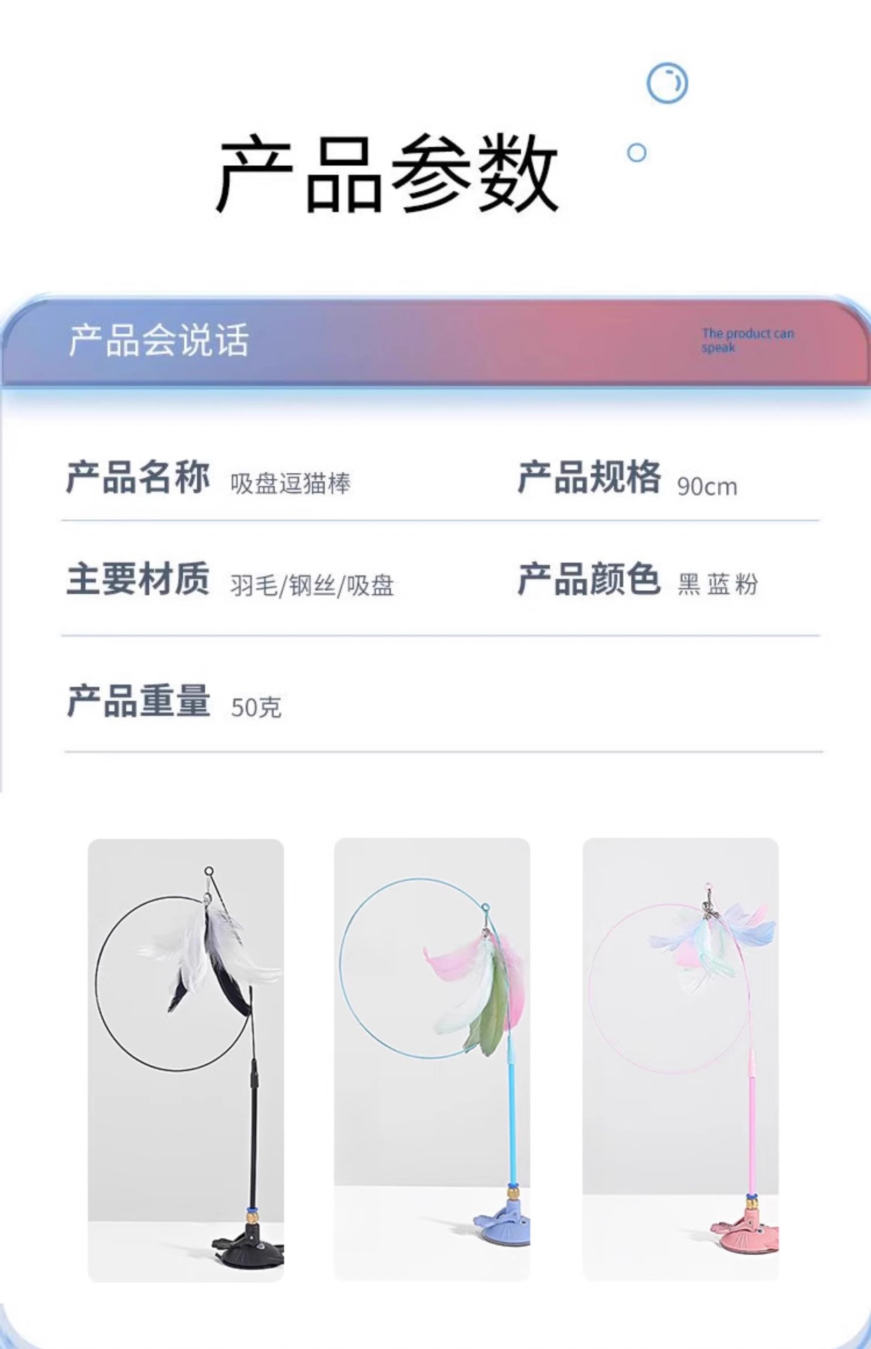 초강력 흡입컵 고양이 놀리는 막대기 [파란색 깃털 포함]