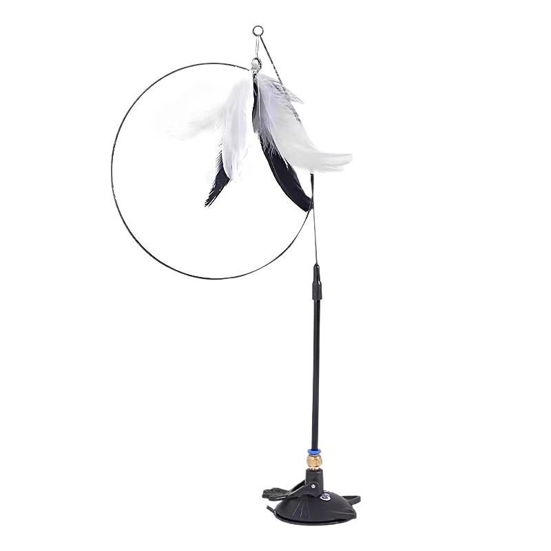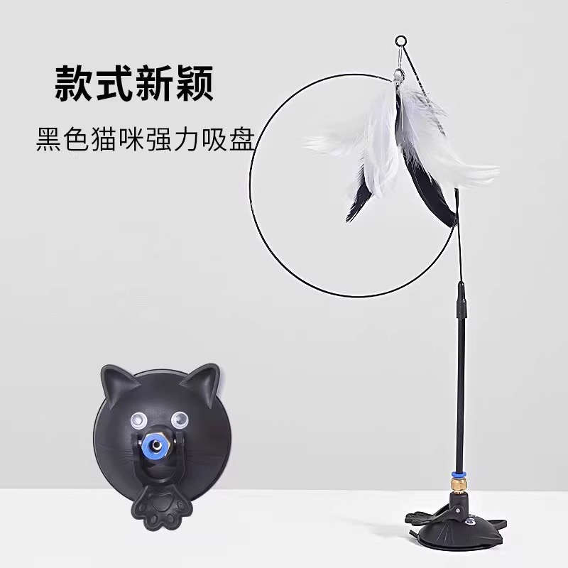 초강력 흡입컵 고양이 놀리는 막대 [검은색 깃털 포함]