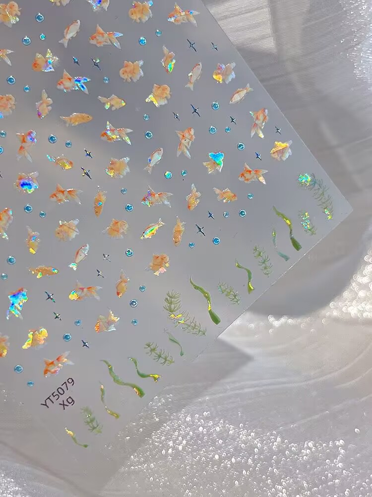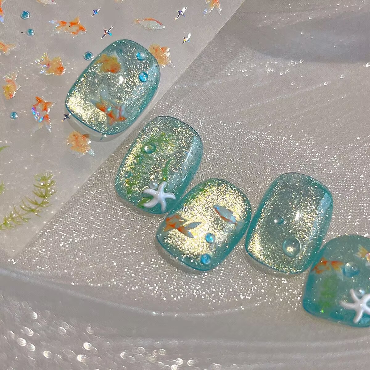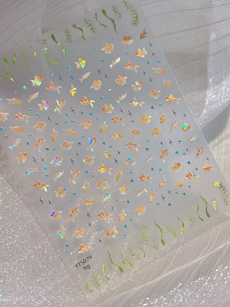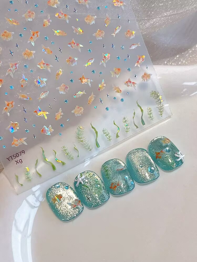 Ins 네일 아트 눈부신 귀여운 작은 금붕어 여름 스트림 신선한 치료 네일 스티커 장식