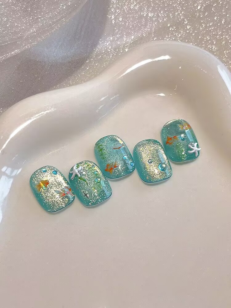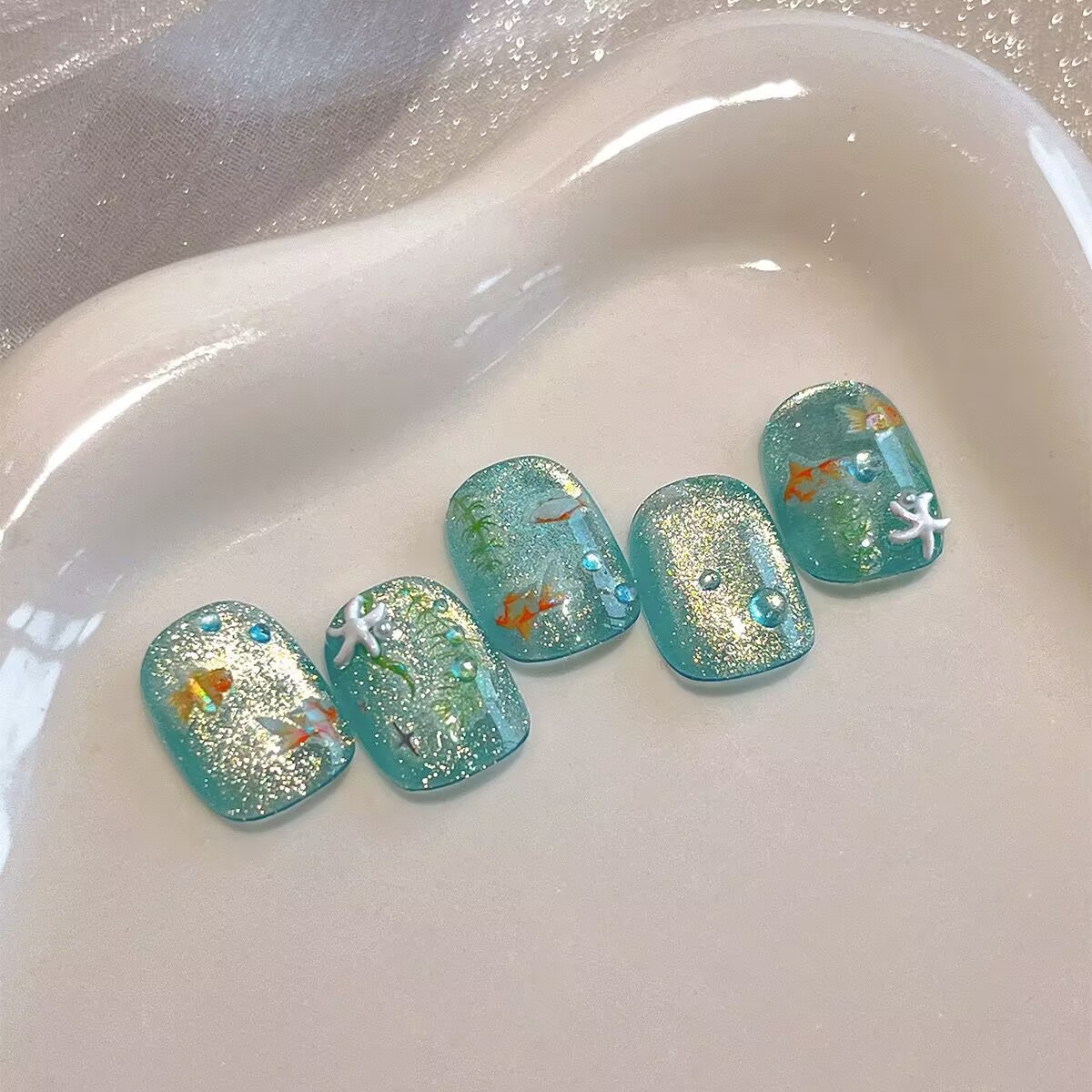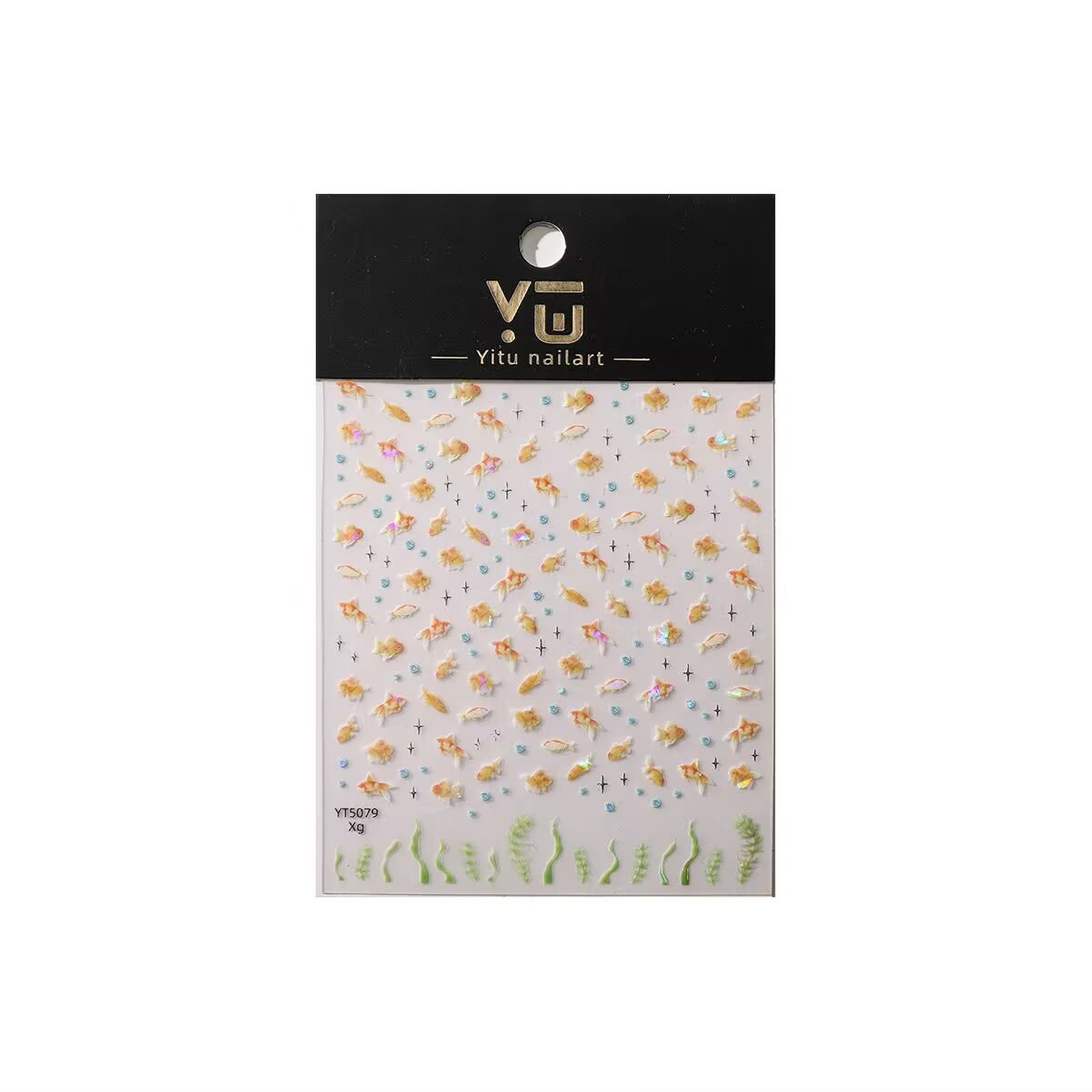 Ins 네일 아트 눈부신 귀여운 작은 금붕어 여름 스트림 신선한 치료 네일 스티커 장식