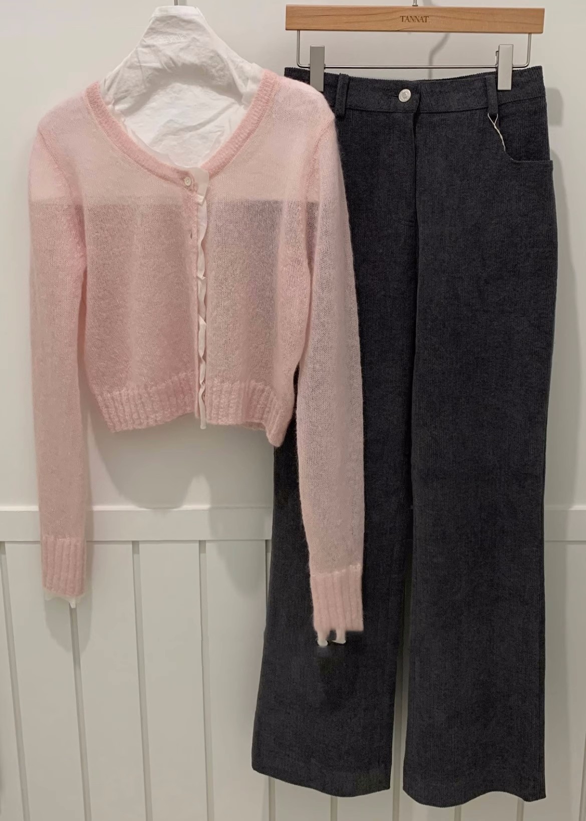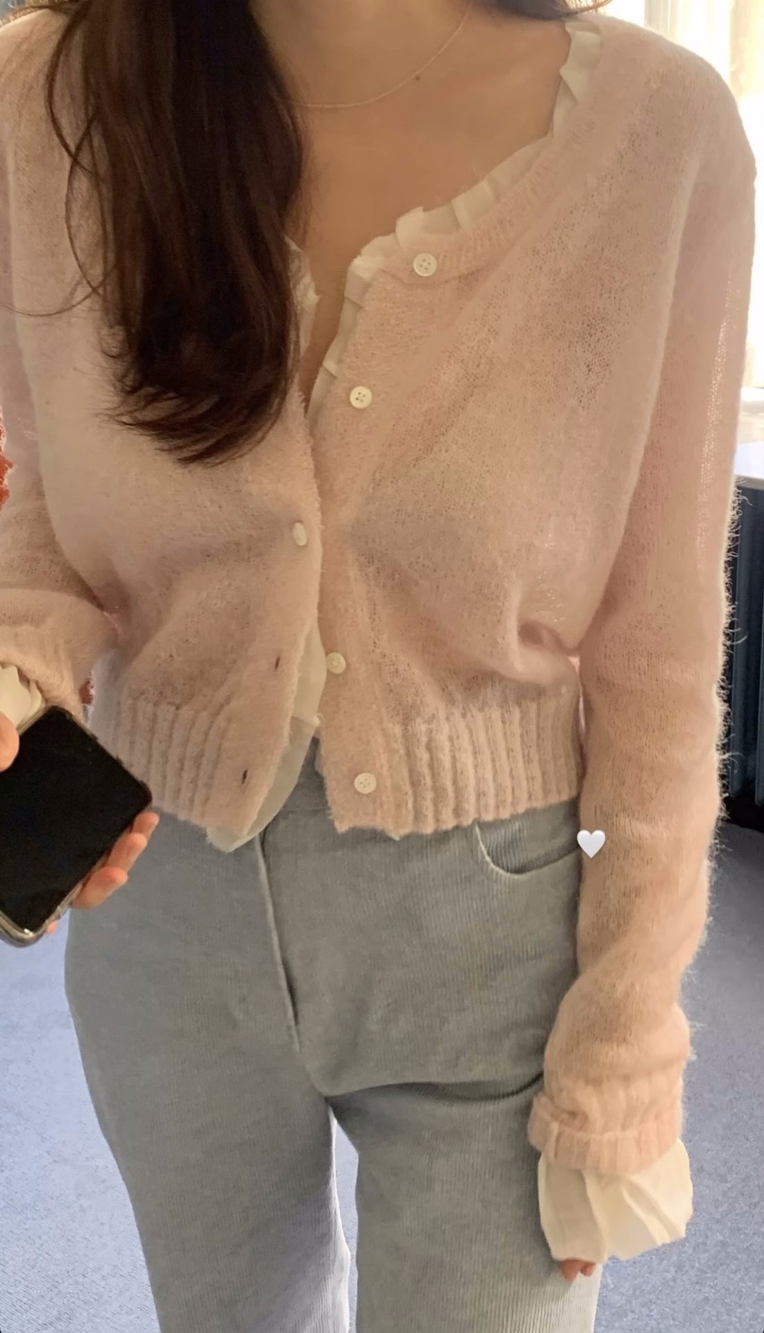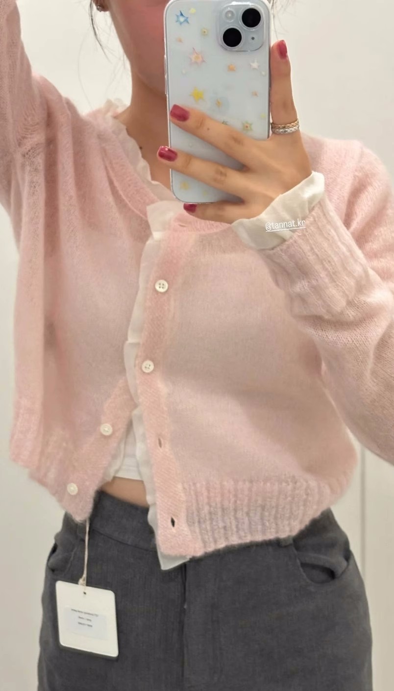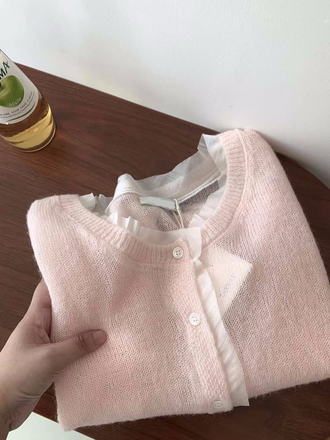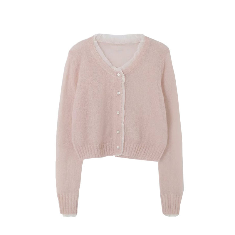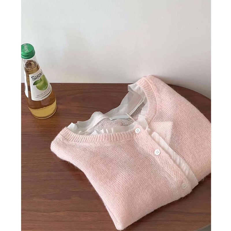 한국 동대문 봄 신상 tan*at 스타일리쉬한 V넥 레이스 배색 달콤한 니트 가디건