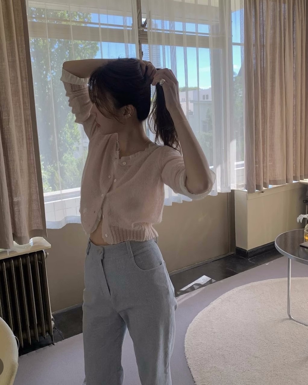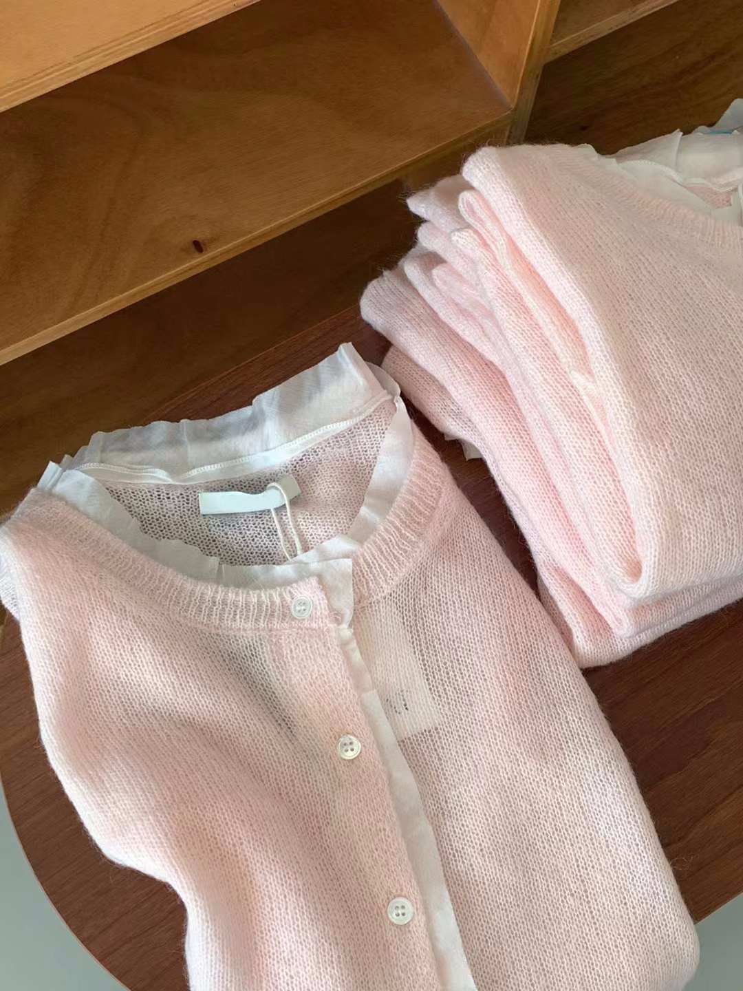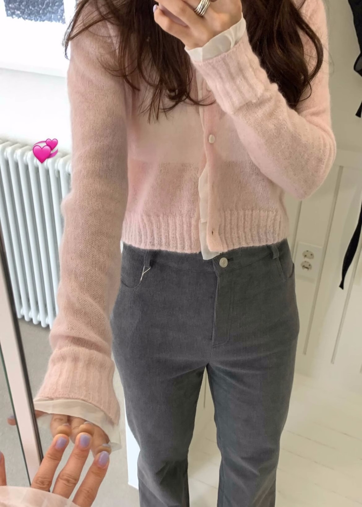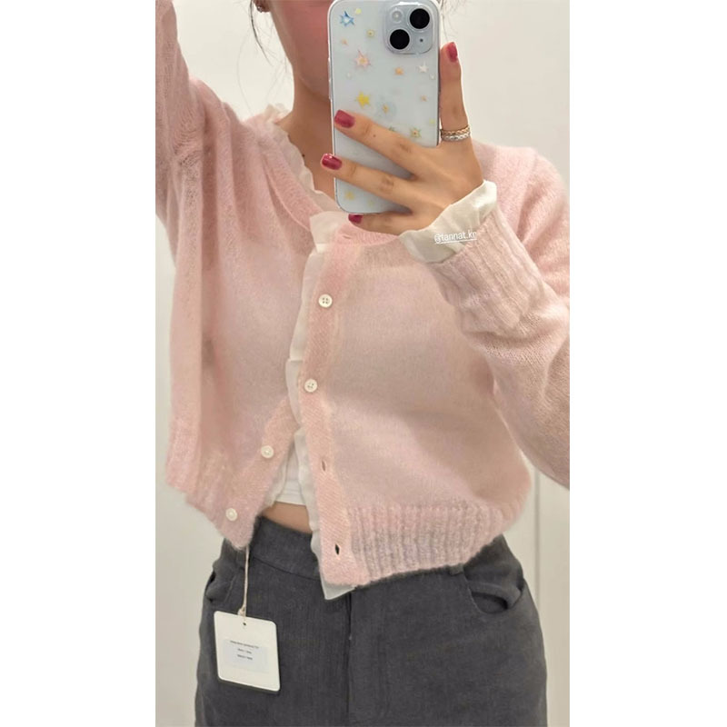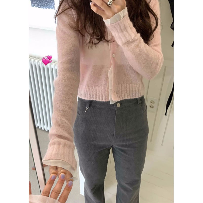 한국 동대문 봄 신상 tan*at 스타일리쉬한 V넥 레이스 배색 달콤한 니트 가디건