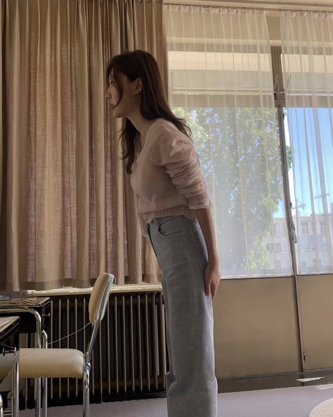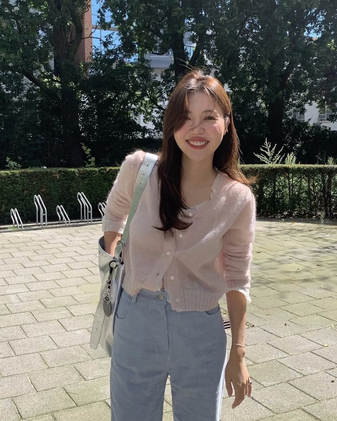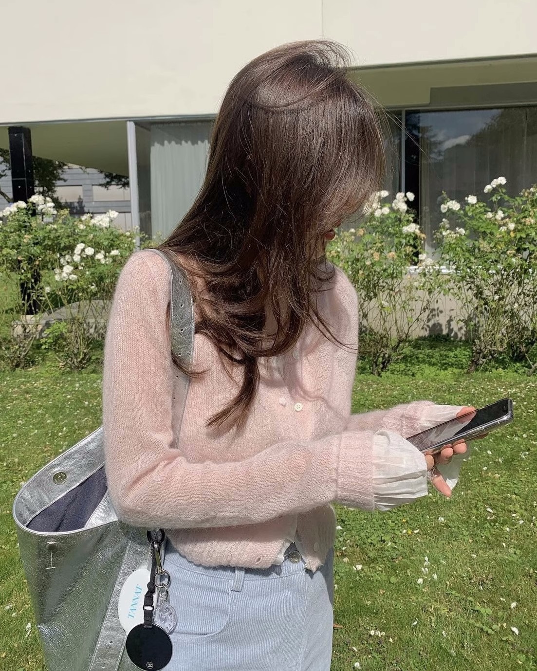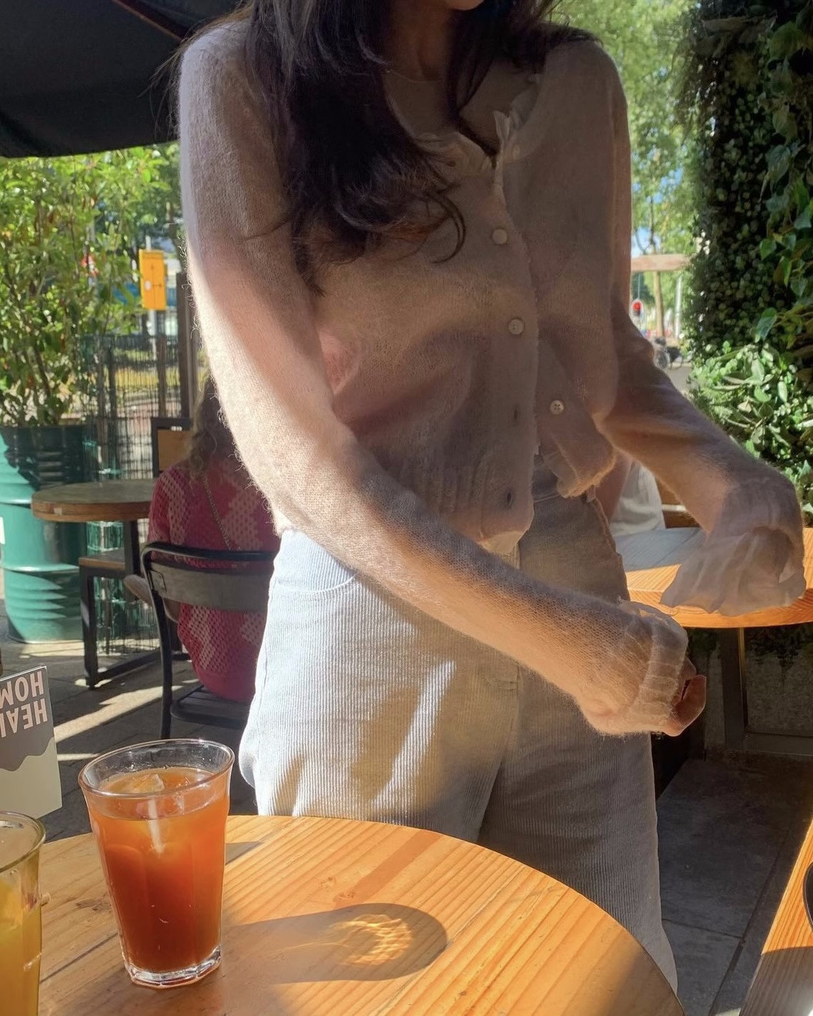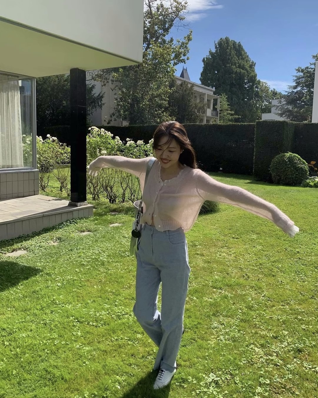 한국 동대문 봄 신상 tan*at 스타일리쉬한 V넥 레이스 배색 달콤한 니트 가디건
