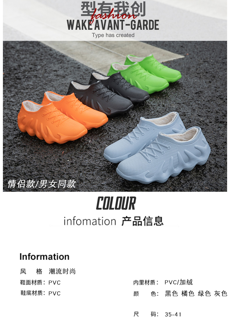 여성용 새로운 패셔너블한 펌프스 레인부츠, 남성용 방수 및 미끄럼 방지 플랫 레인부츠, 사계절 내마모성 세차 주방 작업 고무신