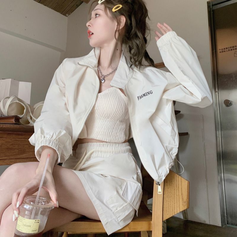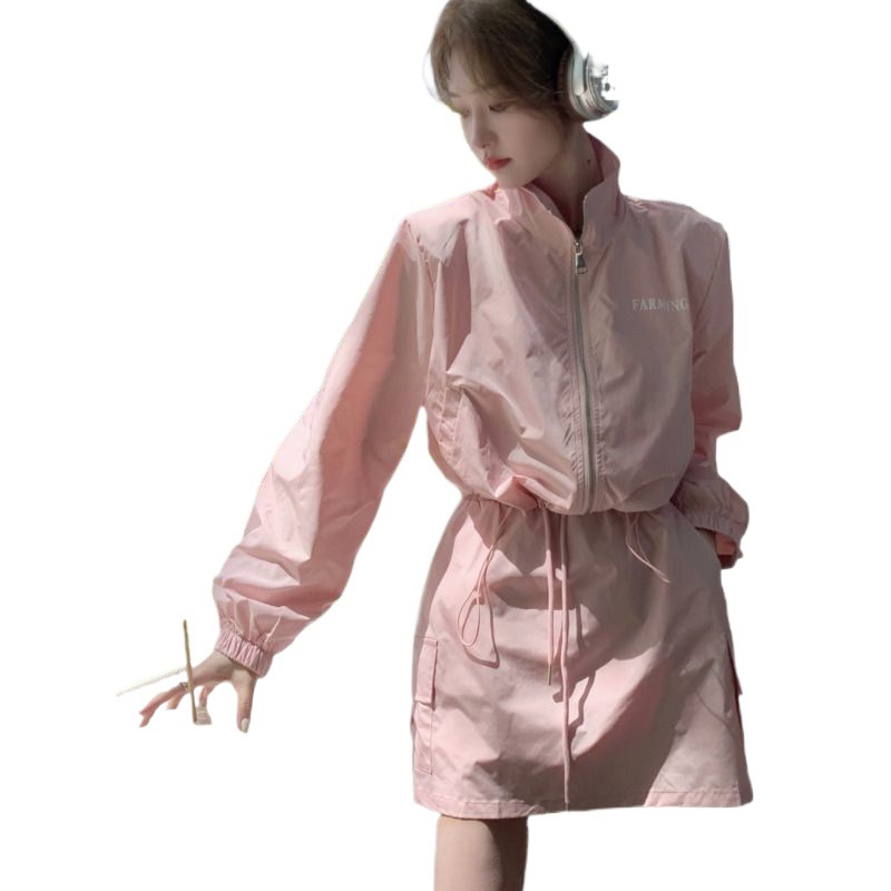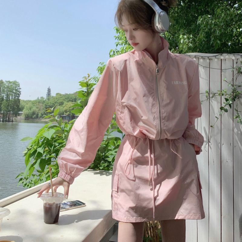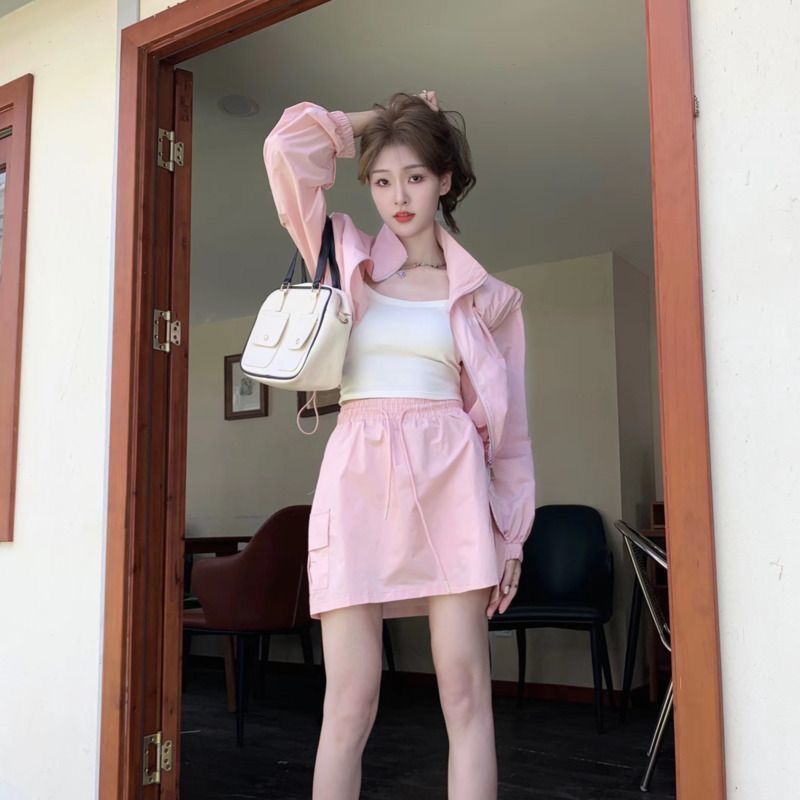 올 매치 패션 우아한 소박한 의류 태양 보호 의류 짧은 스커트 새로운 투피스 스포츠 연령 감소 캐주얼 여름 핑크 세트