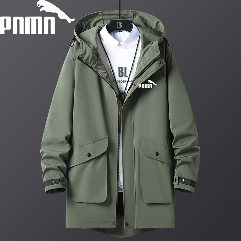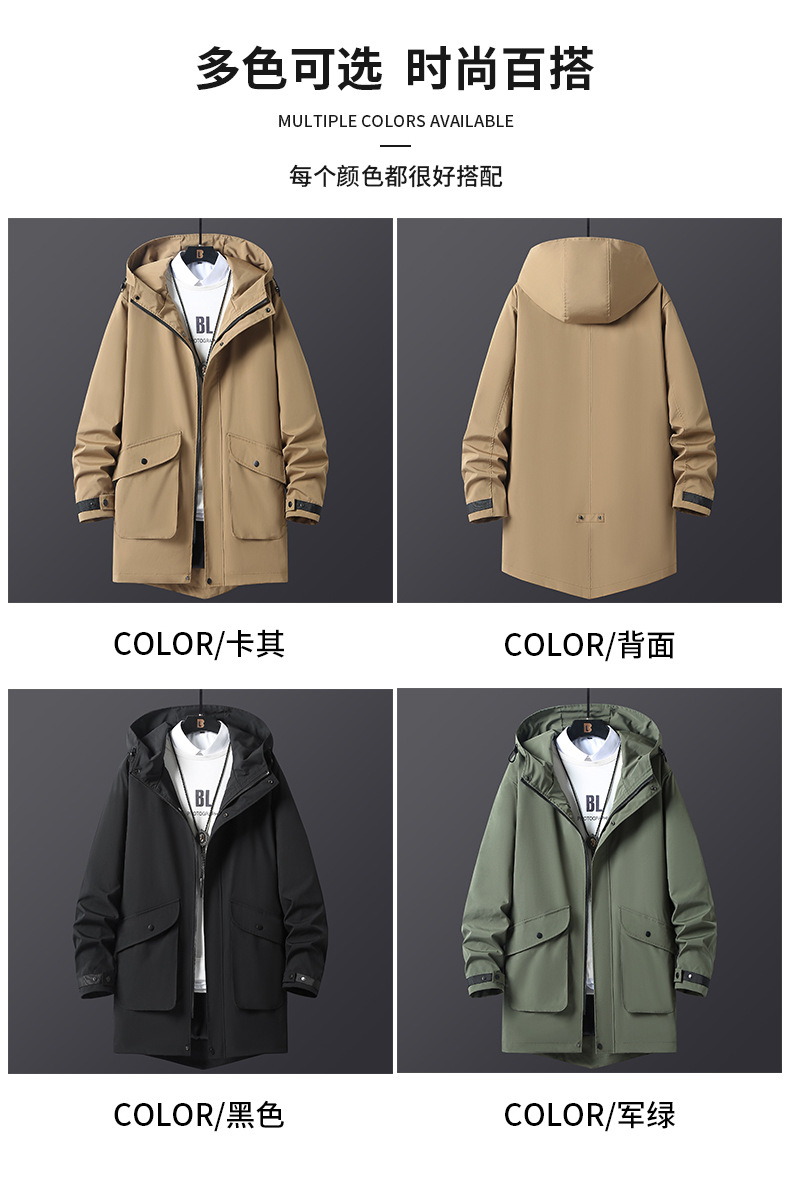 【L-8XL】2025 봄, 가을 새로운 패션 프린트 방풍 중간 길이 윈드 브레이커 남성 트렌디 홍콩 스타일 재킷