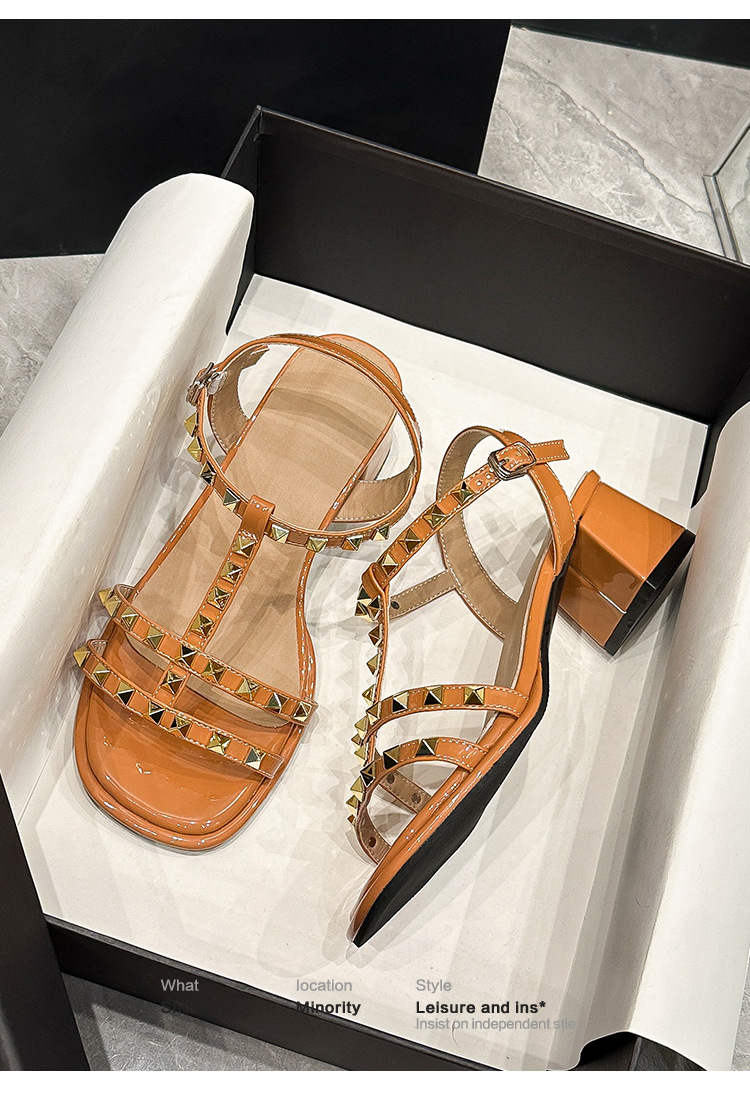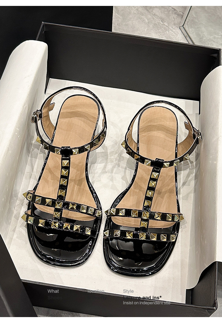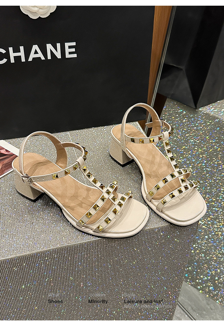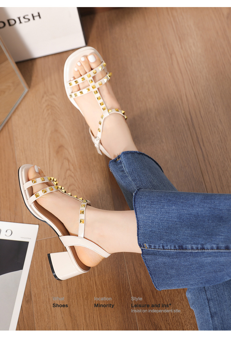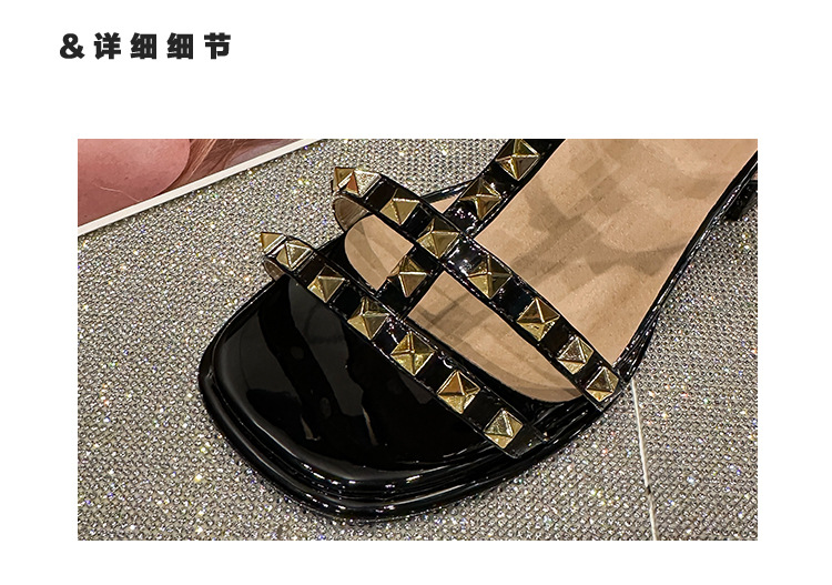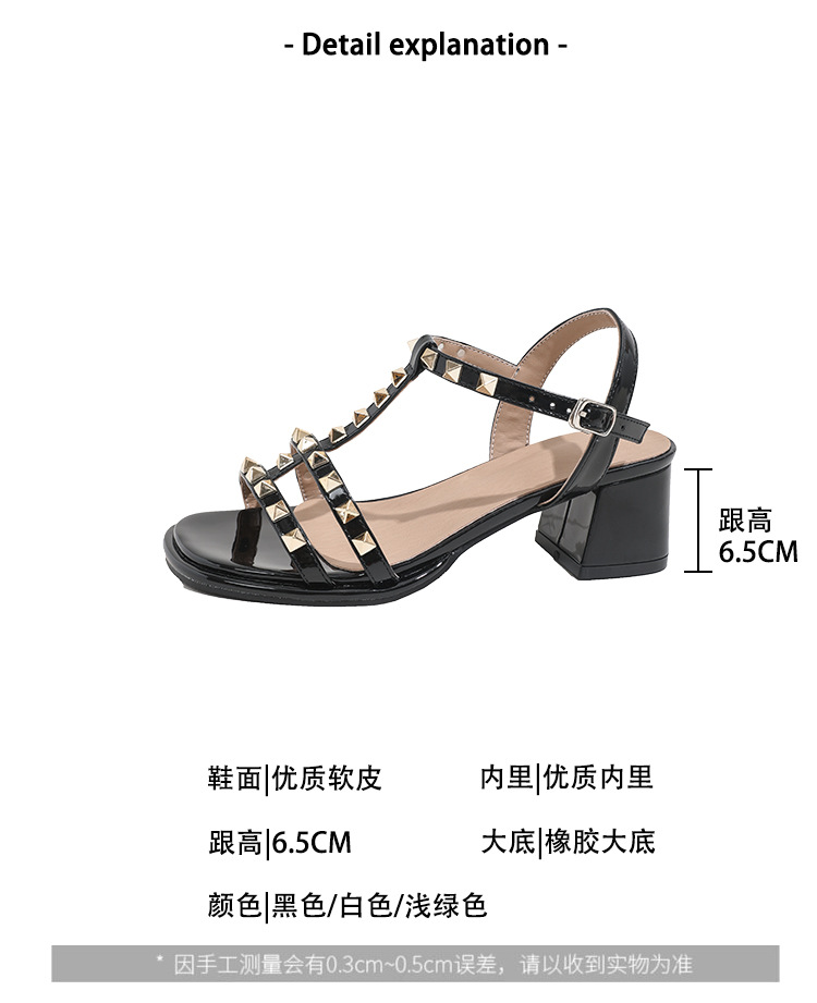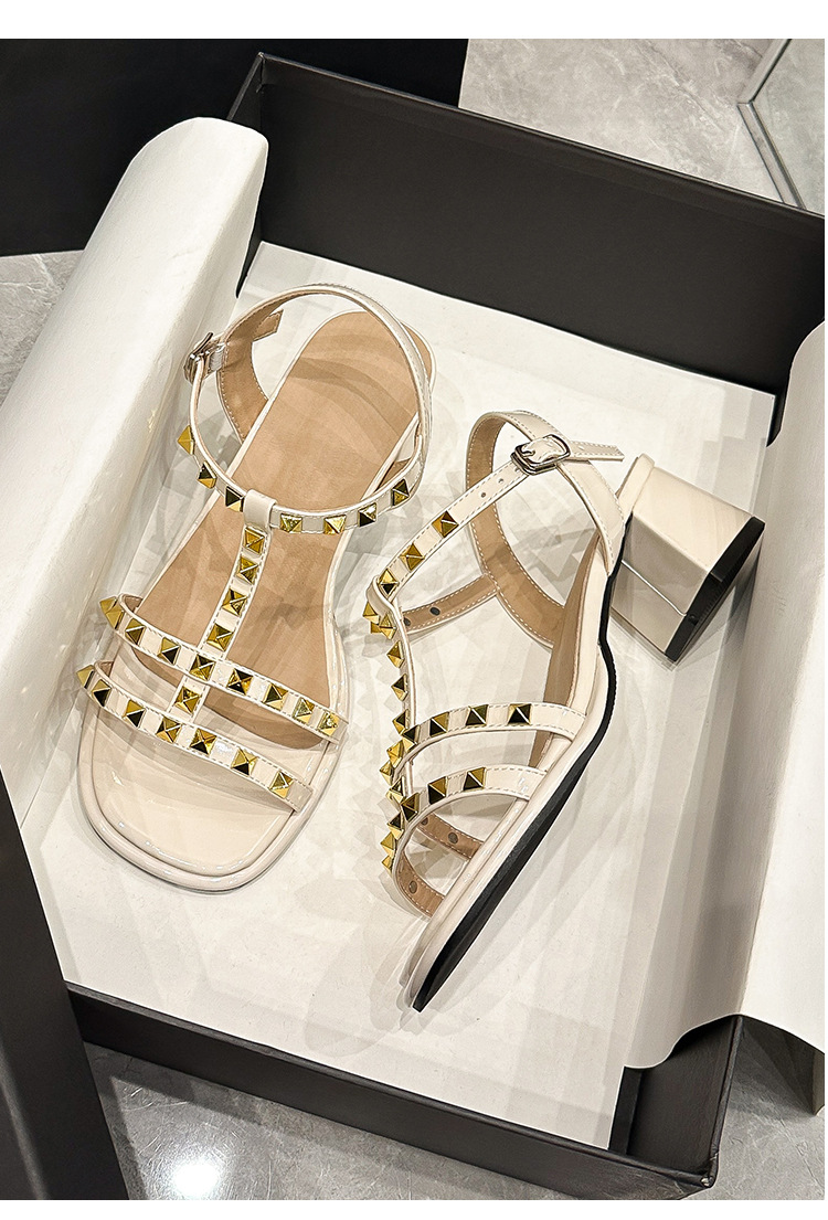 Zixuanzhi 여름 하이힐 두꺼운 굽 인터넷 연예인 스타일 여성용 로마 샌들, 여성용 넓고 뚱뚱한 빅 사이즈 리벳 샌들