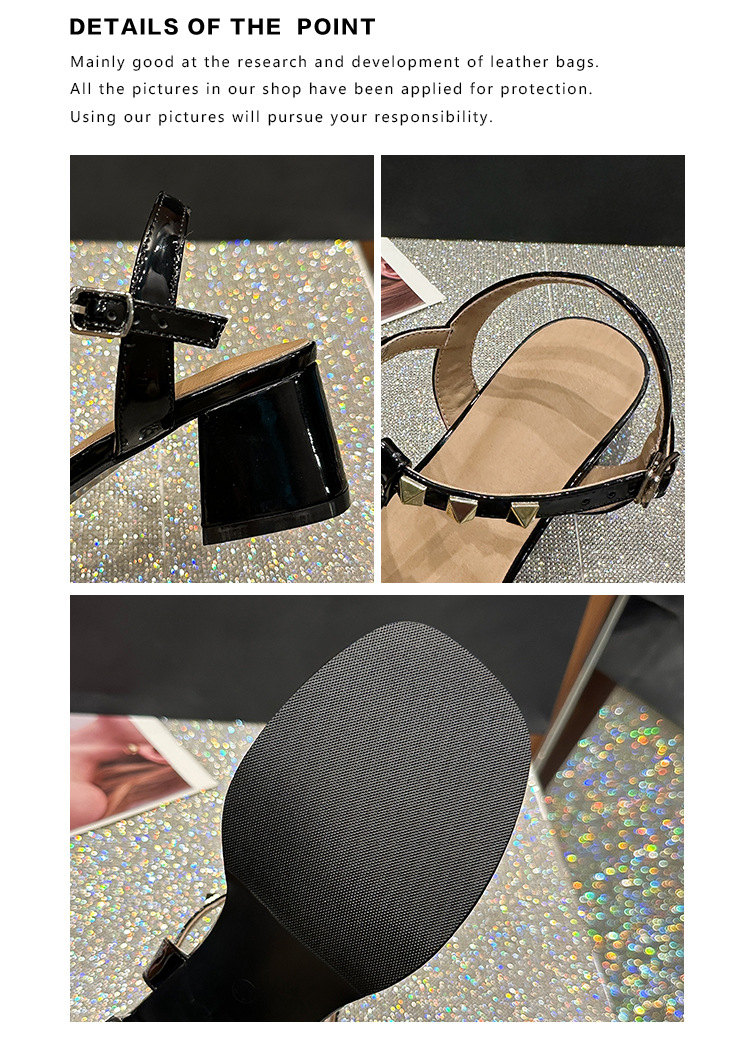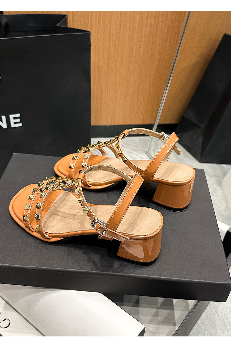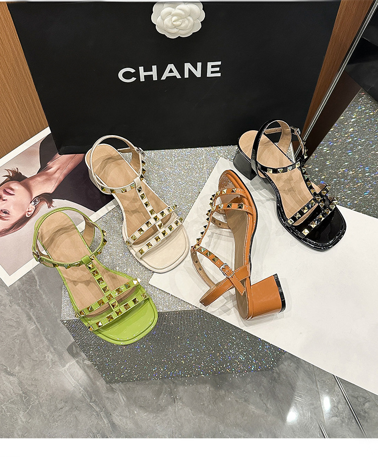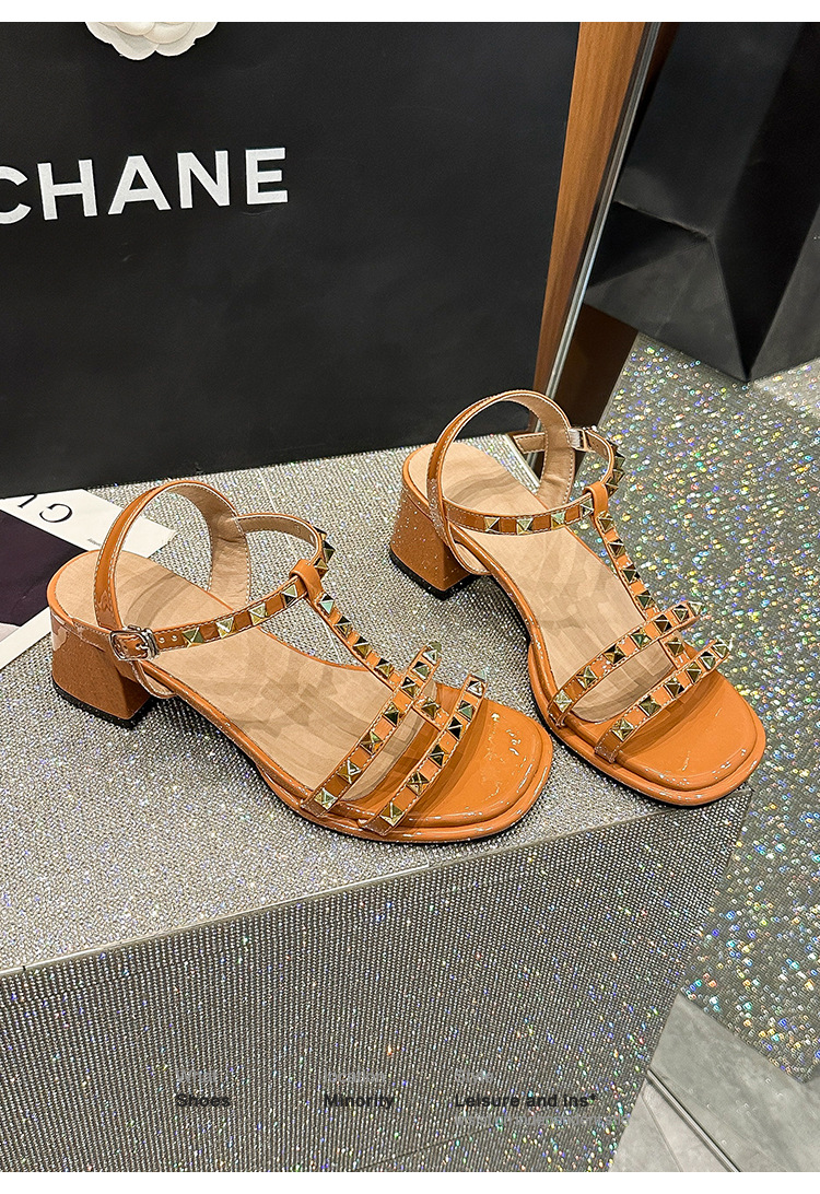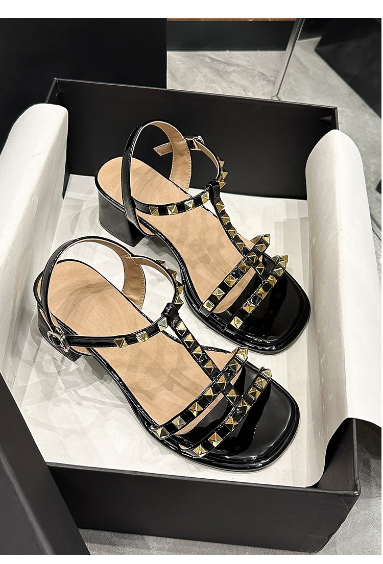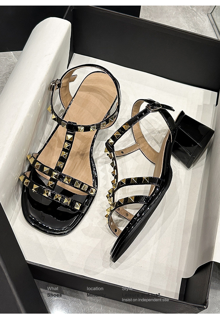 Zixuanzhi 여름 하이힐 두꺼운 굽 인터넷 연예인 스타일 여성용 로마 샌들, 여성용 넓고 뚱뚱한 빅 사이즈 리벳 샌들