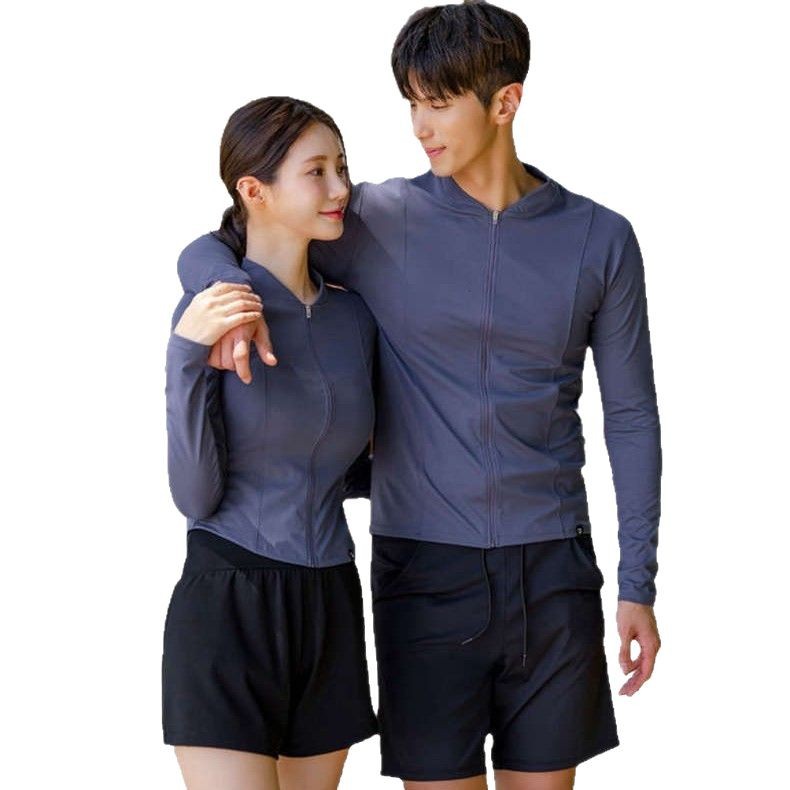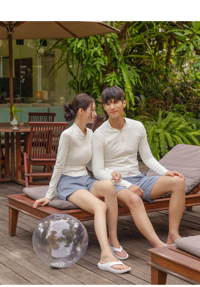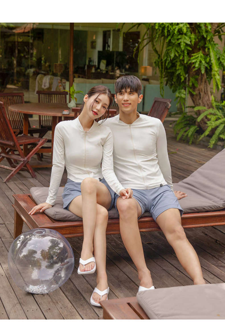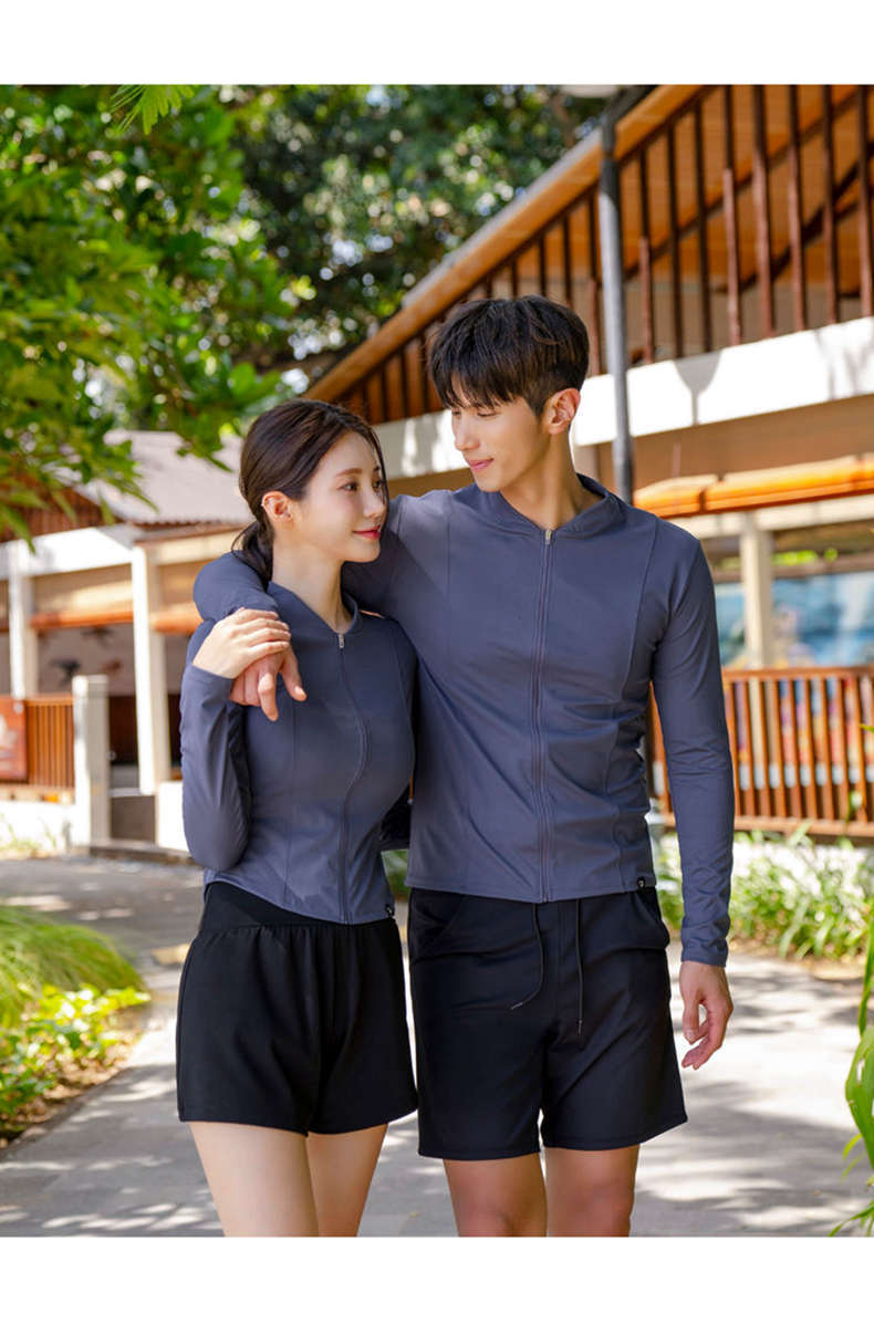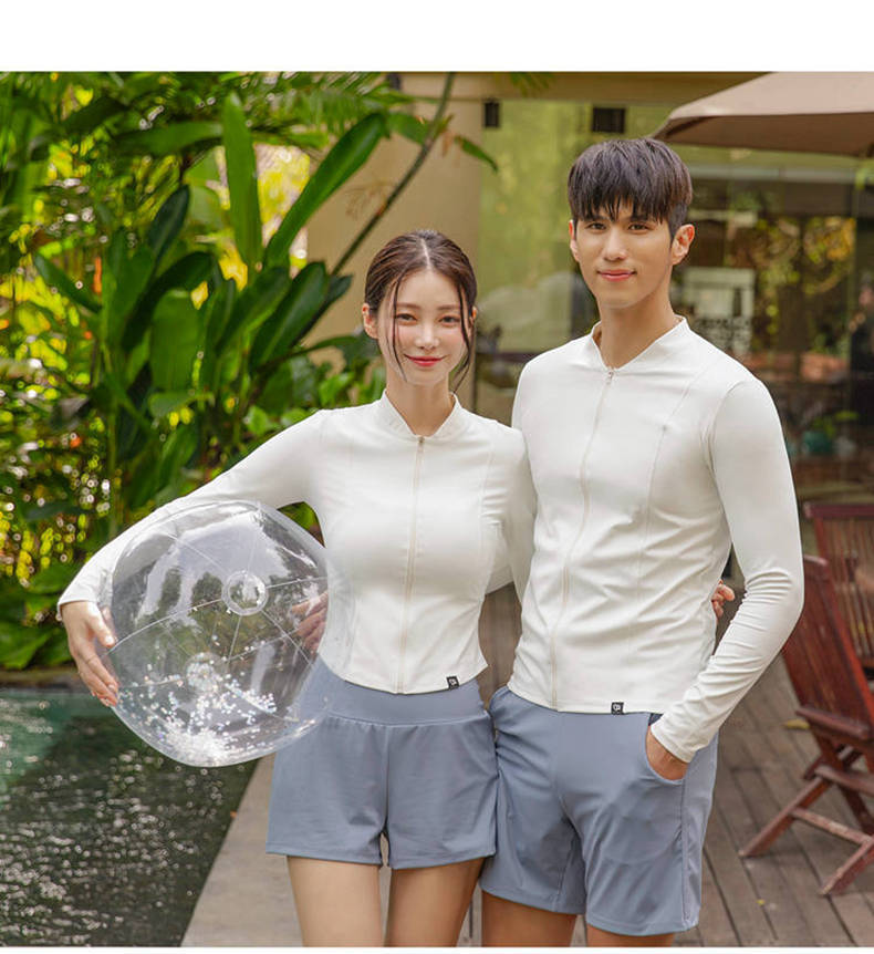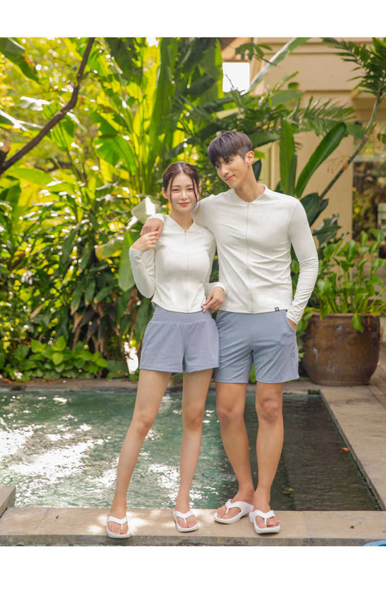 25 새로운 한국어 스타일 스포츠 자외선 차단제 긴팔 속건성 스플릿 수영복 여성용 비치 바지 남성용 서핑