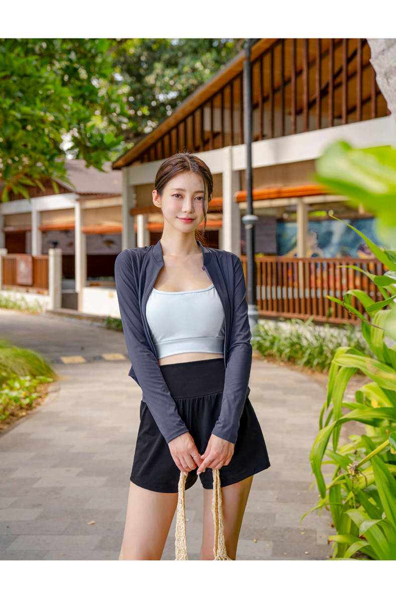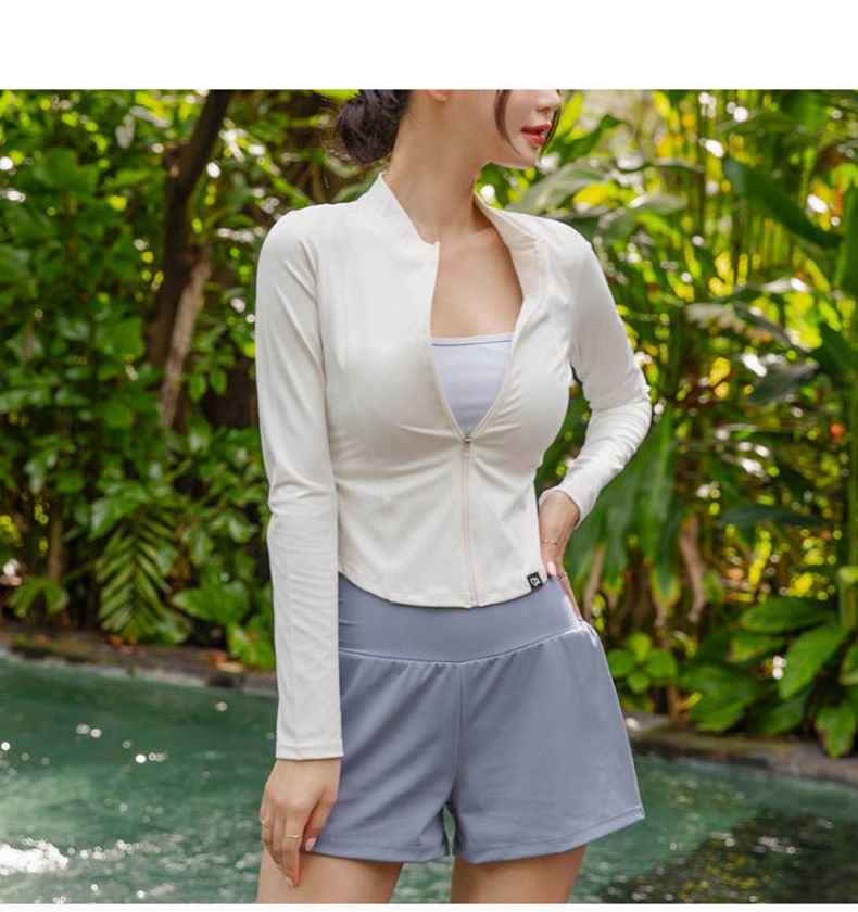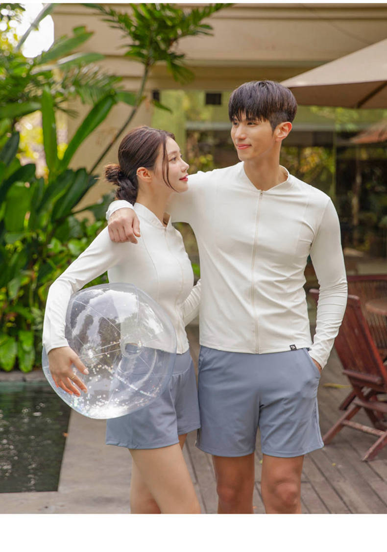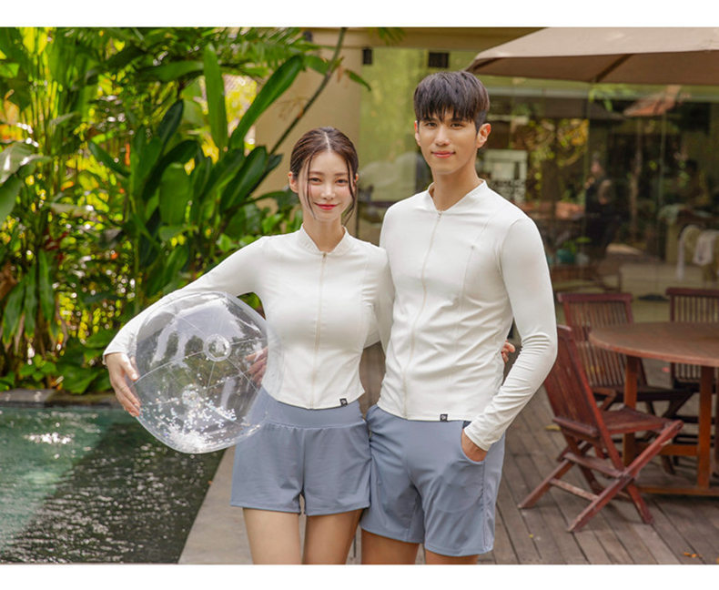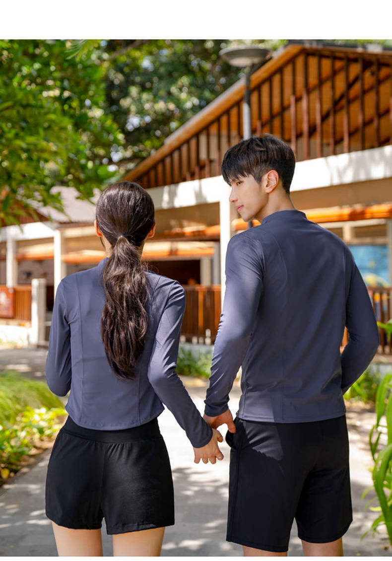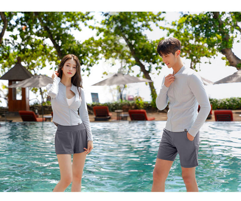 25 새로운 한국어 스타일 스포츠 자외선 차단제 긴팔 속건성 스플릿 수영복 여성용 비치 바지 남성용 서핑