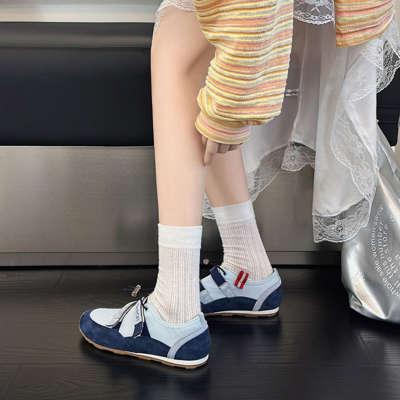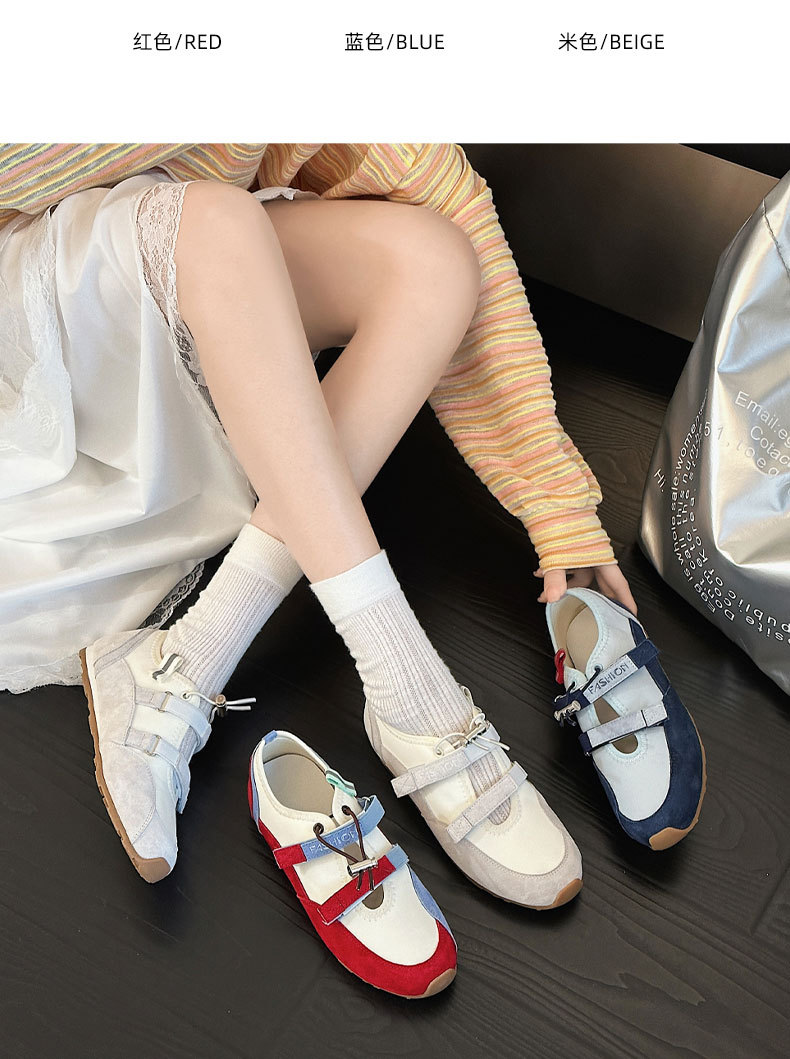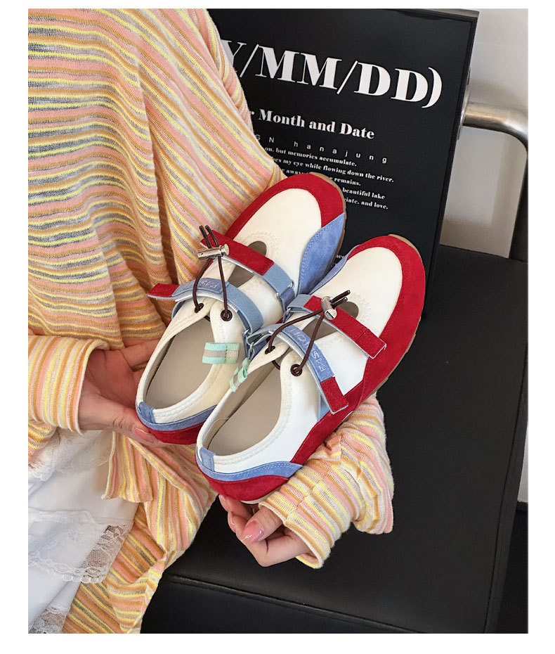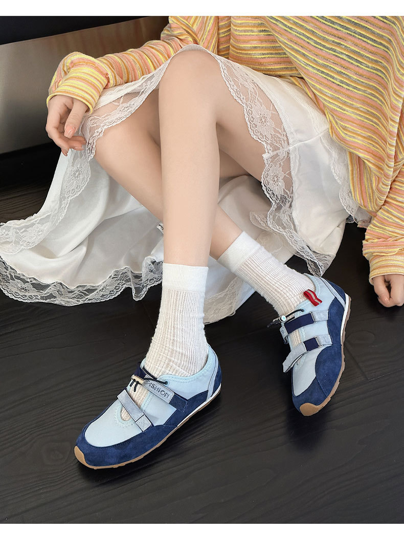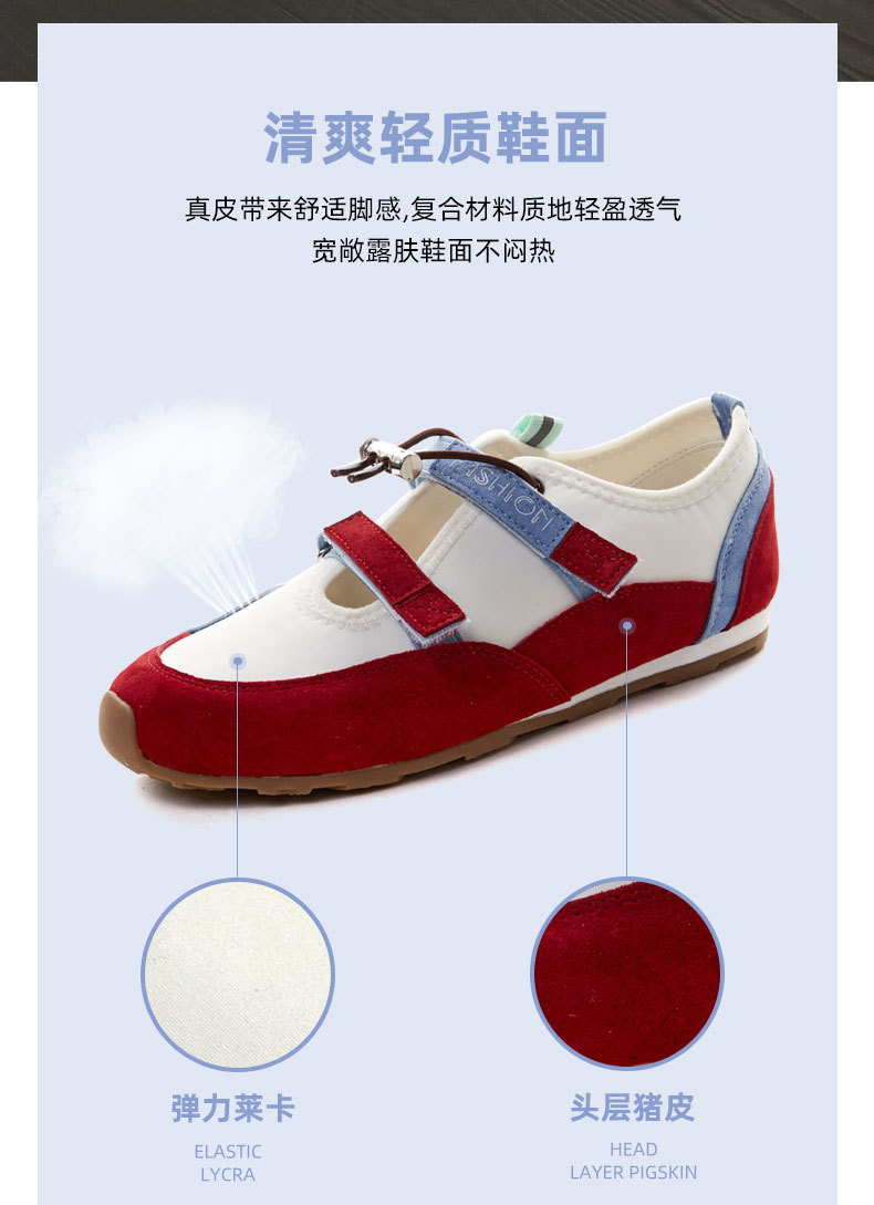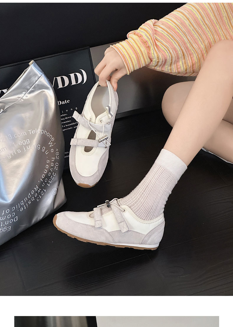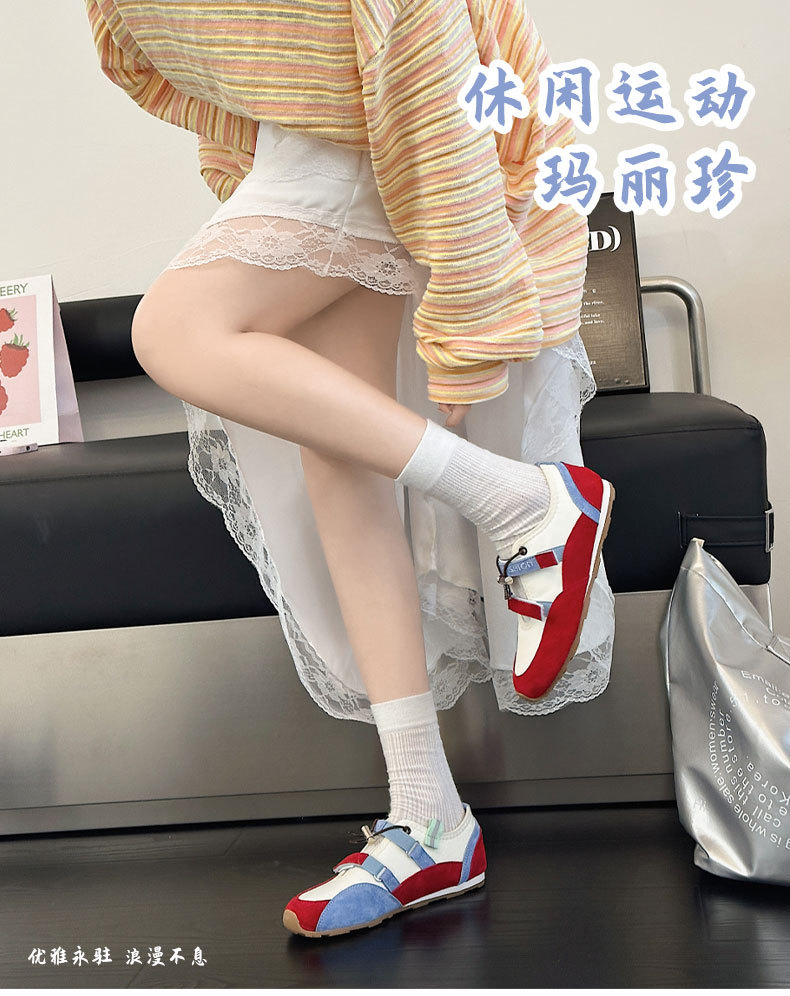 벨크로 메리 제인 신발 여성의 2025 년 봄과 여름 새로운 중공 가죽 독일 훈련 신발 젖지 않는 입 얕은 피곤한 발 캐주얼 싱글 레이어 신발