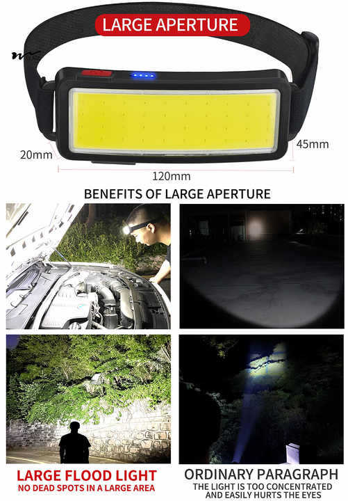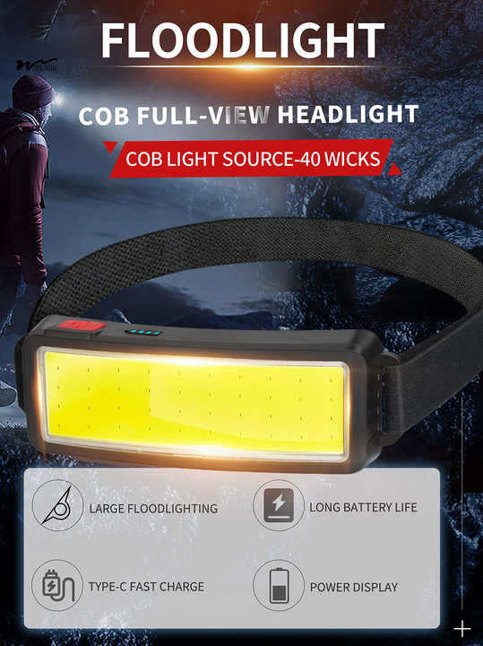 USB 충전 야간 낚시 헤드 라이트 야외 방수 조명 웨어러블 손전등 도매와 COB 강한 빛 헤드 라이트 와이드 라이트
