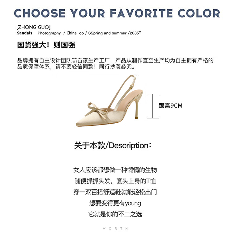 활 하이힐 여성용 스틸레토 힐 2025 봄과 여름 새로운 스타일 바오터우 샴페인 컬러 새틴 저녁 우아한 샌들