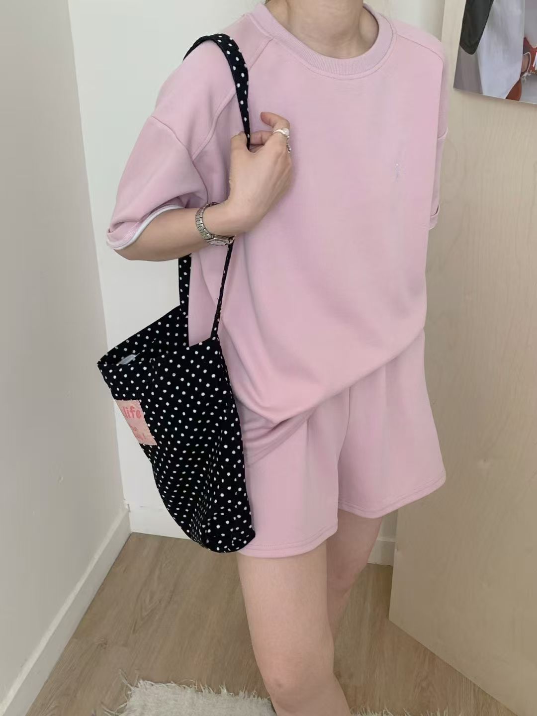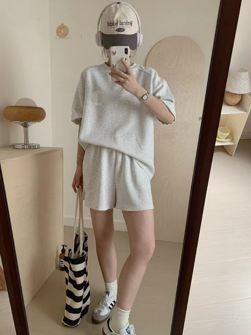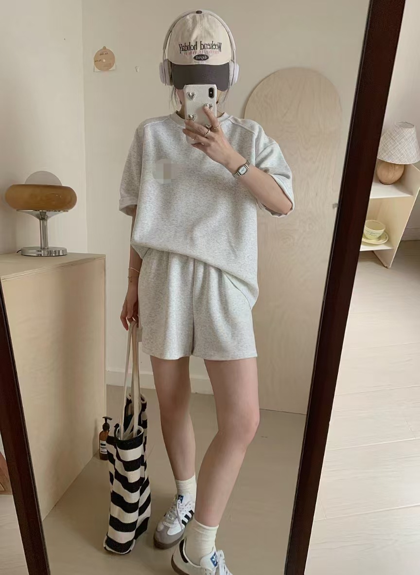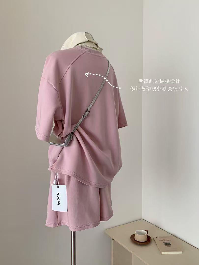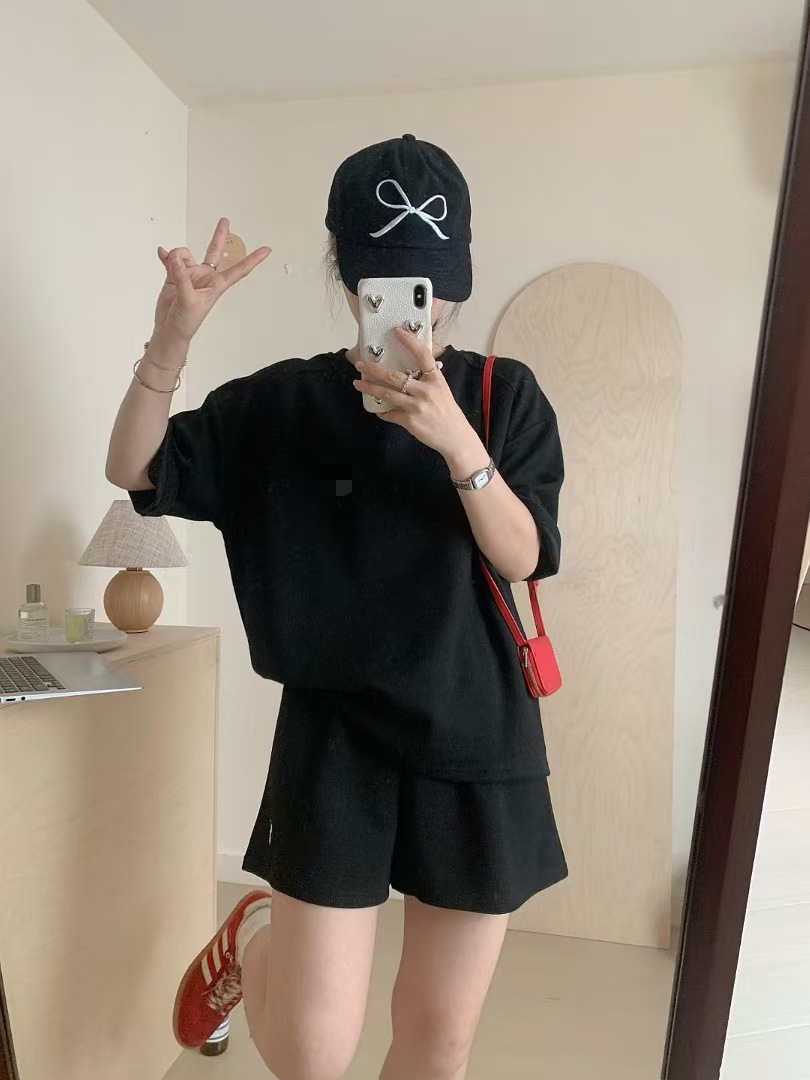 4 색 자수 포니 캐주얼 스포츠 세트 여성 여름 새로운 한국식 느슨한 간단한 반팔 반바지 투피스 세트