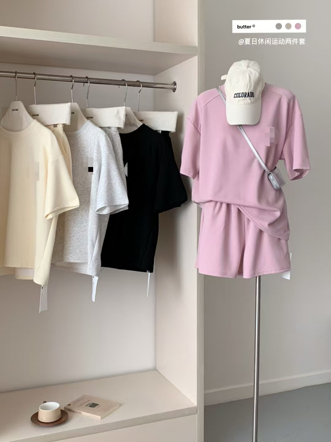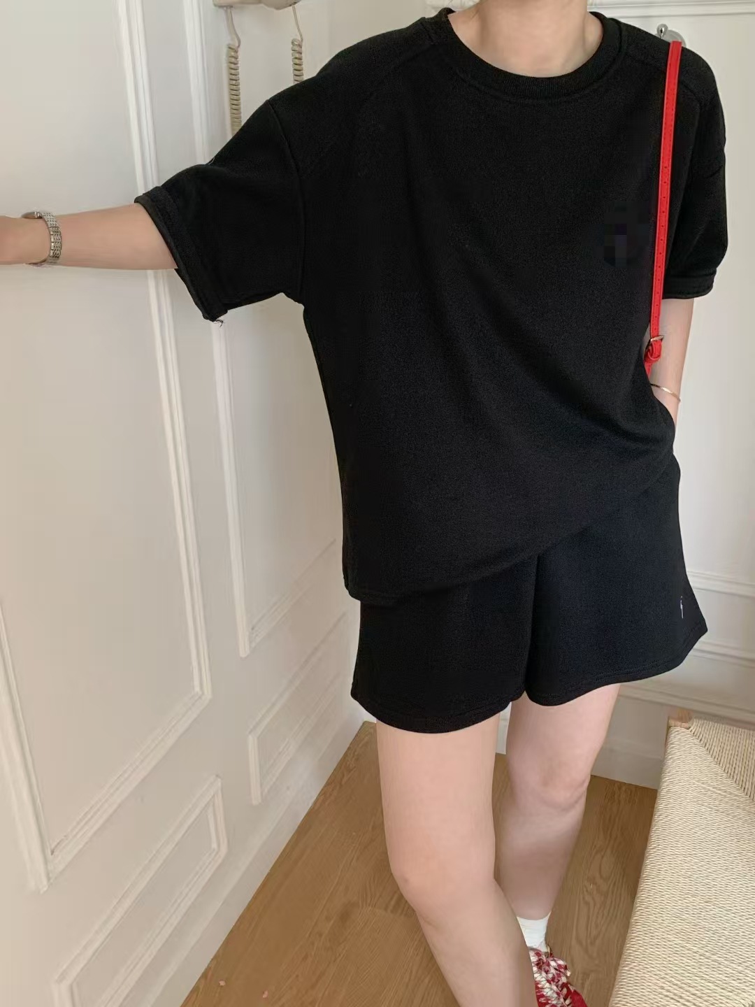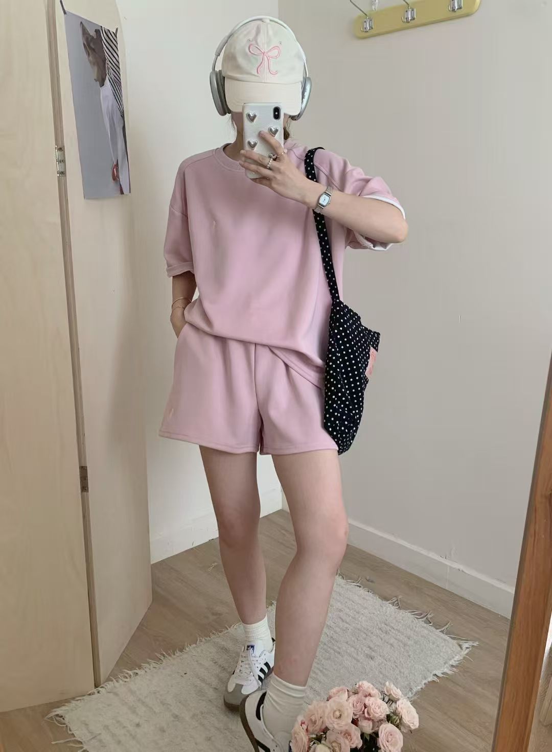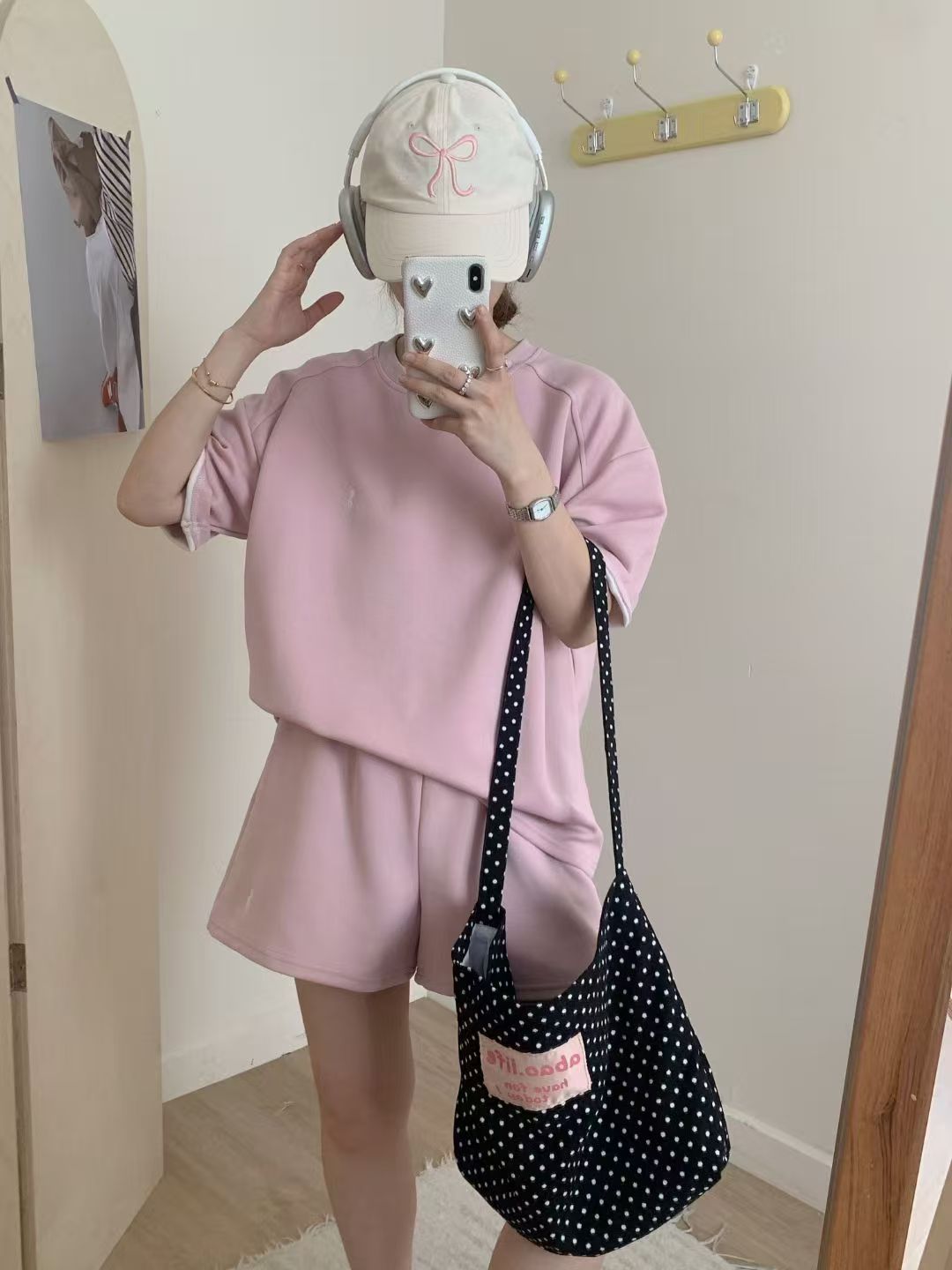 4 색 자수 포니 캐주얼 스포츠 세트 여성 여름 새로운 한국식 느슨한 간단한 반팔 반바지 투피스 세트