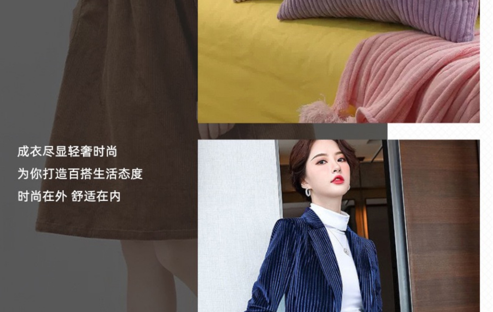 캐주얼웨어, 스포츠웨어, 홈웨어, 잠옷, 속옷, 패션, 안감, 침구 등
