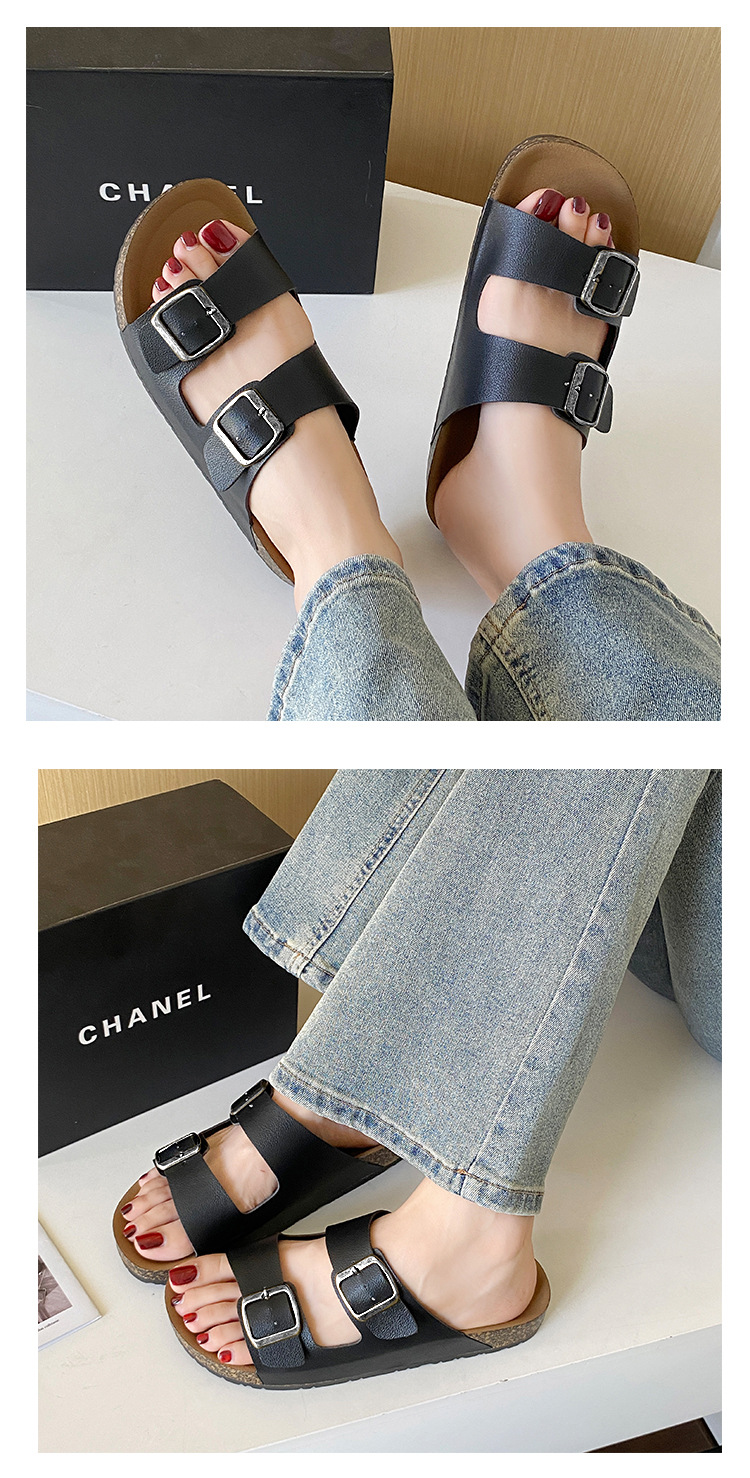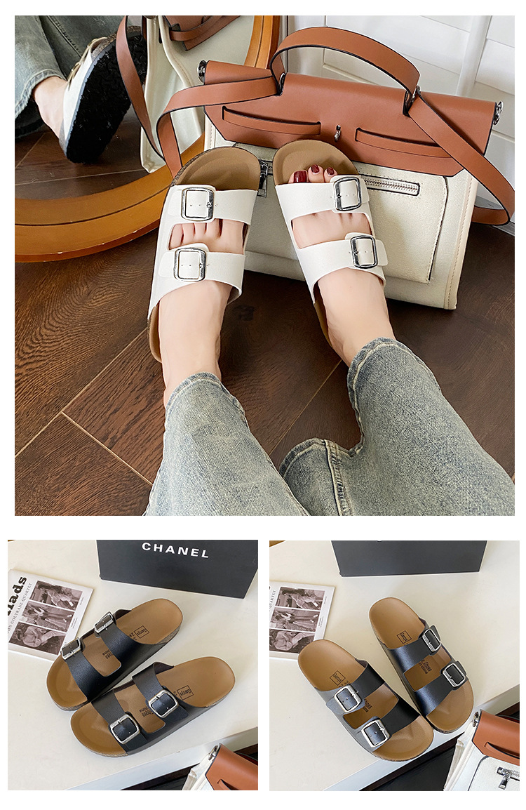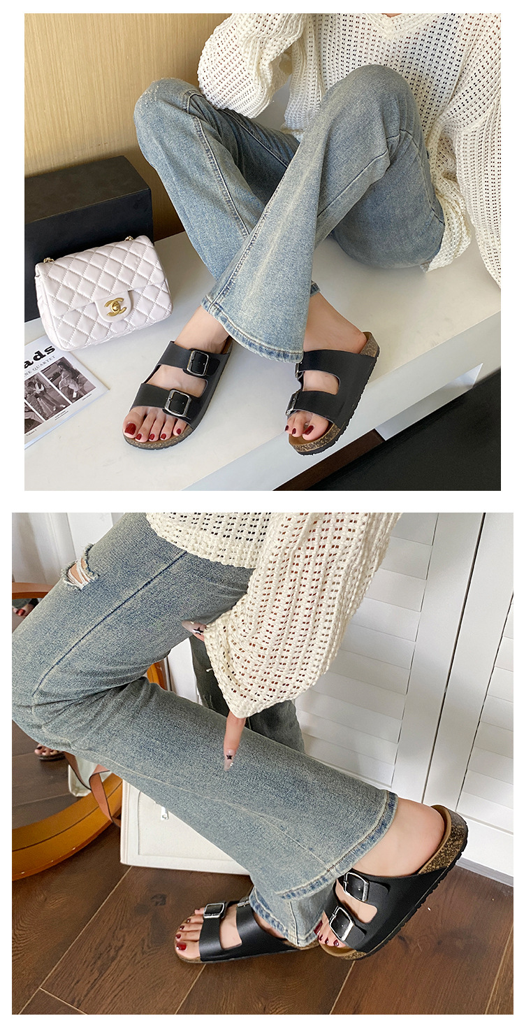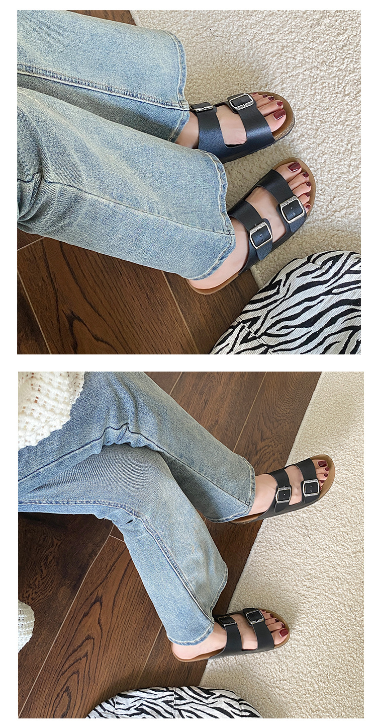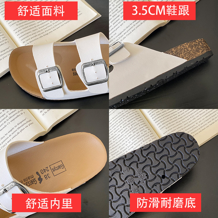남자 Birkenstocks Summer Sandals Thick Sole Non-slip 캐주얼 남성과 여성의 동일 스타일 더블 버클 아우터 비치 샌들 남성과 여성의 대외 무역